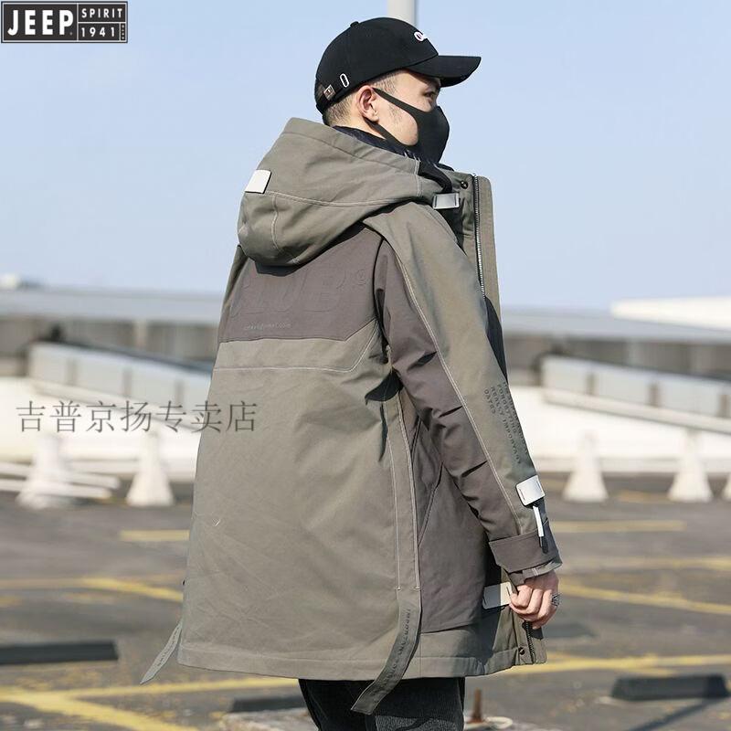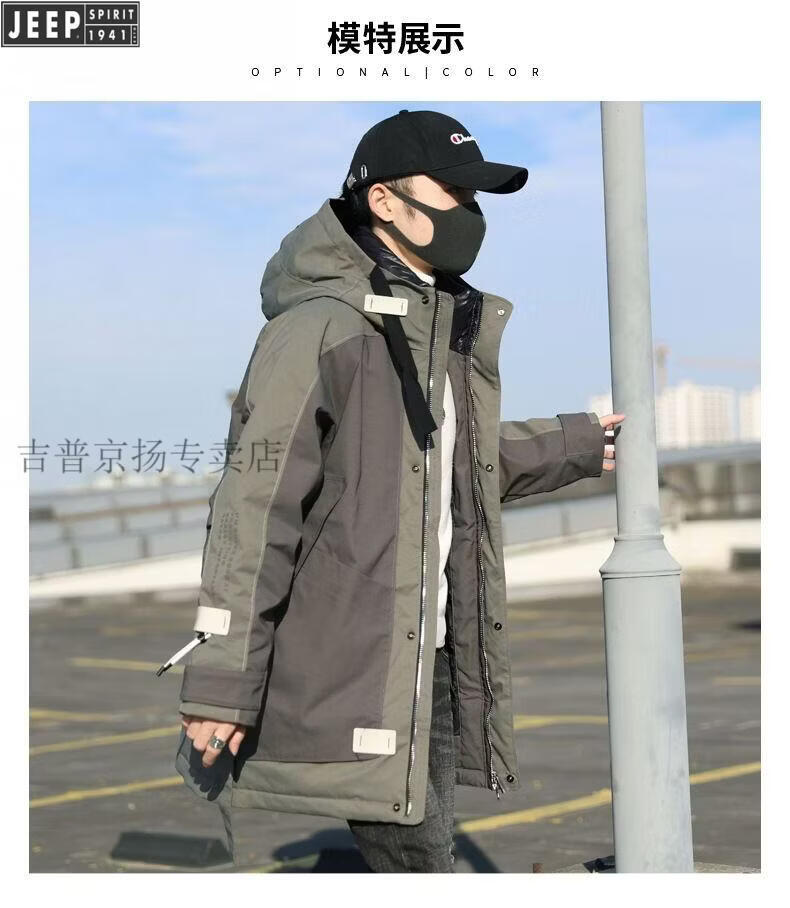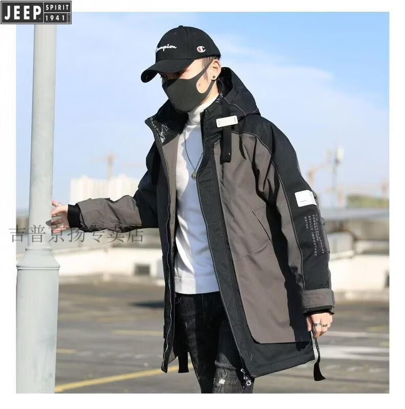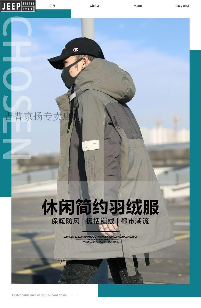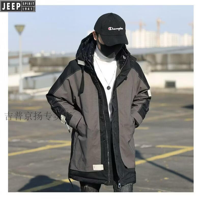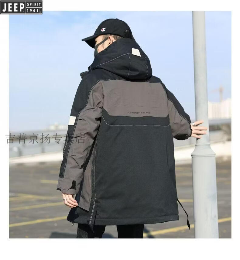 JEEP Jeep International Brand Down Jacket Men's Medium Long 2025 New Youth Winter Thickened Workwear Warm Jacket Black and Gray M 90-120Jin Jin is equal to 0.5 kg
