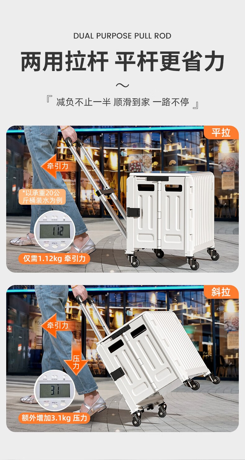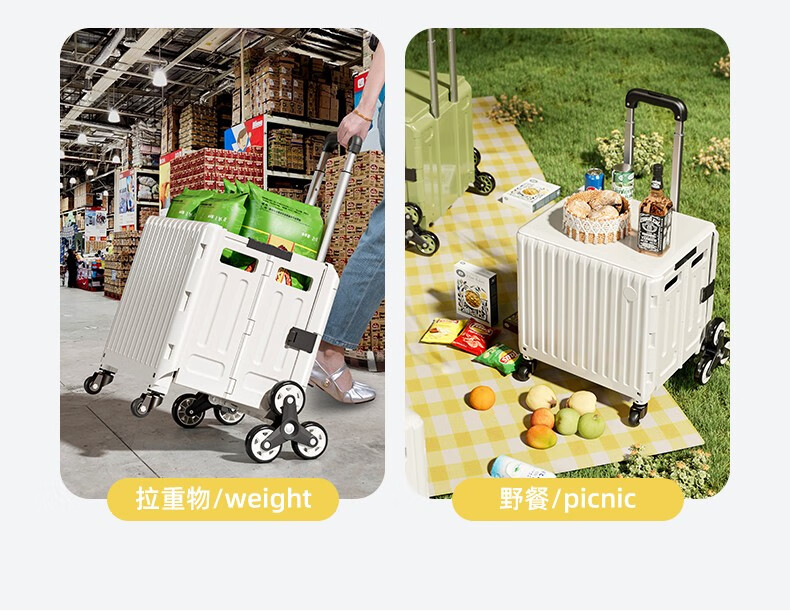 Meizhuofu grocery shopping trolley household folding shopping cart to pick up express delivery trolley trailer trolley portable light trolley tea green stair climbing 8 wheels medium size