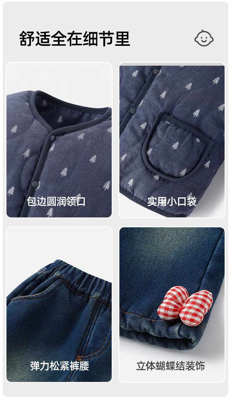 Yishuang'er baby cotton clothing suit winter clothing baby warm thickening autumn and winter split three-layer cotton clothing children's cotton clothing cotton pants apricot + retro bow suit 80 80cm
