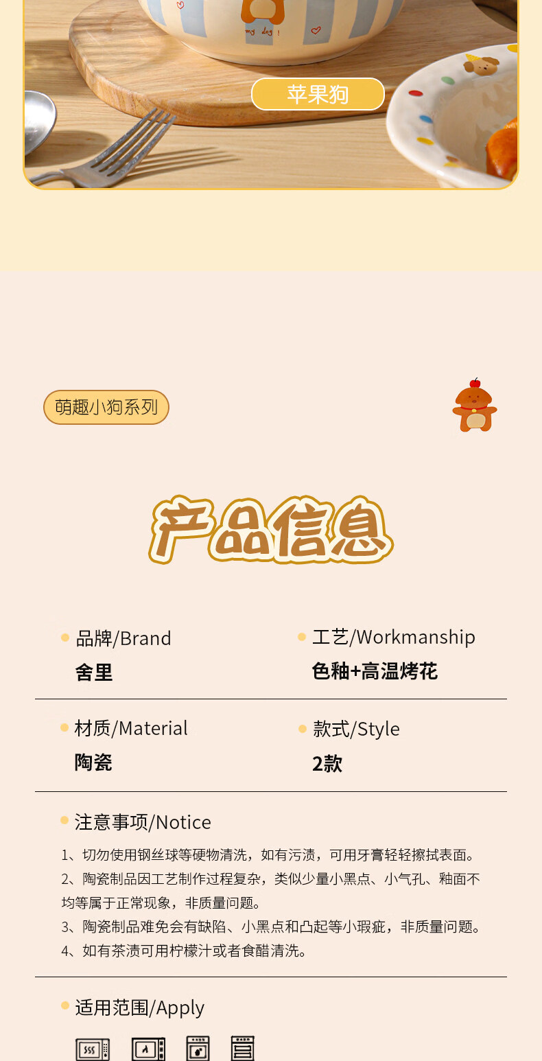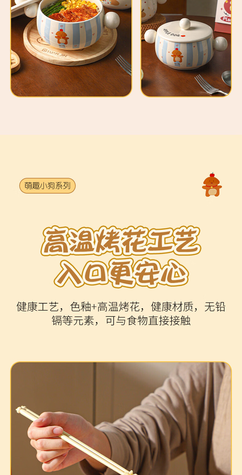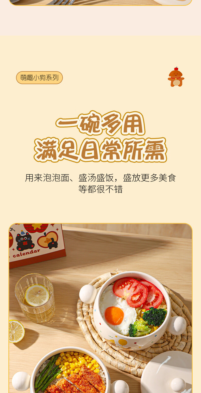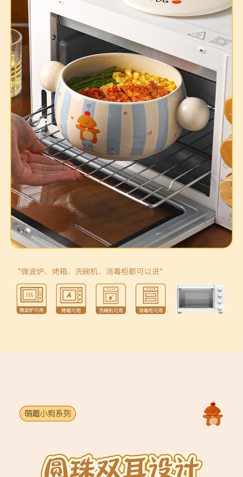 Sheli's cute ceramic round beads double-eared instant noodle bowl with lid, insulated and anti-scalding, special bowl for students, cafeteria rice bowl, balloon dog 1150ml