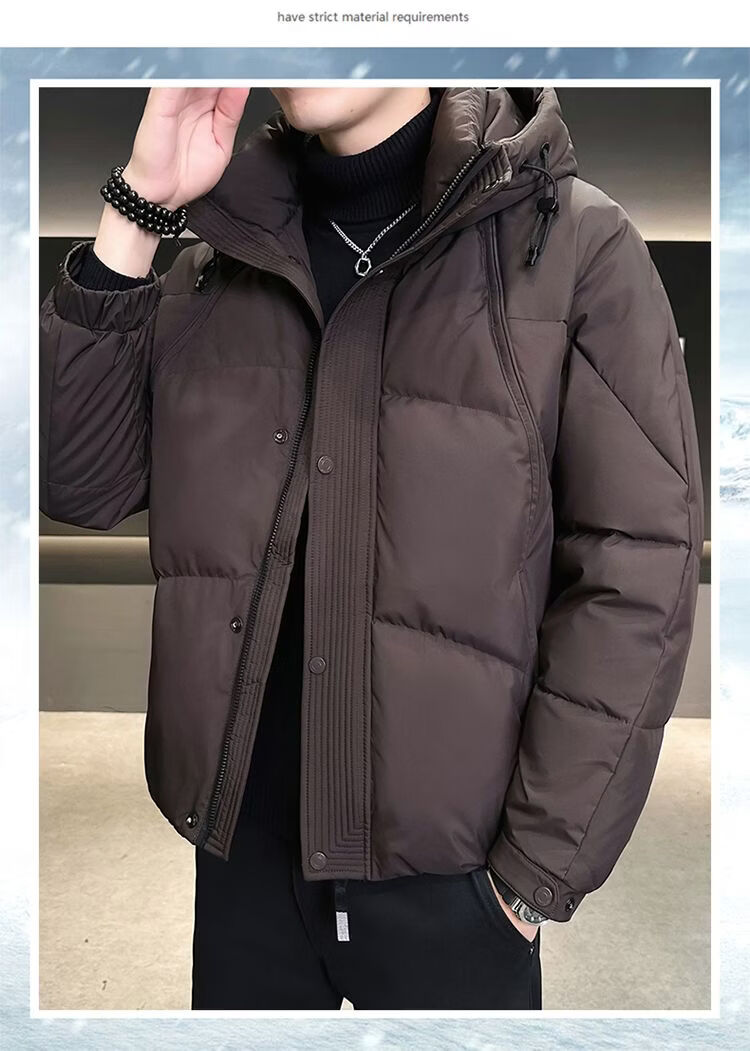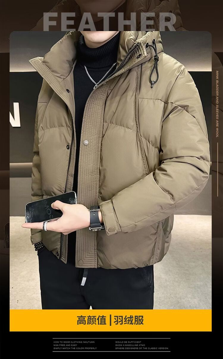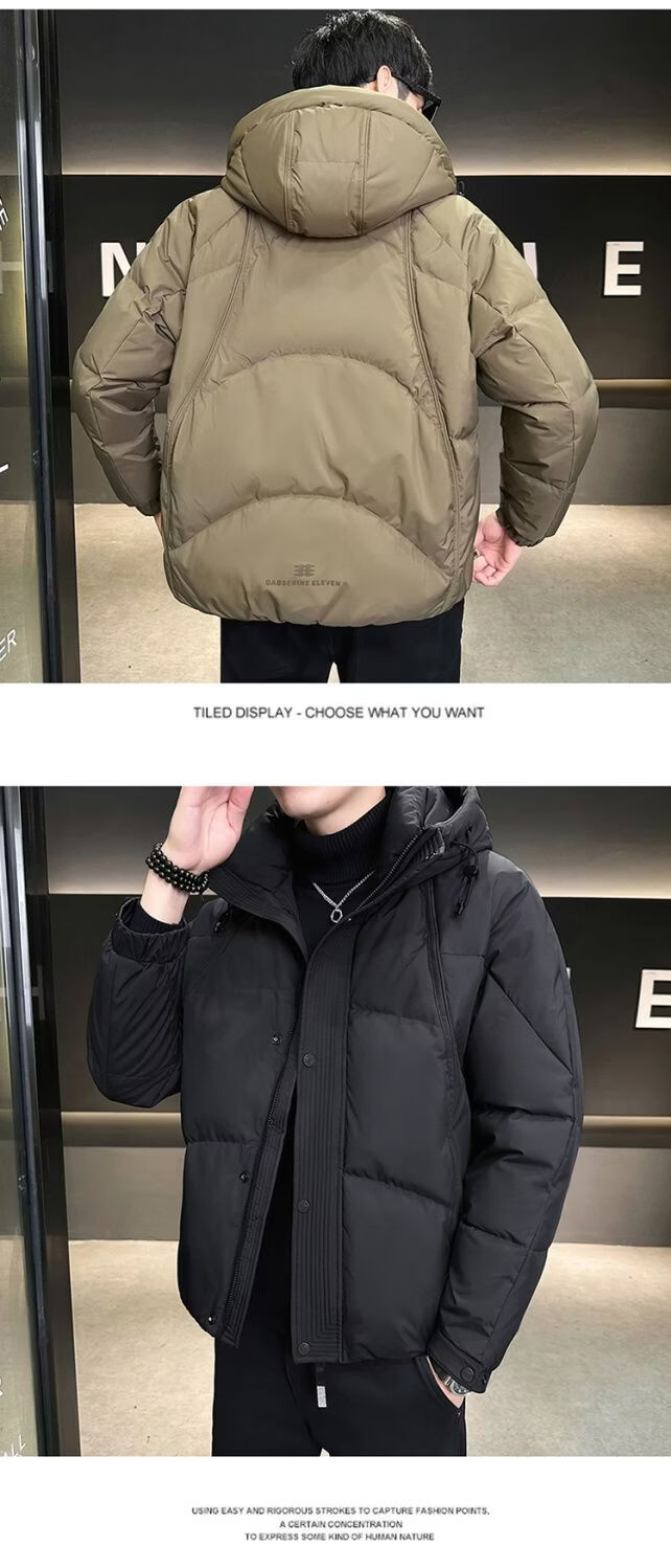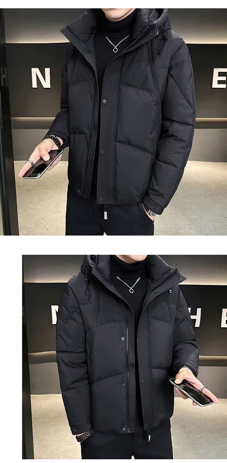 Hengyuanxiang Winter Lightweight Down Jacket Men's 2026 New Hooded Thickened White Duck Down Coldproof Clothes Black 3XL