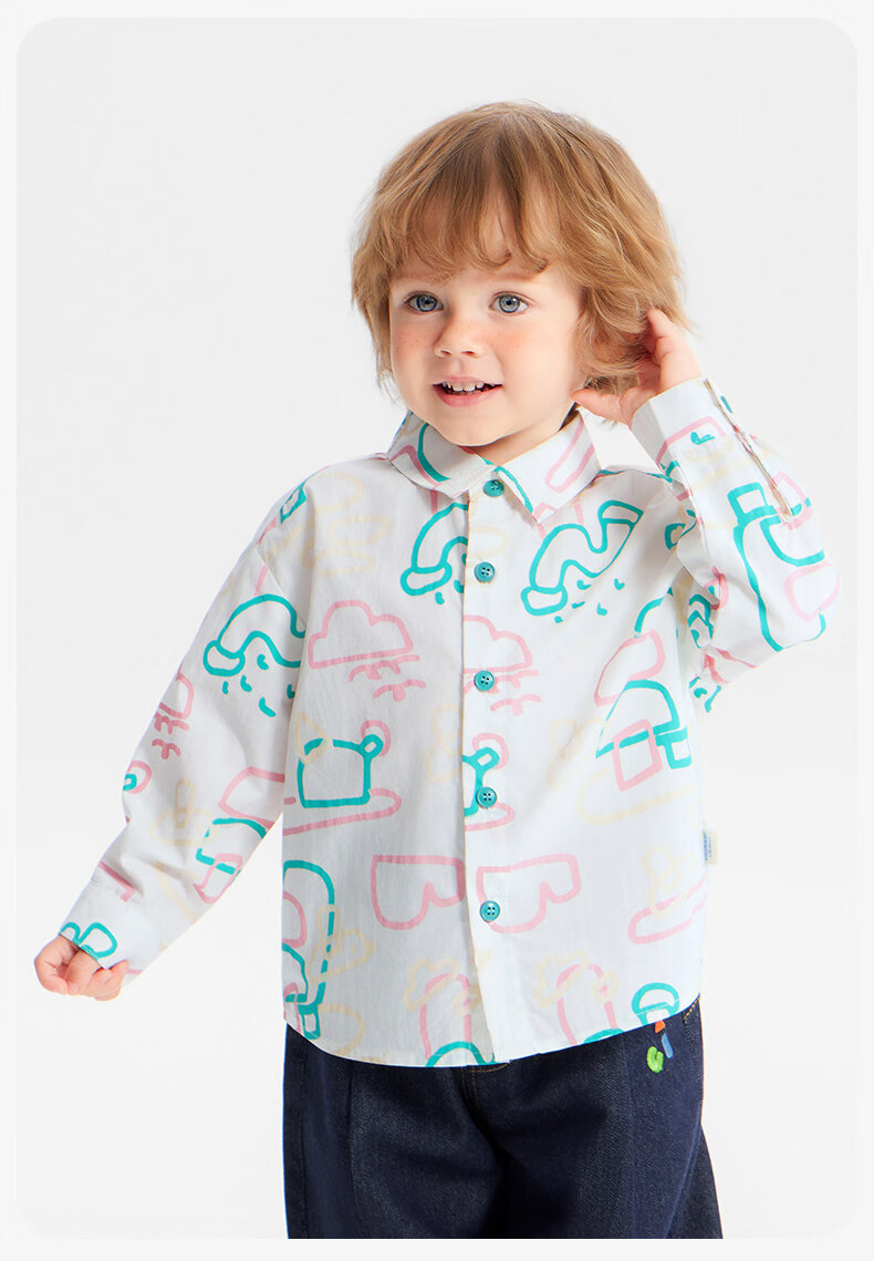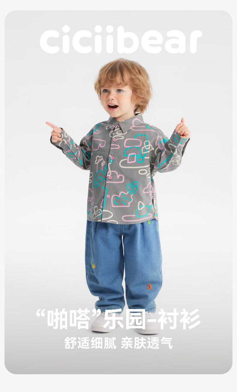 Ciciibear (ciciibear) Tencel cotton Ciciibear baby shirt boys jacket spring 2026 new children's long-sleeved shirt tops Yunduo white 90