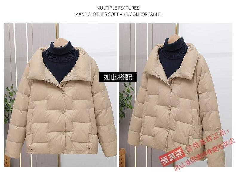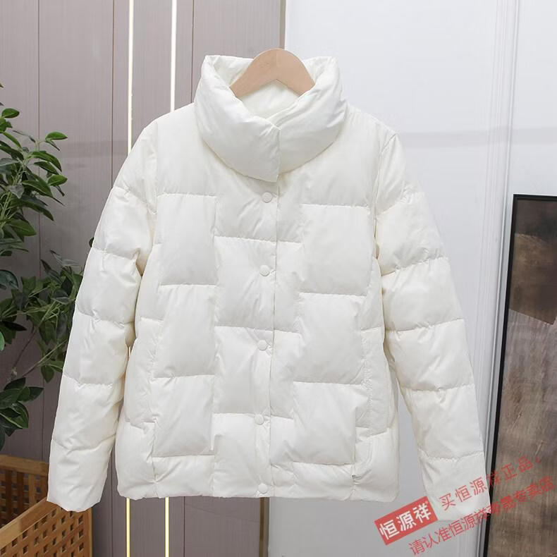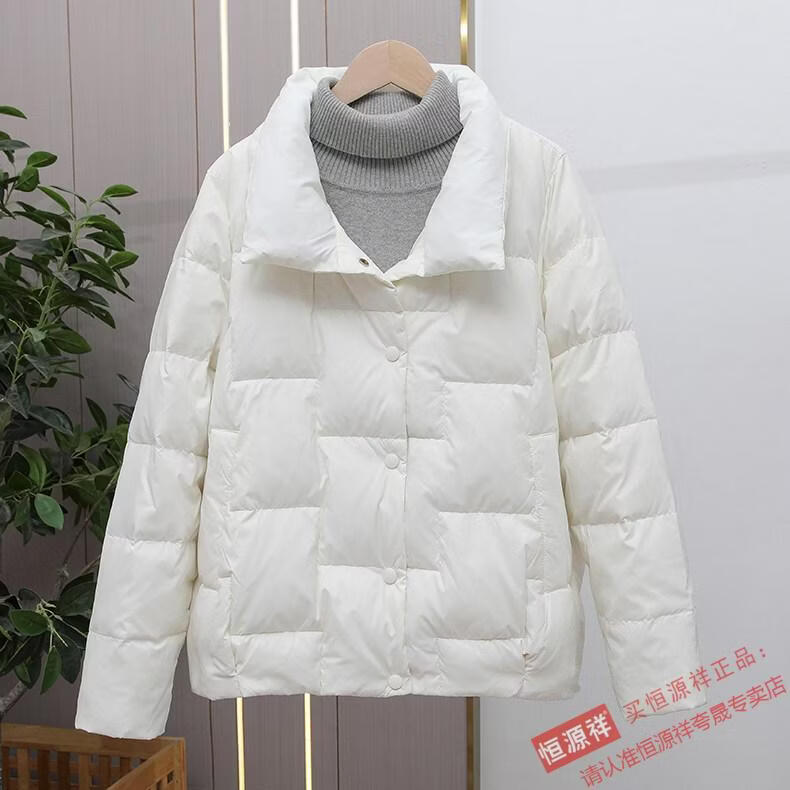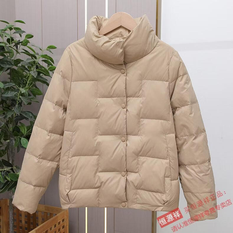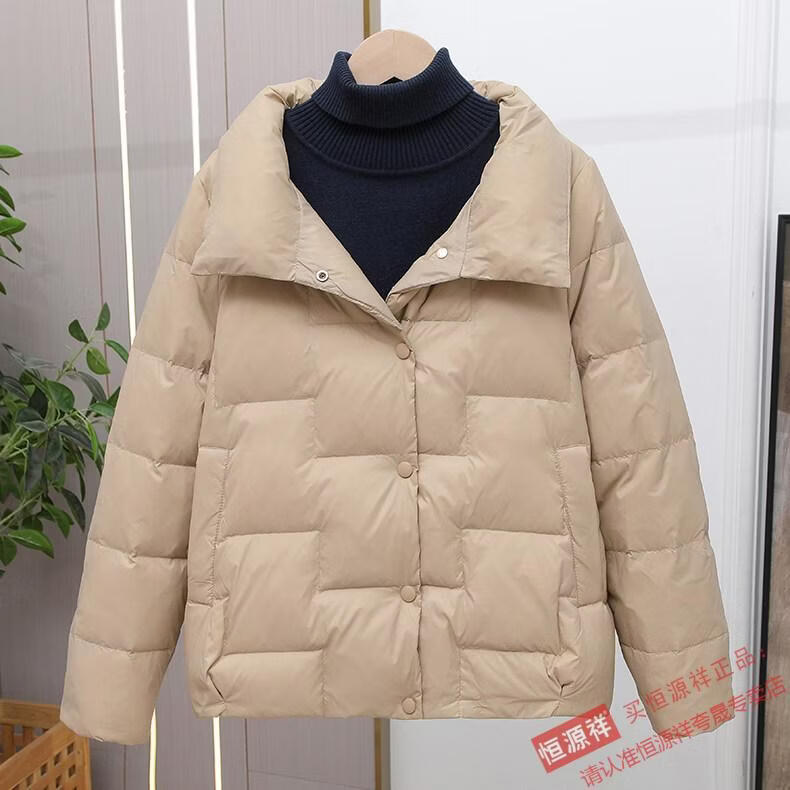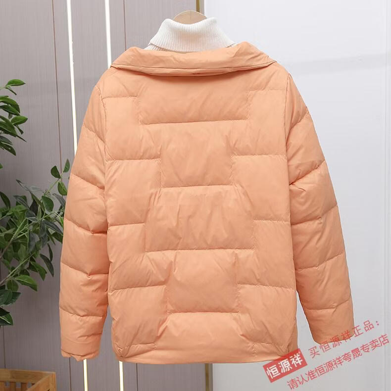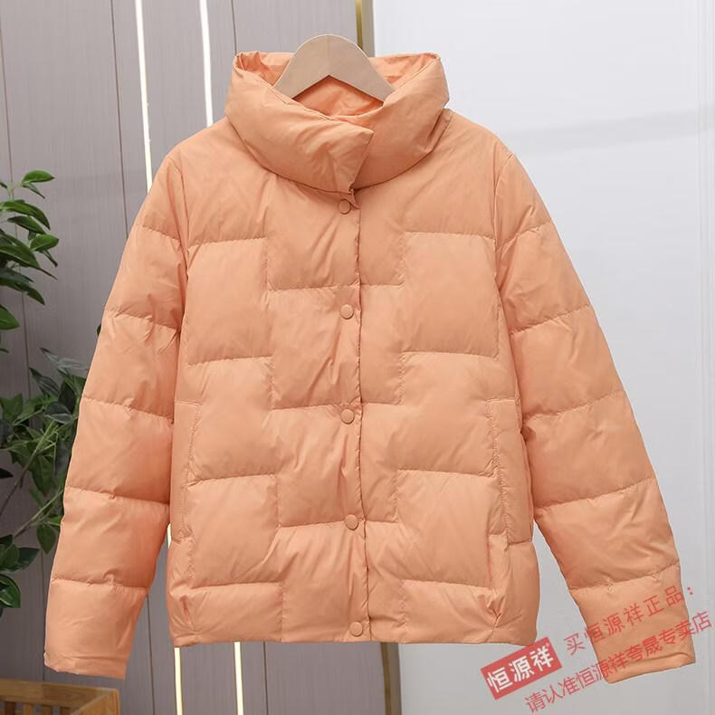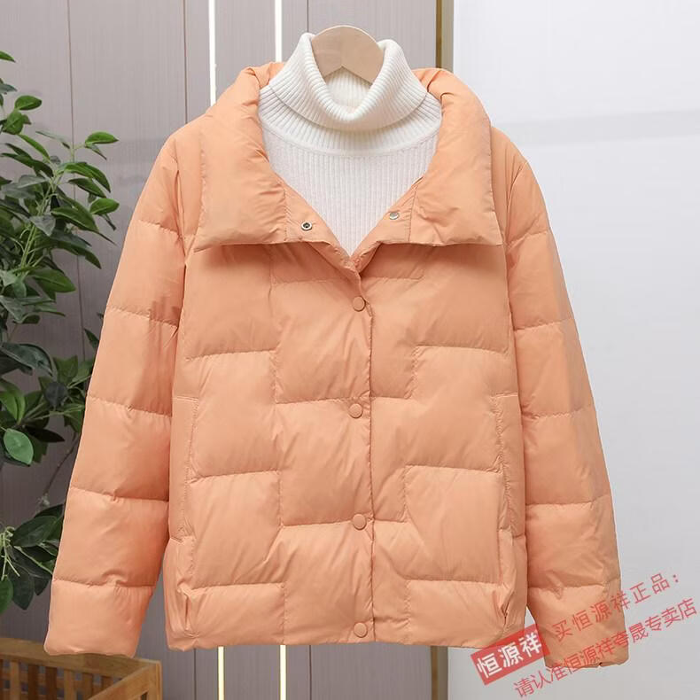 Hengyuanxiang Down Jacket Women's Short 2026 New Autumn and Winter Lightweight Loose Jacket Stand Collar Thin Pure White Duck Down Light Orange Real Duck Down Fake One Get Three S Suitable for 90-120 Jin Jin is equal to 0.5 kg