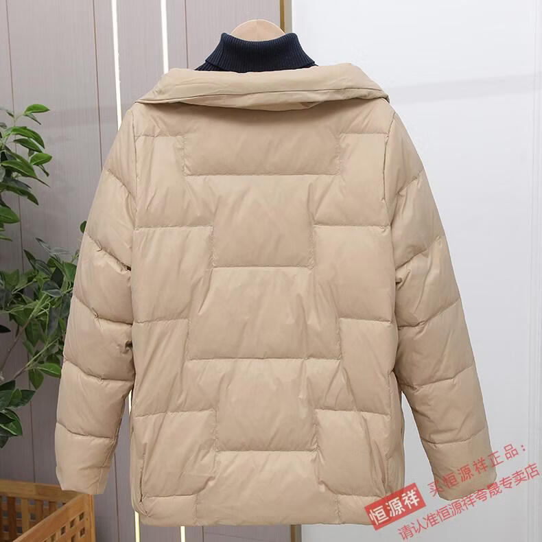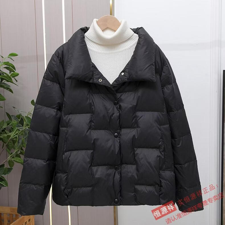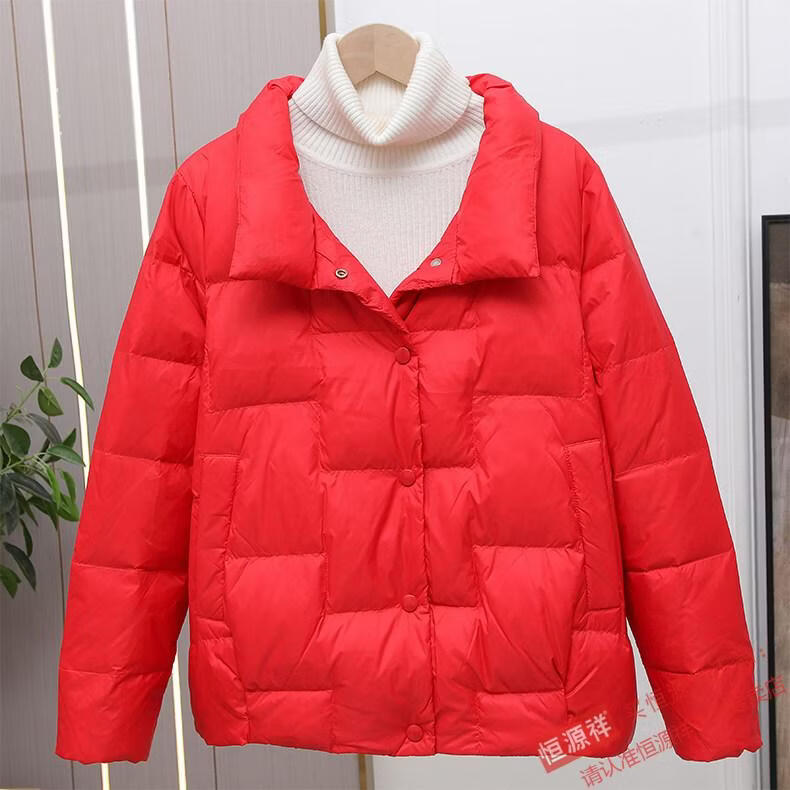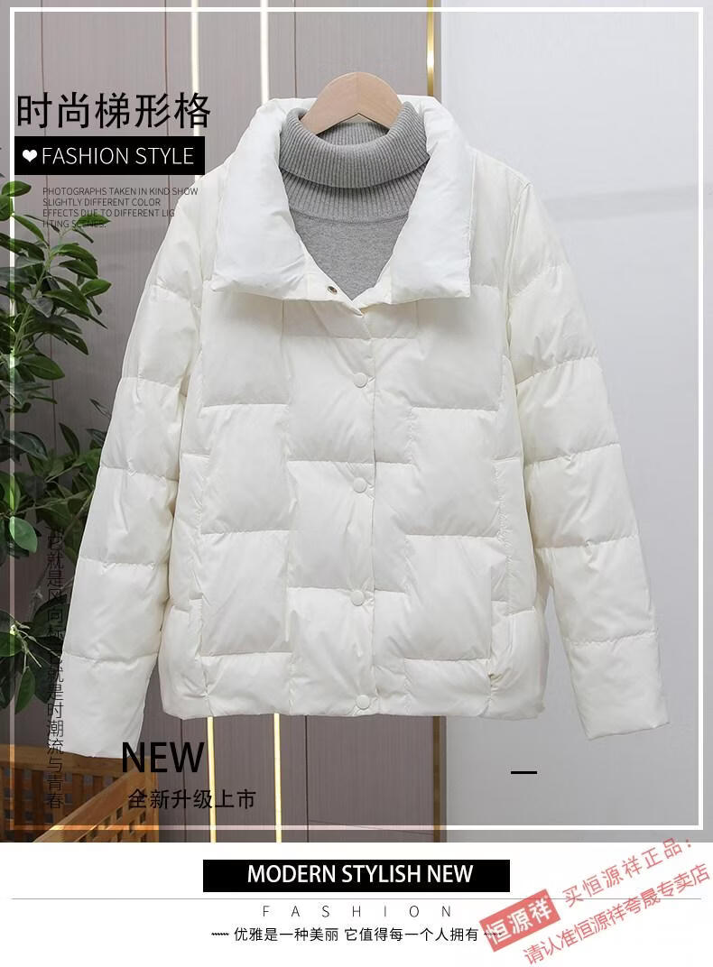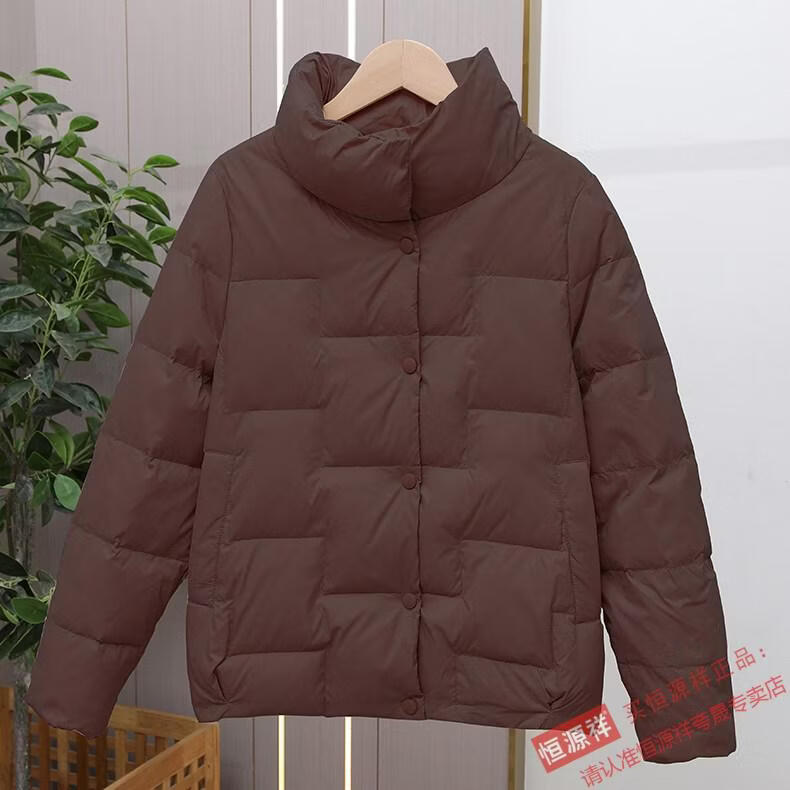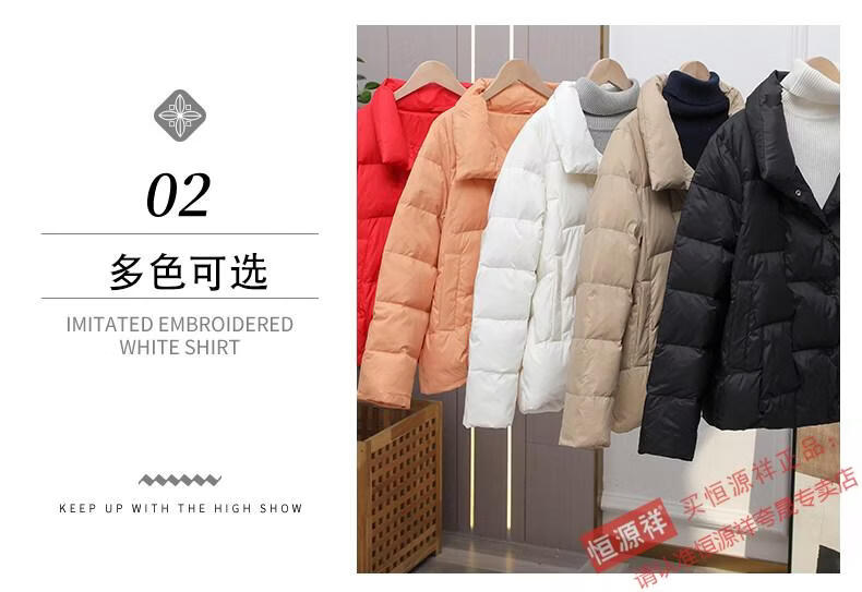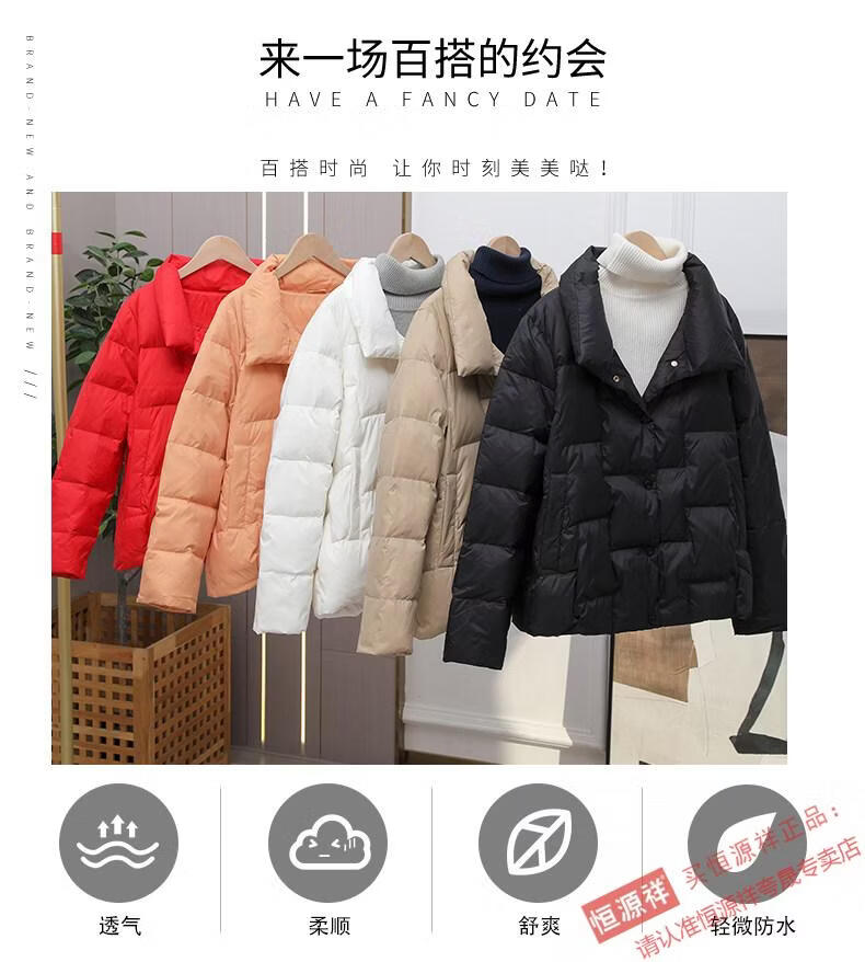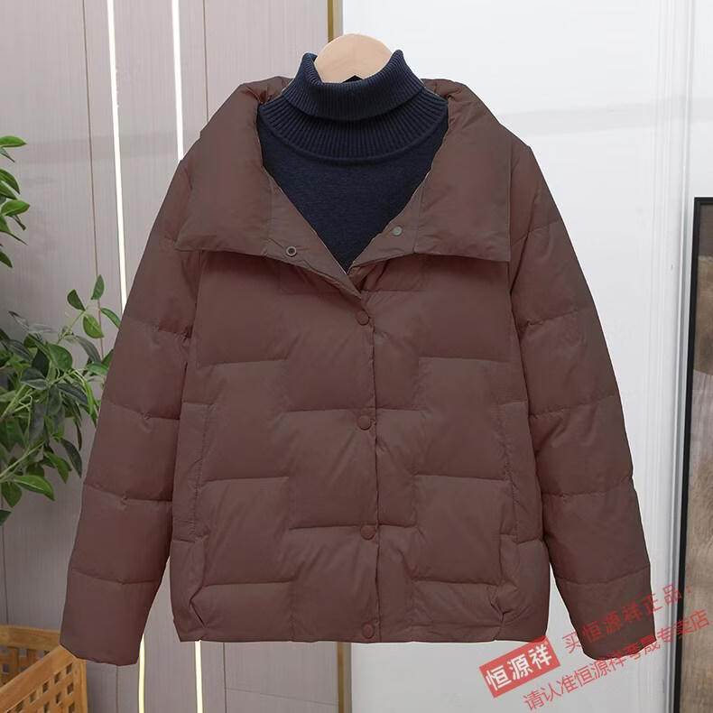 Hengyuanxiang Down Jacket Women's Short 2026 New Autumn and Winter Lightweight Loose Jacket Stand Collar Thin Pure White Duck Down Light Orange Real Duck Down Fake One Get Three S Suitable for 90-120 Jin Jin is equal to 0.5 kg