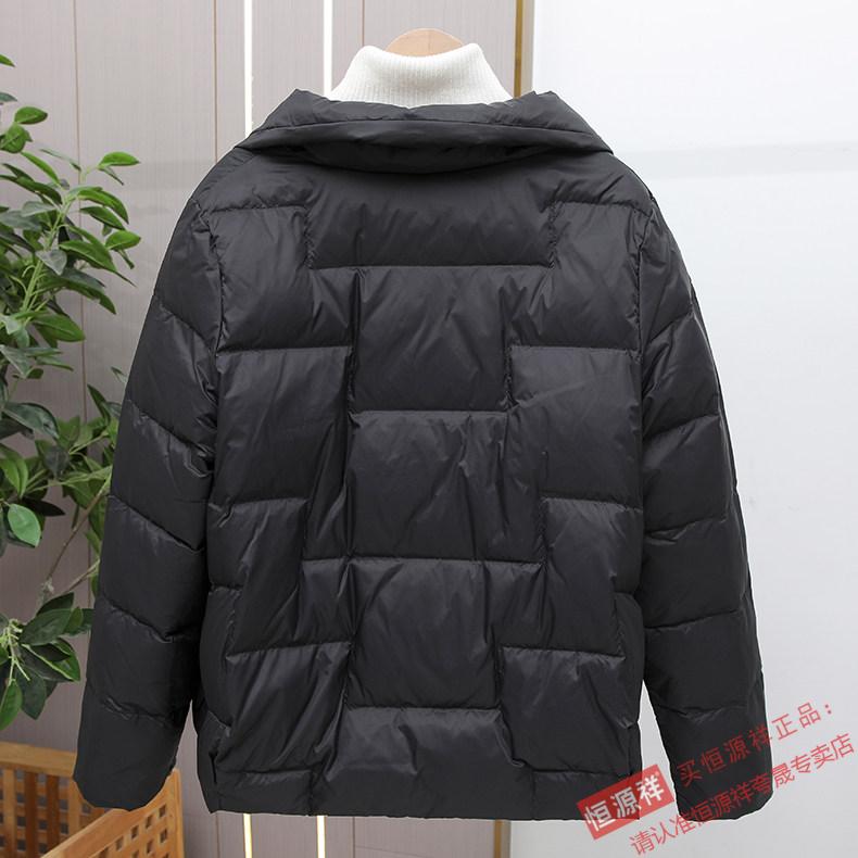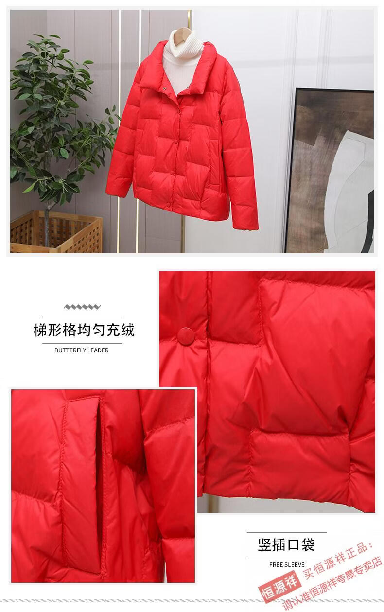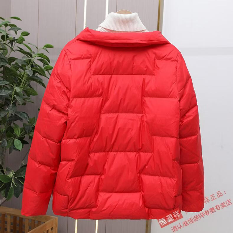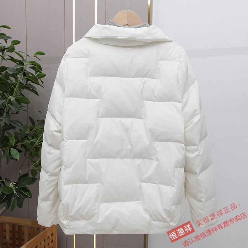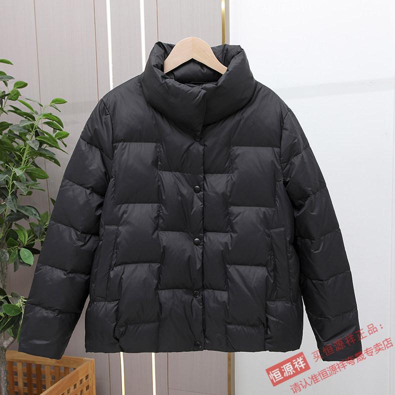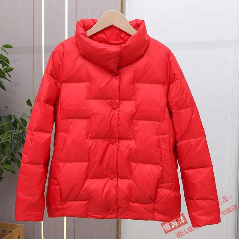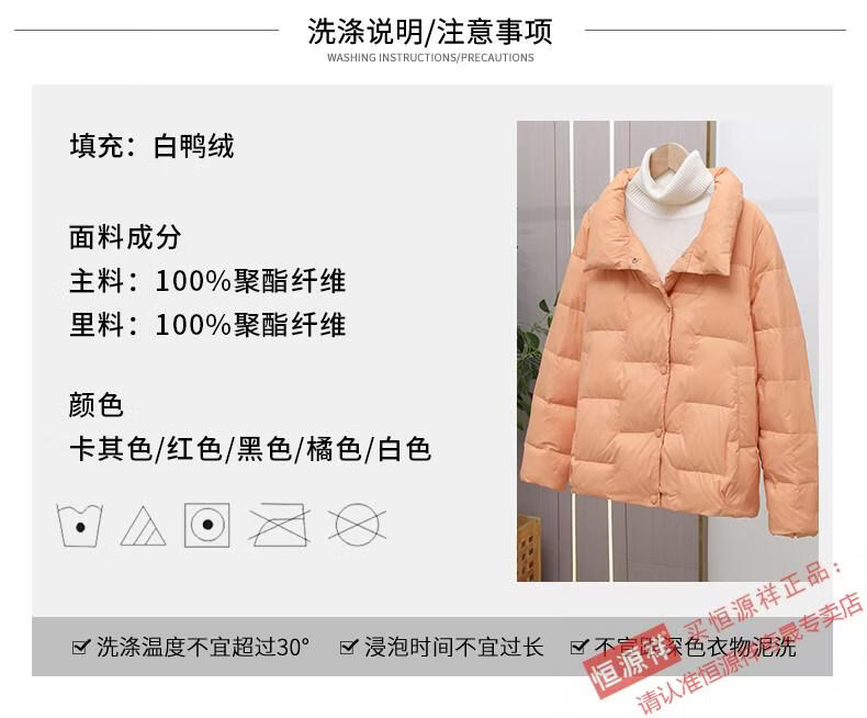 Hengyuanxiang Down Jacket Women's Short 2026 New Autumn and Winter Lightweight Loose Jacket Stand Collar Thin Pure White Duck Down Light Orange Real Duck Down Fake One Get Three S Suitable for 90-120 Jin Jin is equal to 0.5 kg