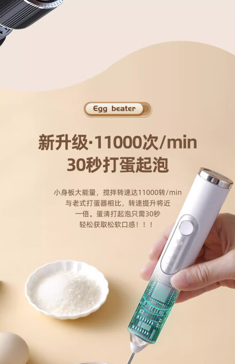 He Jiagong German imported quality egg beater household electric egg beater cream whipper mini baking handheld mixing god white newly upgraded 2025 new style three-speed variable speed adjustable