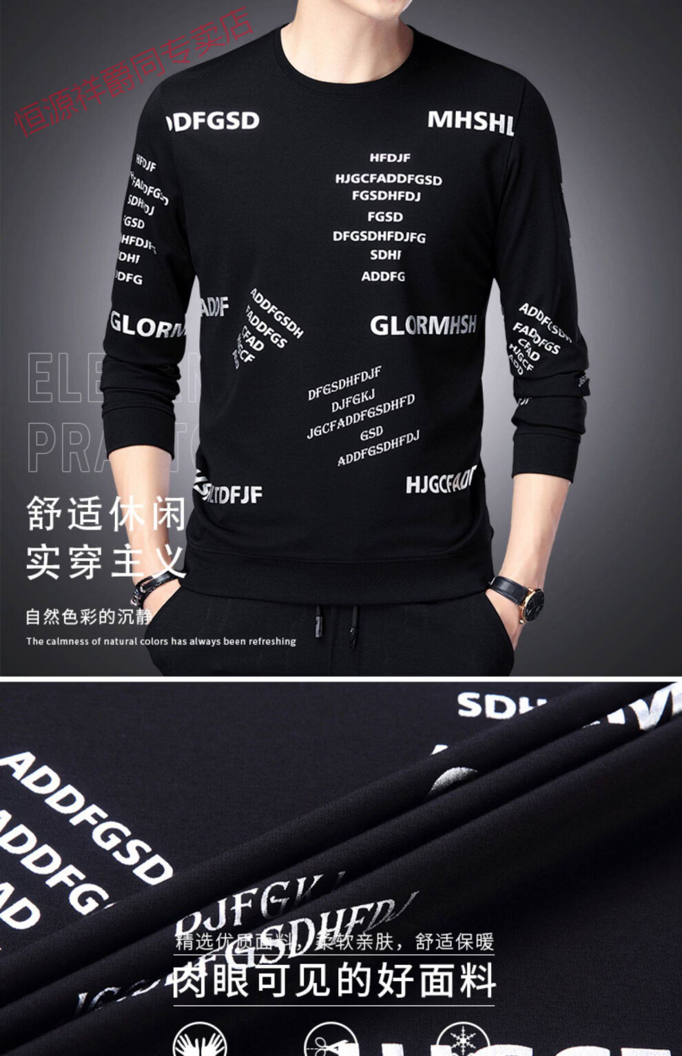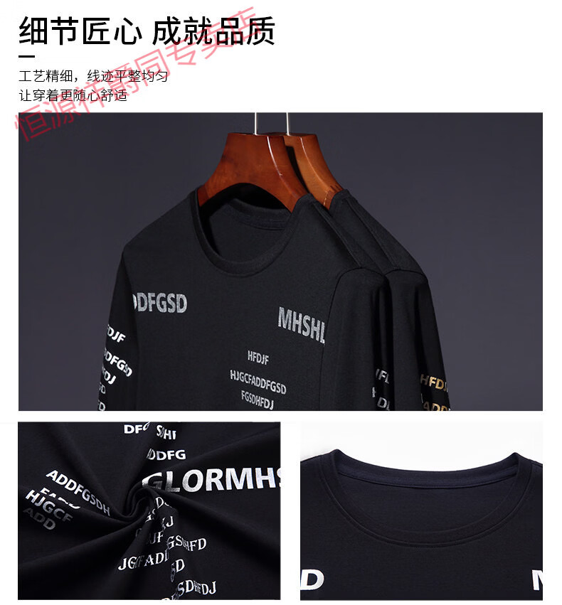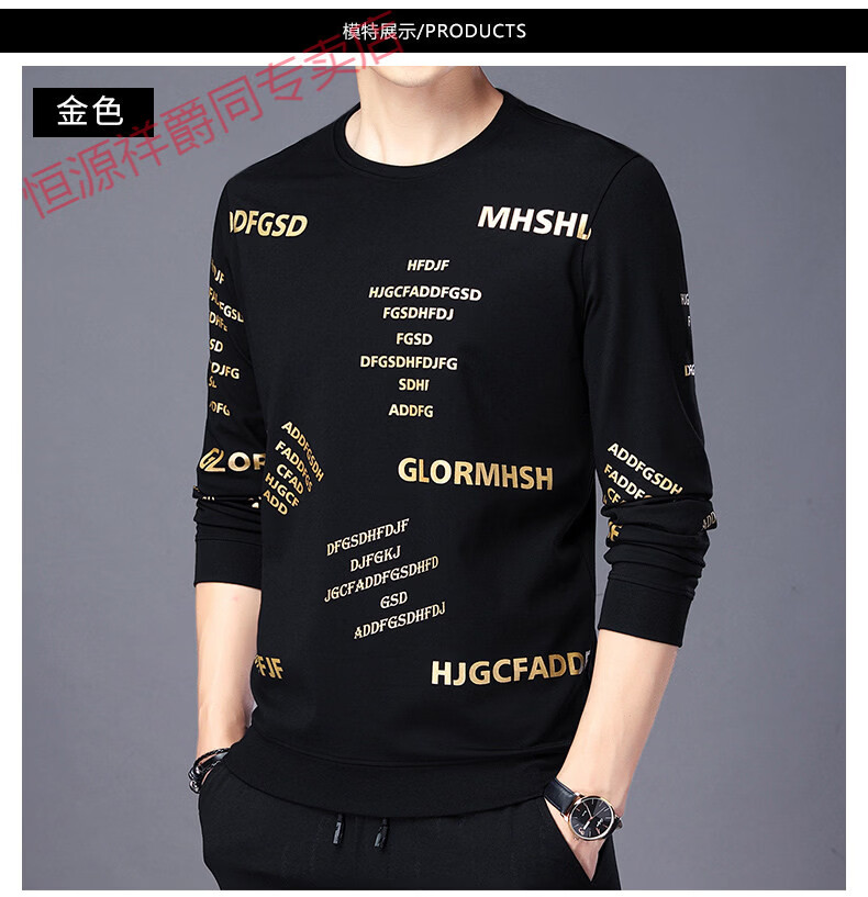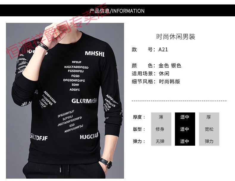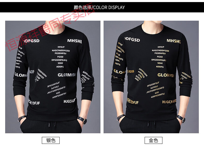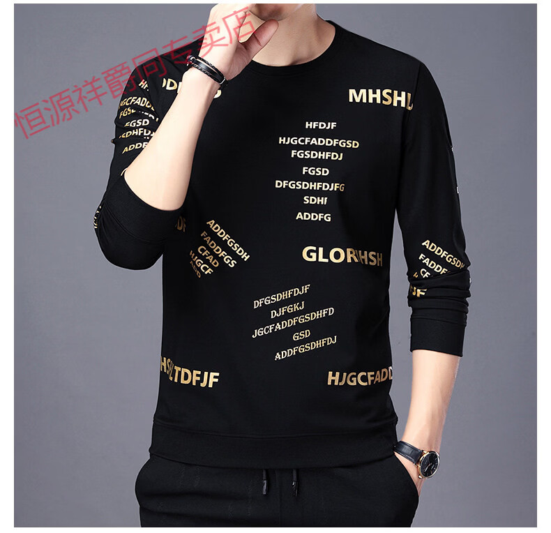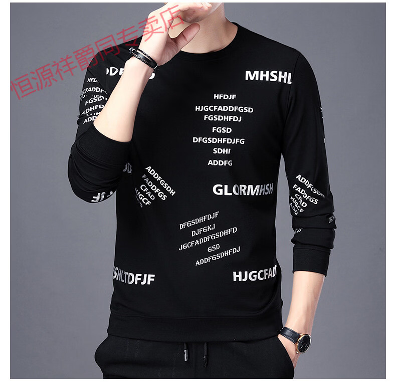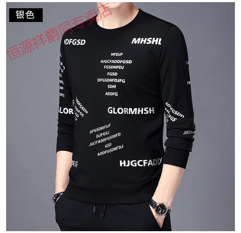 Hengyuanxiang high-end pure cotton sweatshirt men's youth round neck men's long-sleeved t-shirt men's spring thin t-shirt Korean style fashion silver A21 L 170