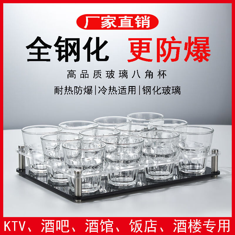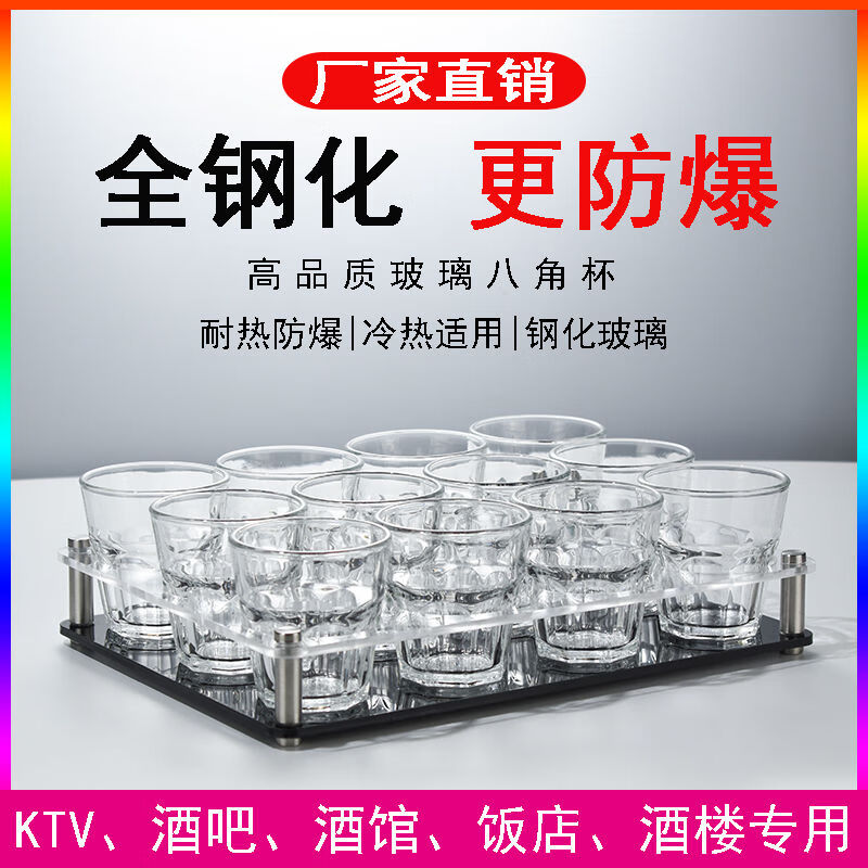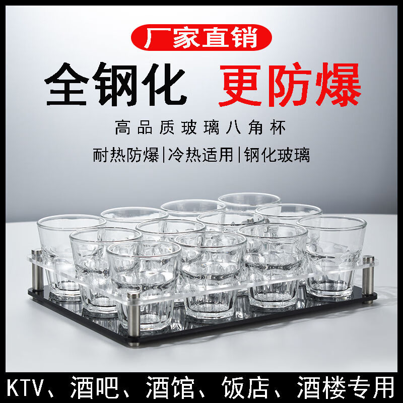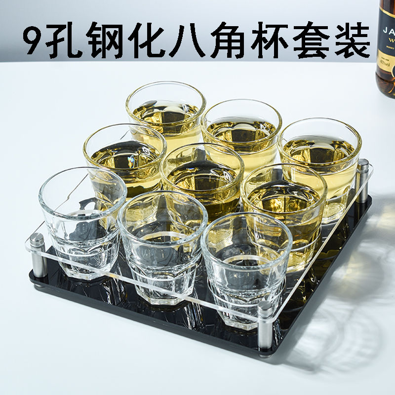 Fantasy Bar KTV Beer Cup Holder Set Tempered Glass Octagonal Cup Commercial Drinking Cup Anti-fall Special Cup Holder Set 150ml Octagonal Cup 9 Pack Black Acrylic Holder Broken