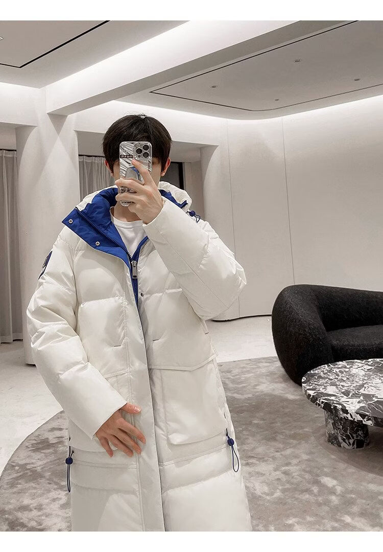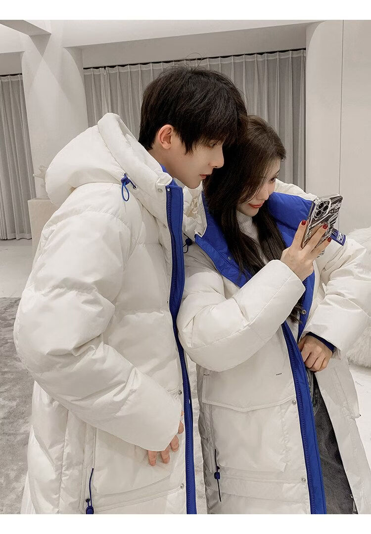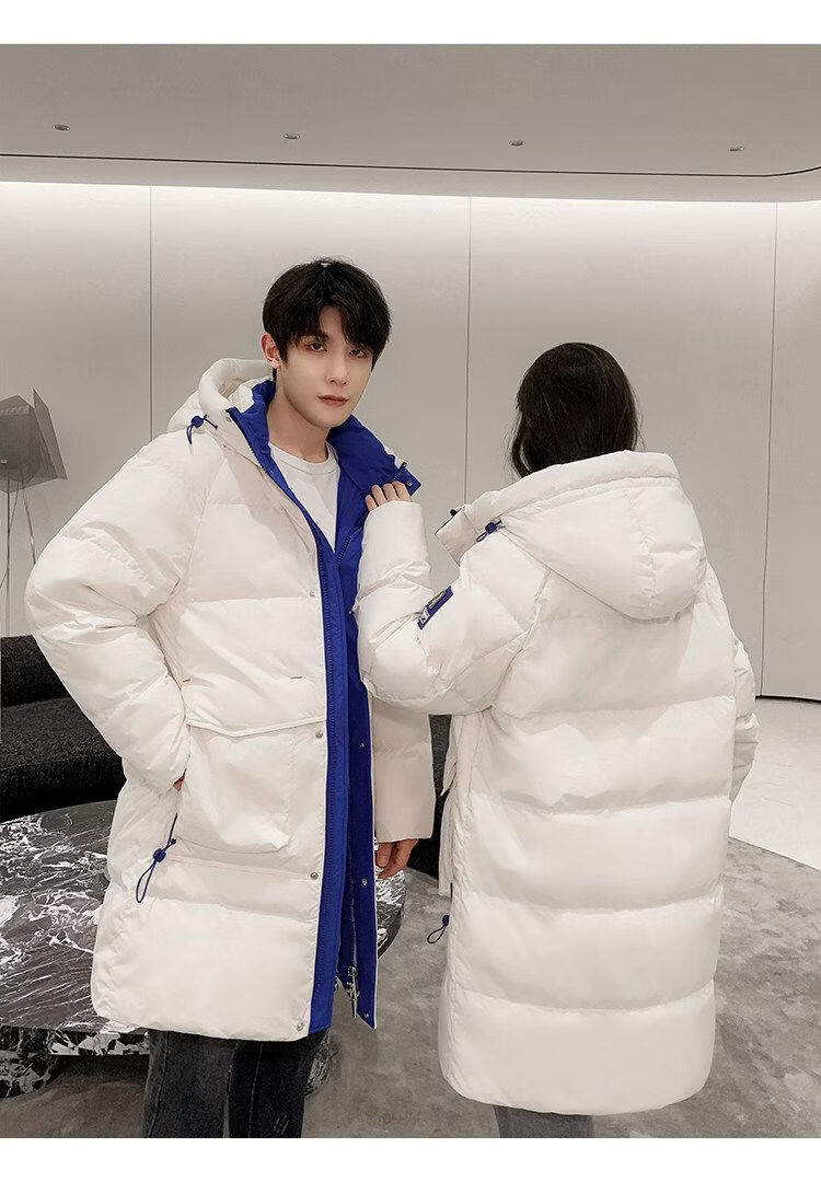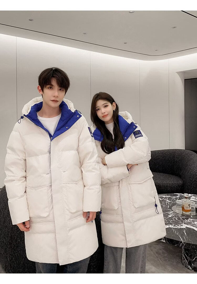 Playboy (PLAYBOY) Down Jacket Men's Medium Long Couple Women's 2025 Winter New National Fashion Brand Thickened Youth Over the Knee White (Male) XL (Recommended 140-155 Jin Jin equals about 0.5 kg)