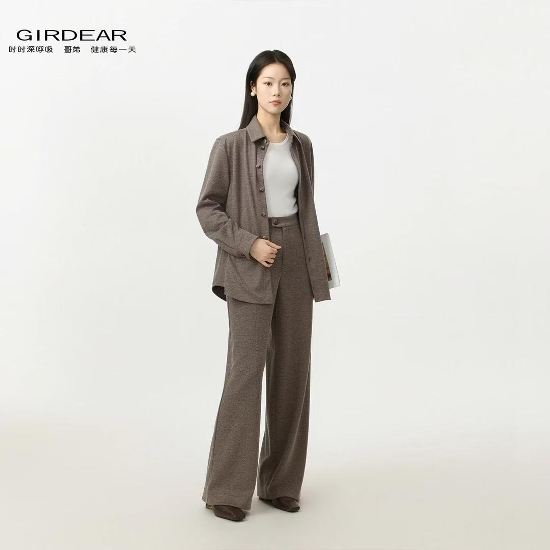 GIRDEAR's new old-money tonal fashionable relaxed versatile slim casual shirt 130168 cocoa brown M 3