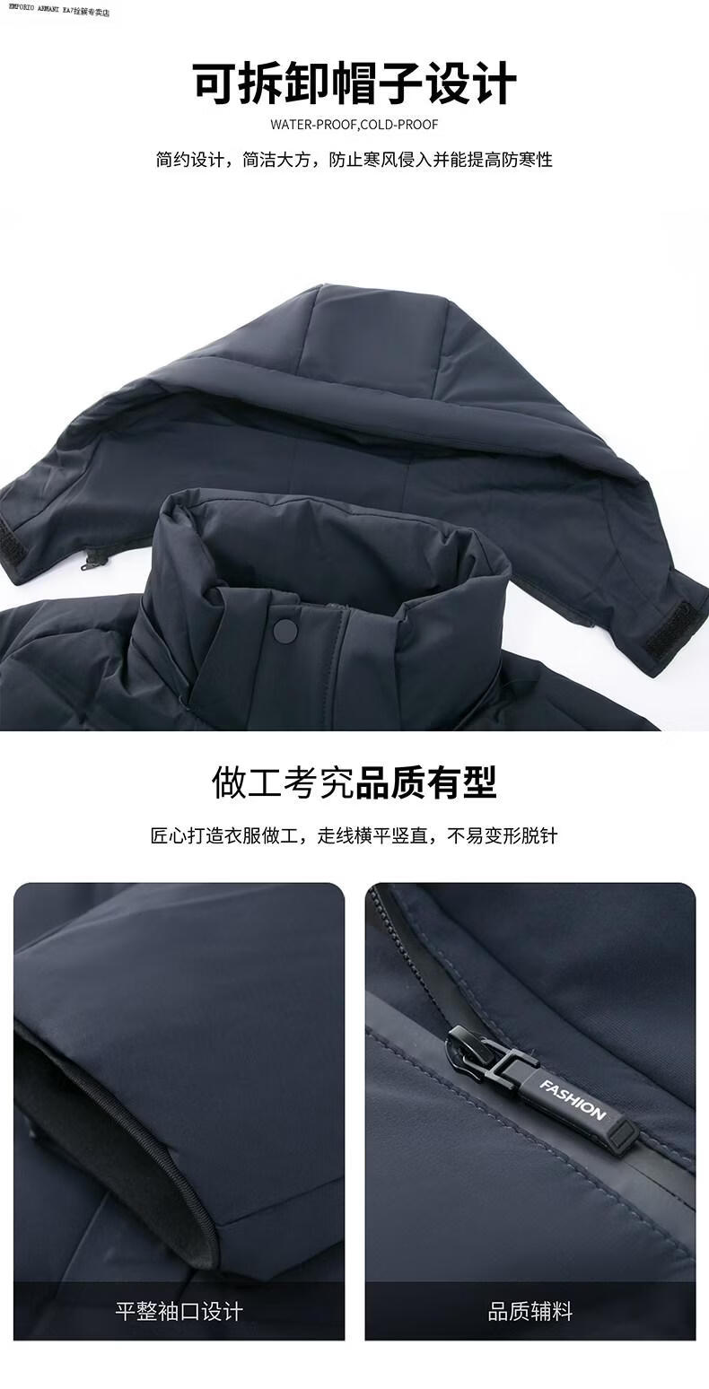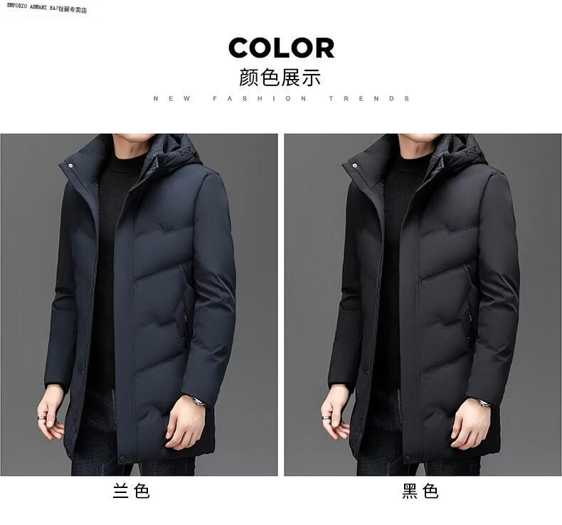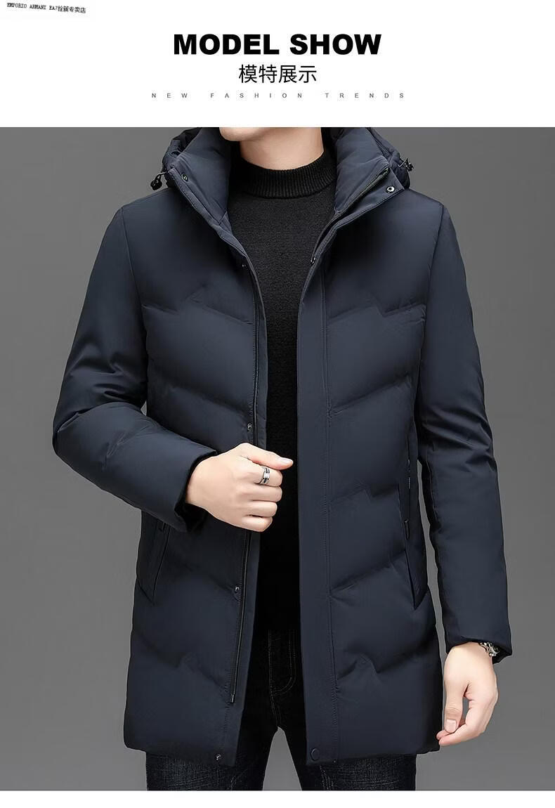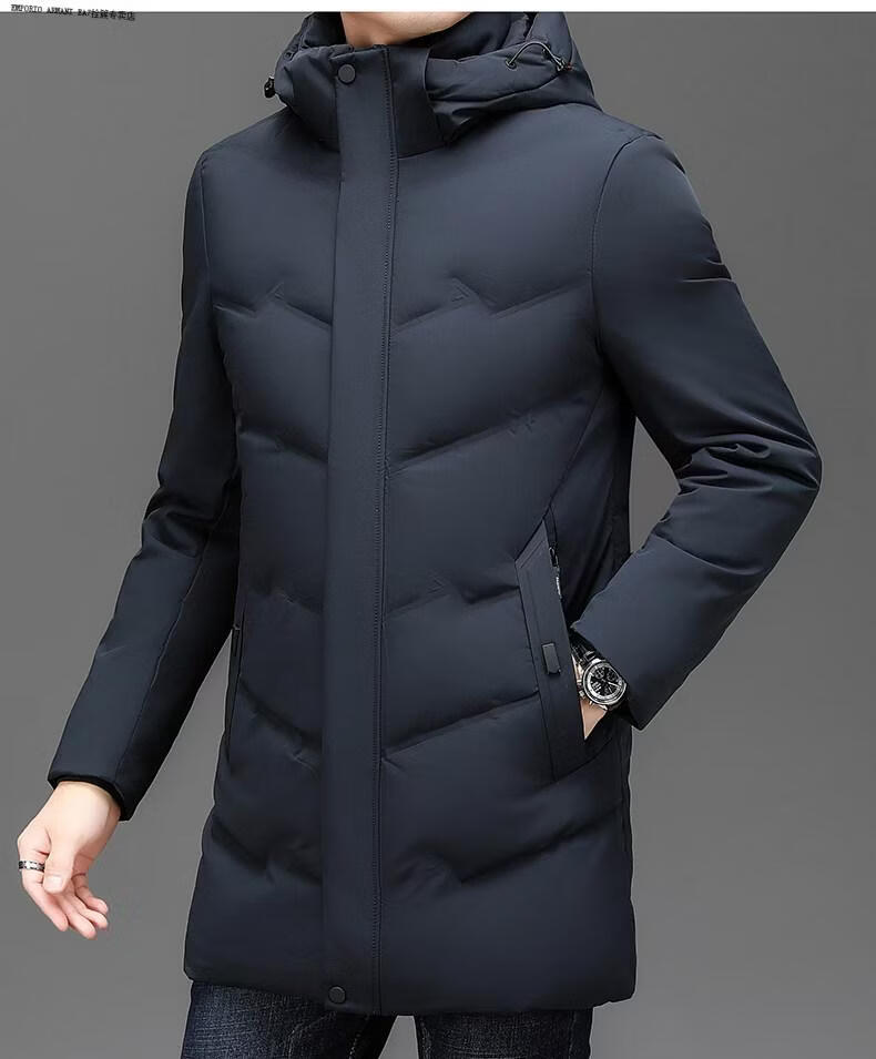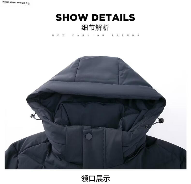 Emporio Armani EA7 Armani solid color mid-length hooded down jacket for men 2026 winter new fashion white duck down warm casual plus blue 2XL