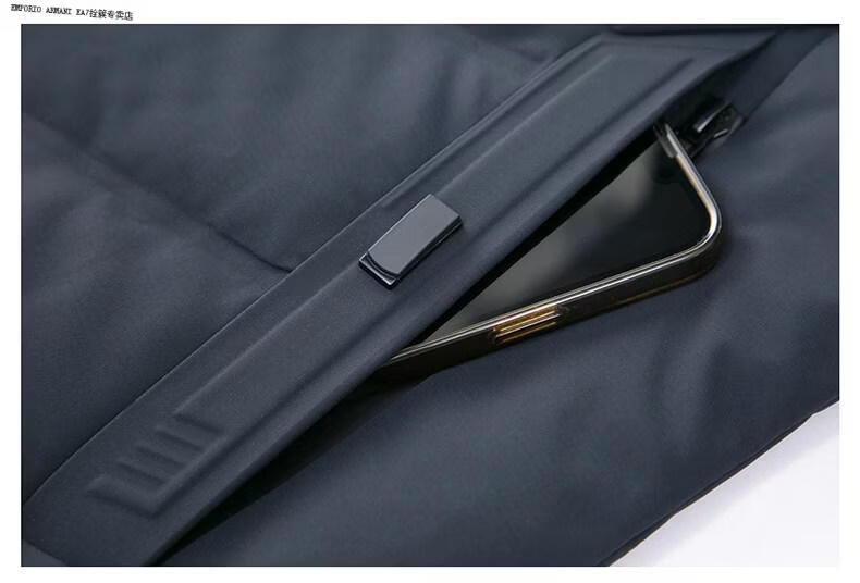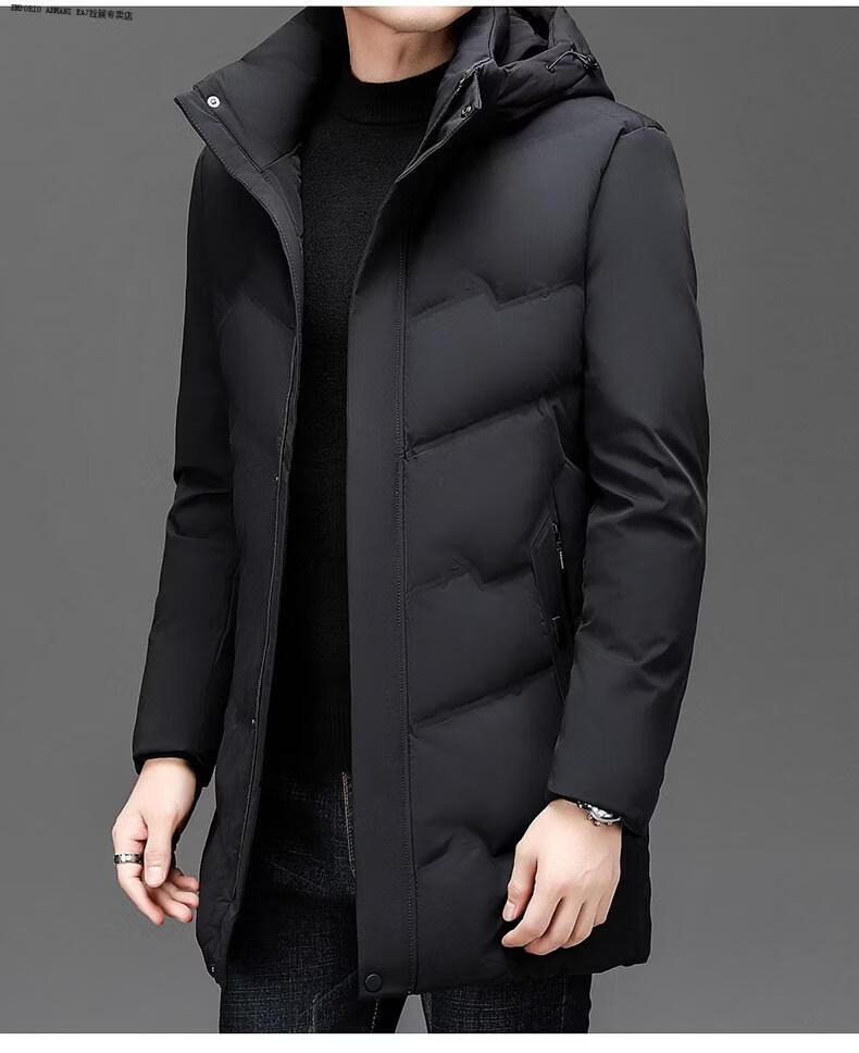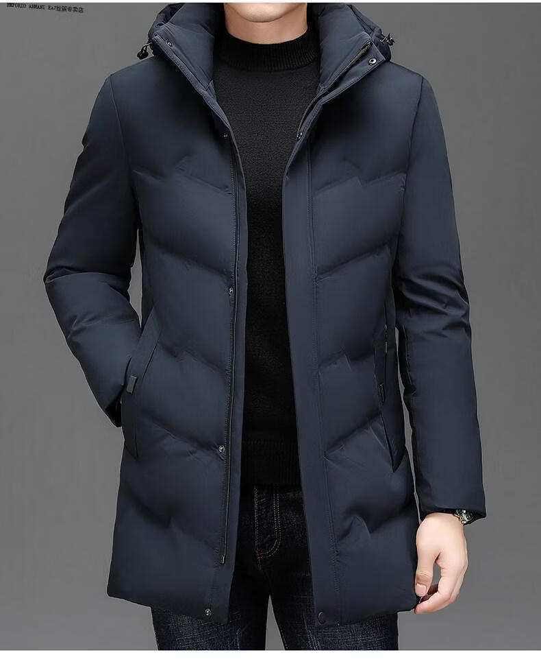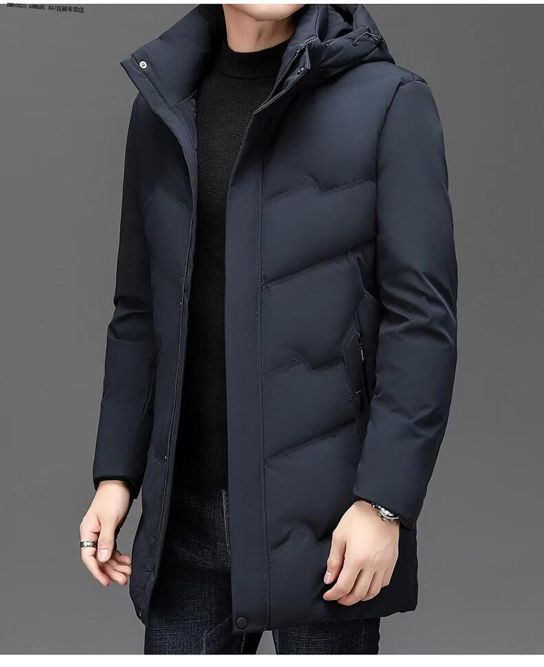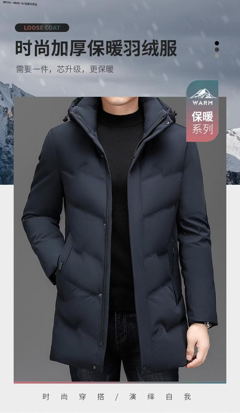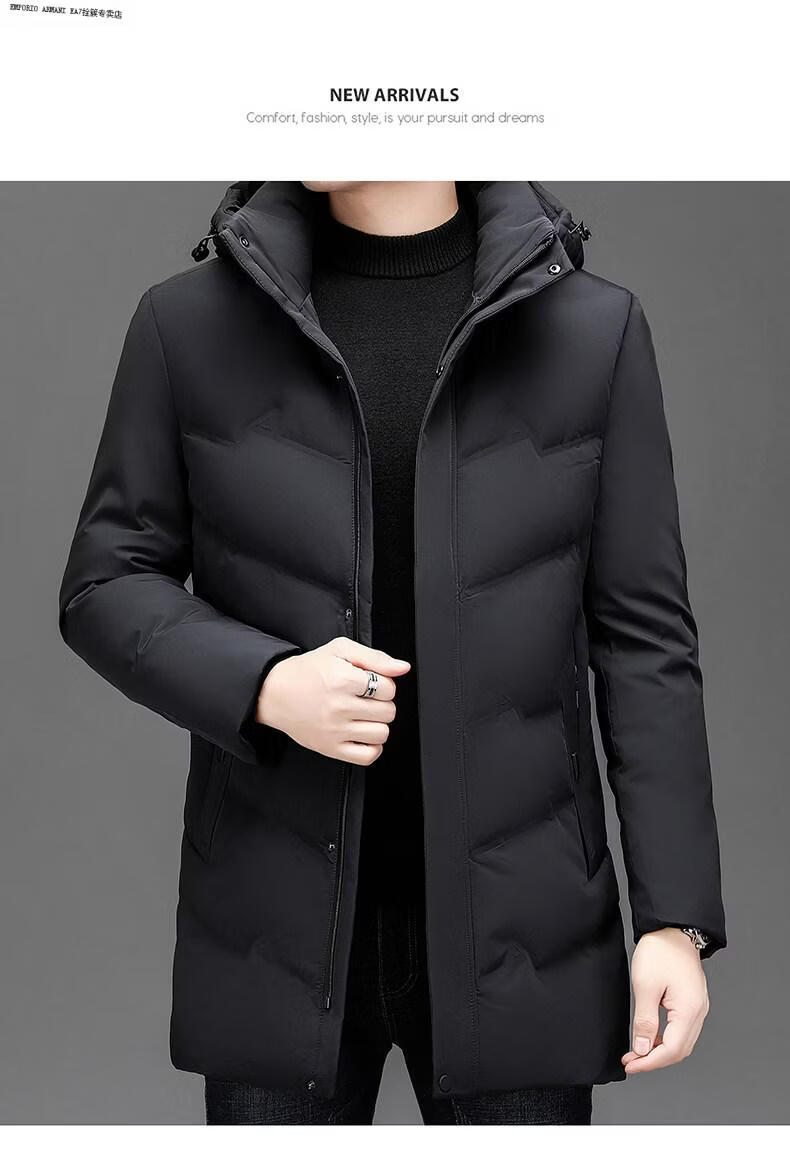 Emporio Armani EA7 Armani solid color mid-length hooded down jacket for men 2026 winter new fashion white duck down warm casual plus blue 2XL