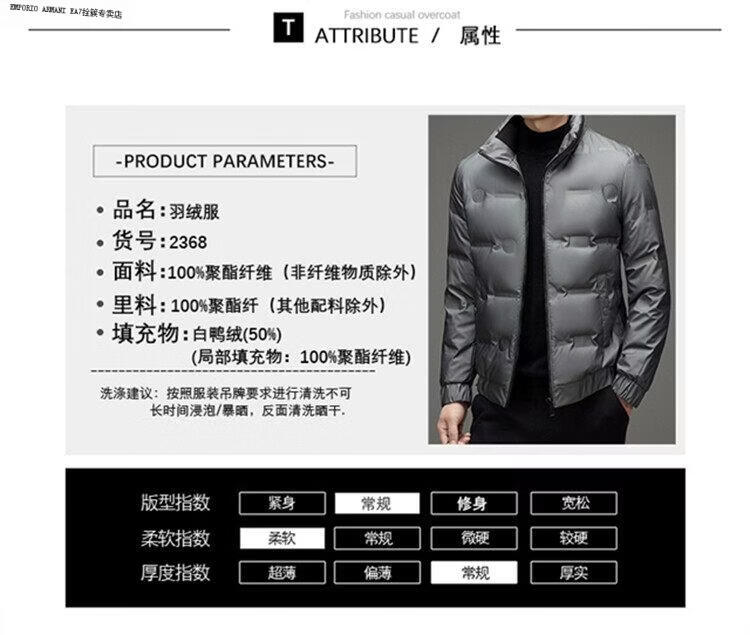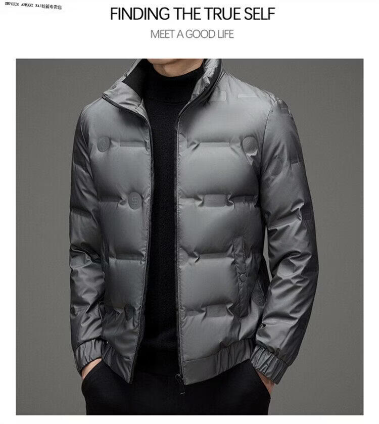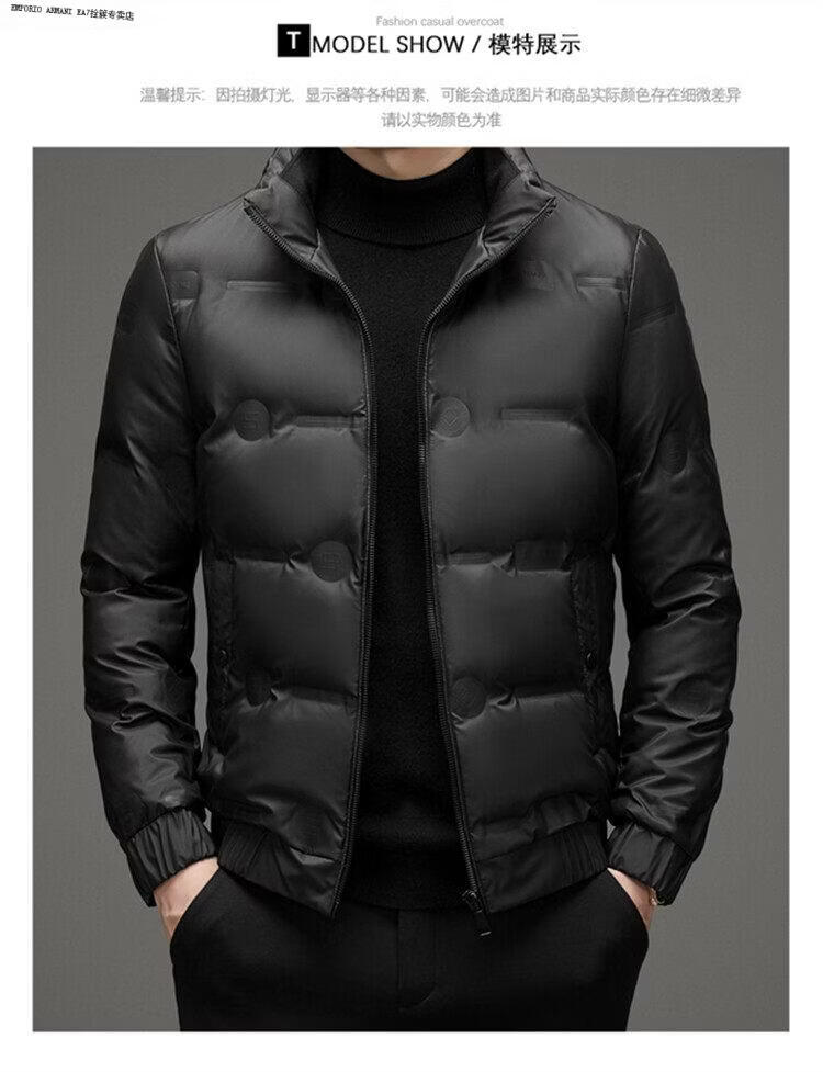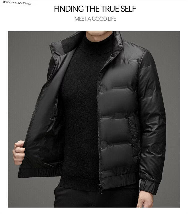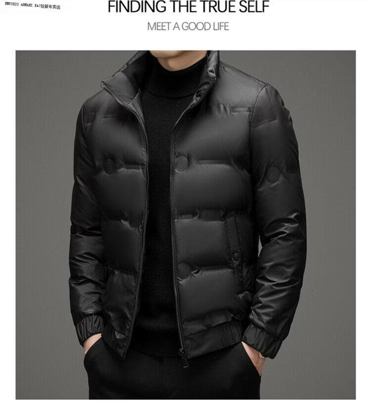 Emporio Armani EA7阿玛尼羽绒服短款男士冬季立领2026新款潮流休闲轻薄加厚白鸭绒外 黑色 高品质 M 建议100-115斤穿