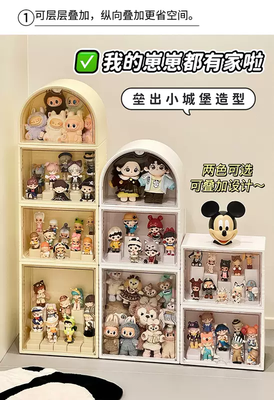 Yusen Yisen Belle display stand small doll display cabinet figure storage box blind box display box transparent acrylic storage box white arch seal display box (magnetic opening and closing, no odor)