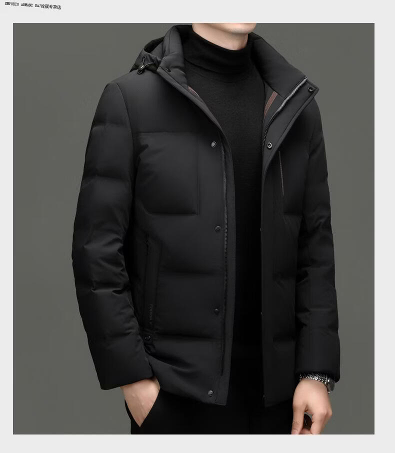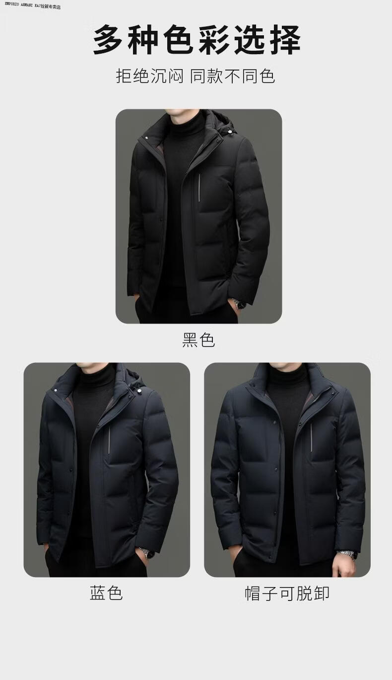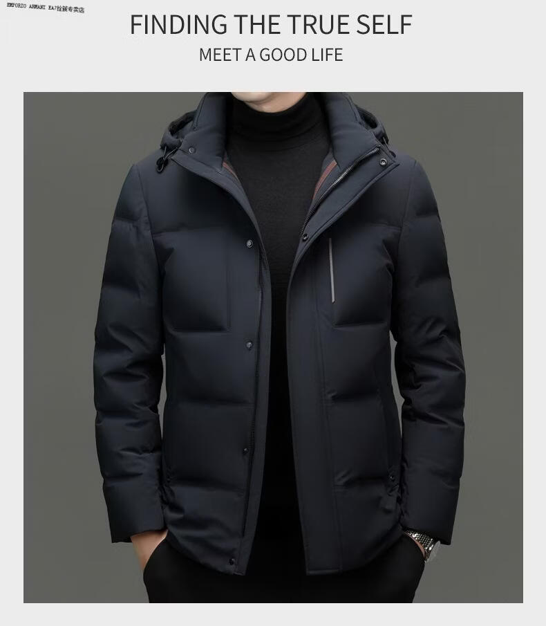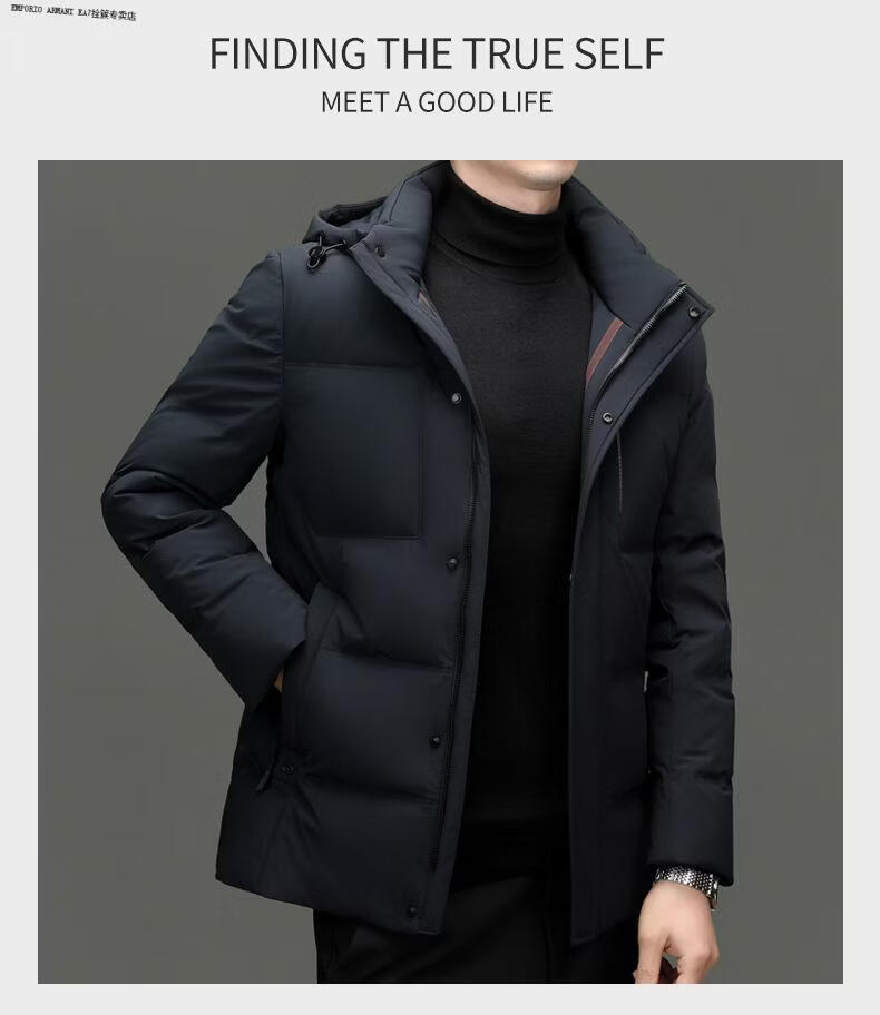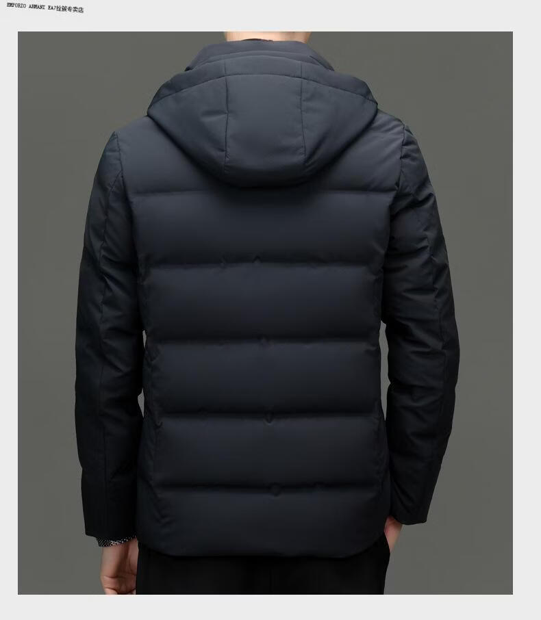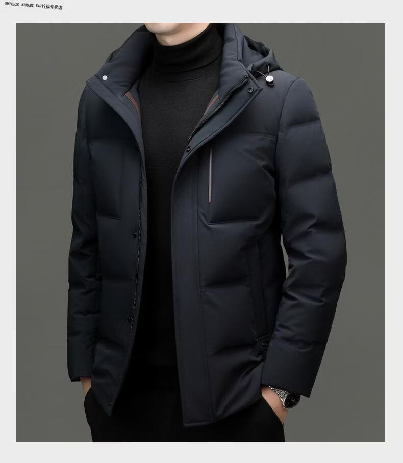 Emporio Armani EA7 Armani 2026 winter new style middle-aged men's down jacket business casual hooded white duck down jacket for men daddy navy blue M 170