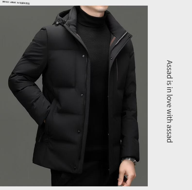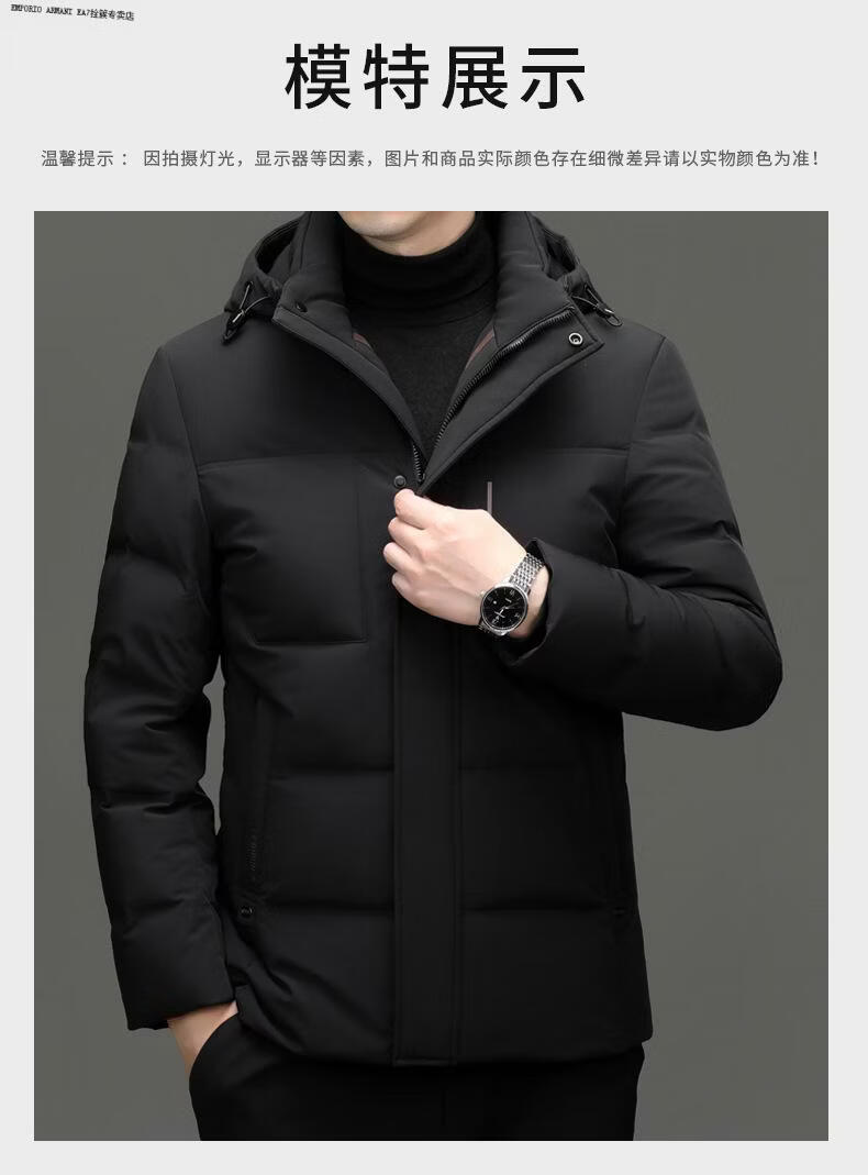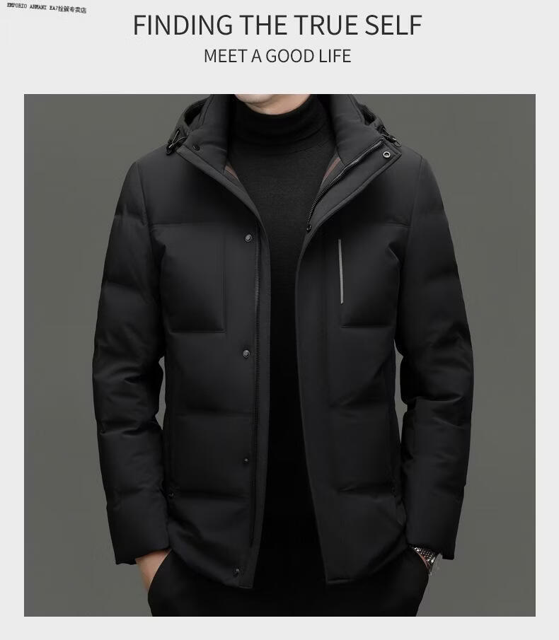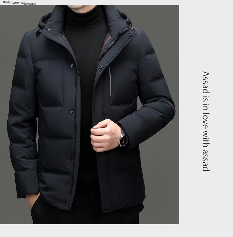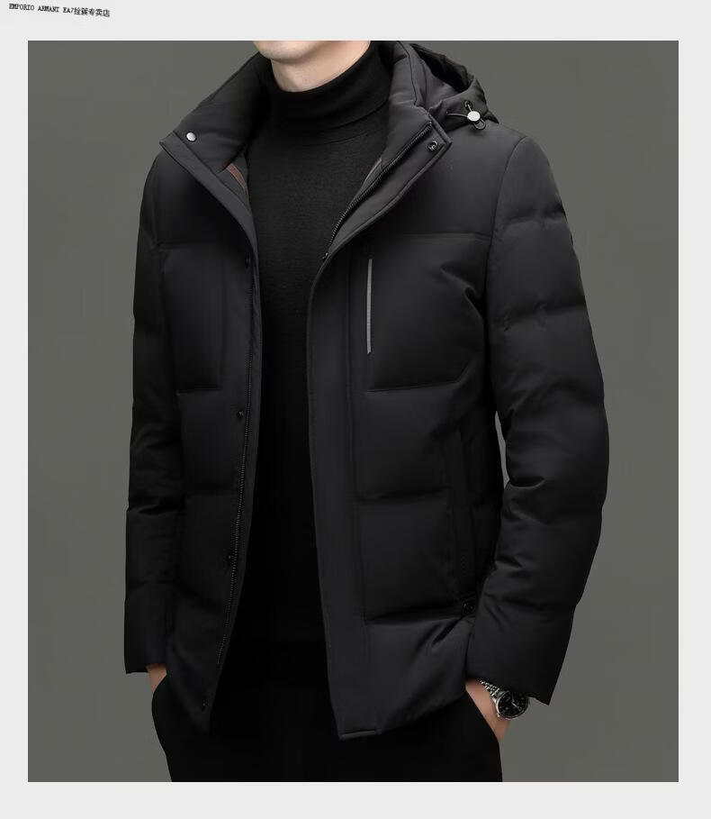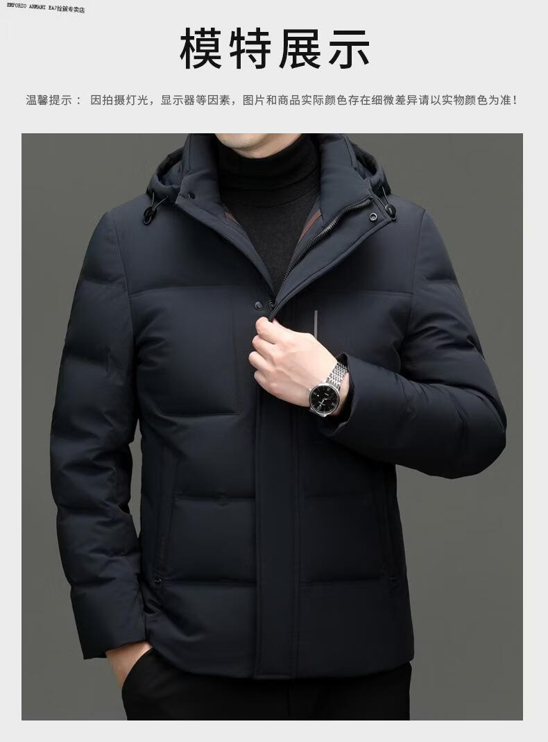 Emporio Armani EA7 Armani 2026 winter new style middle-aged men's down jacket business casual hooded white duck down jacket for men daddy navy blue M 170