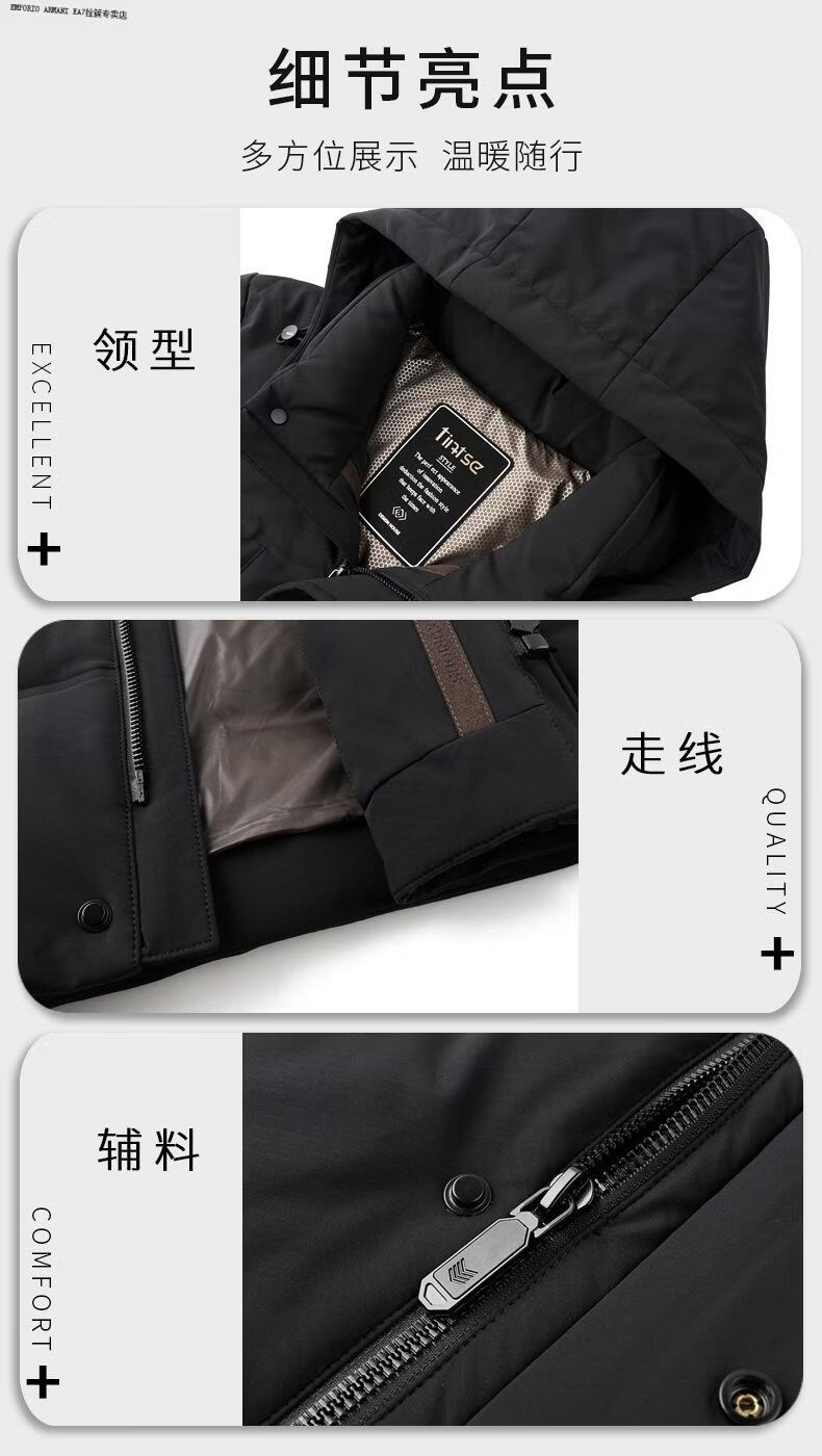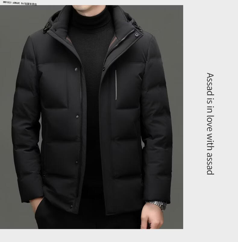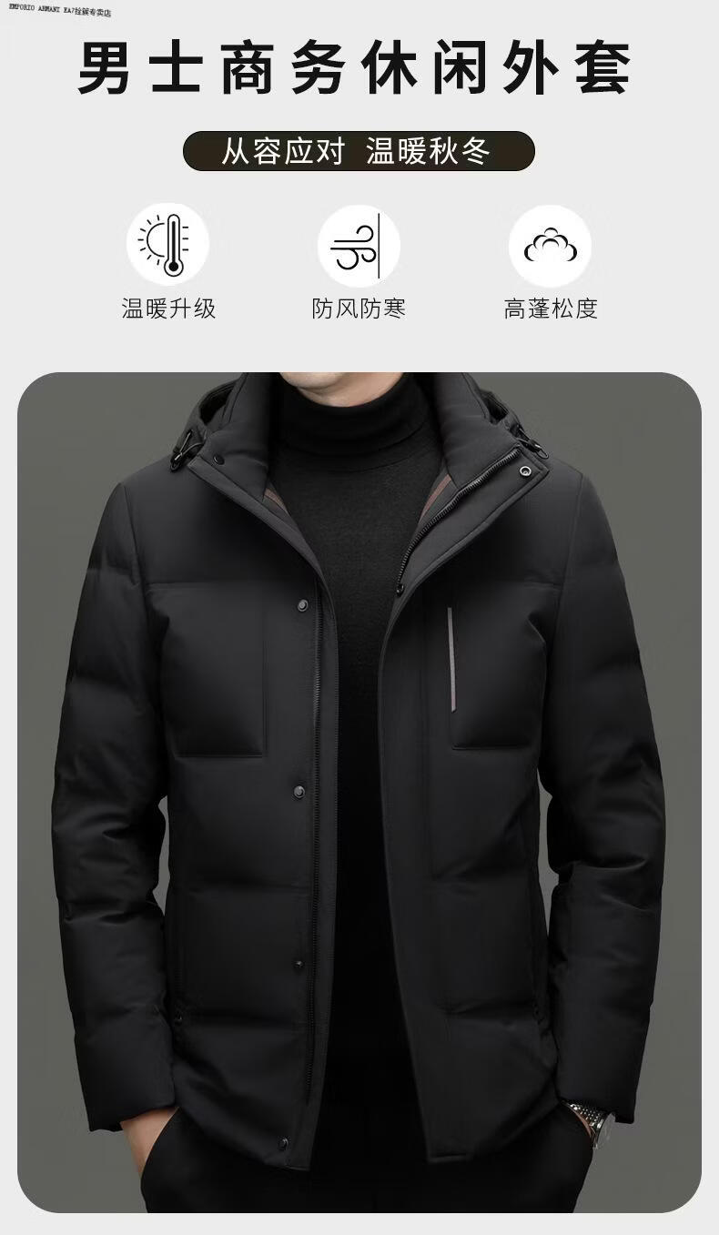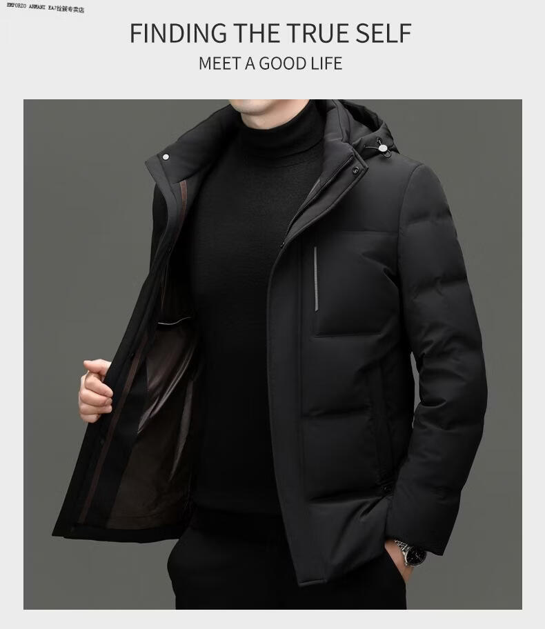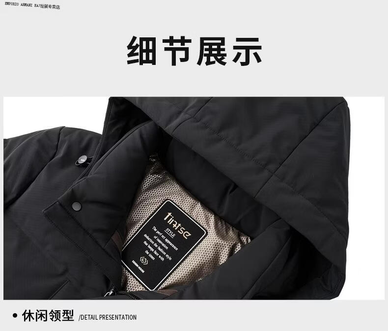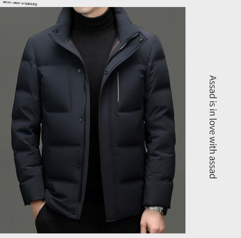 Emporio Armani EA7 Armani 2026 winter new style middle-aged men's down jacket business casual hooded white duck down jacket for men daddy navy blue M 170