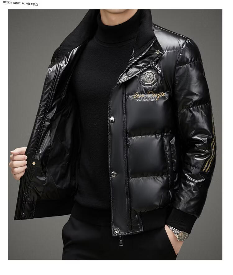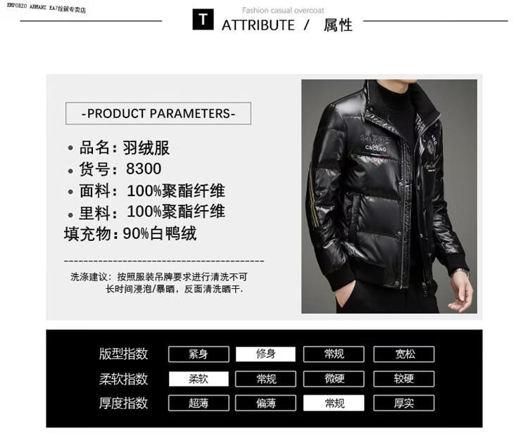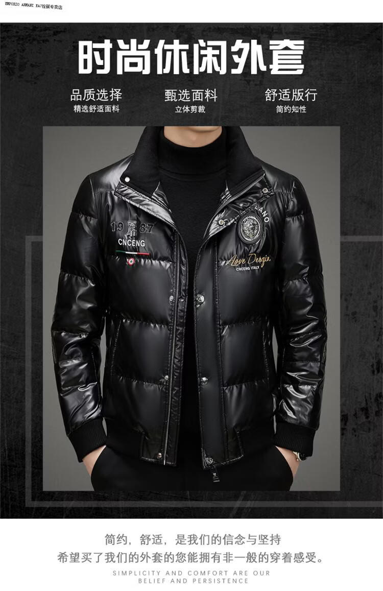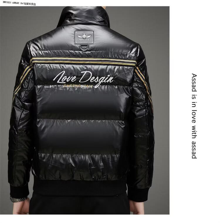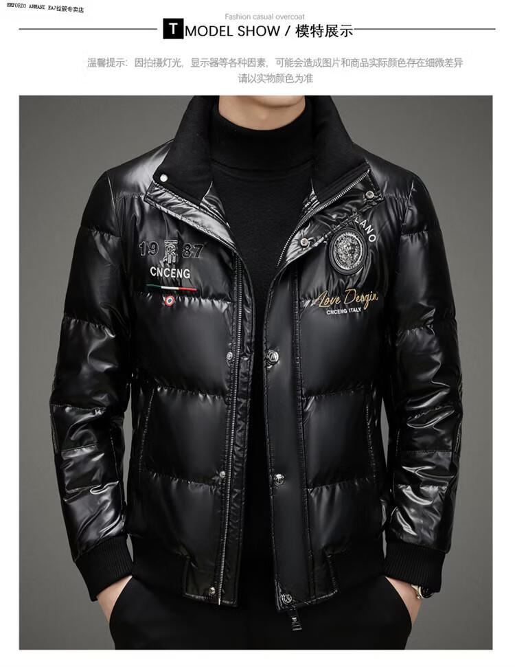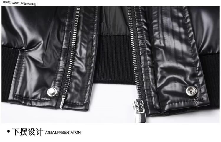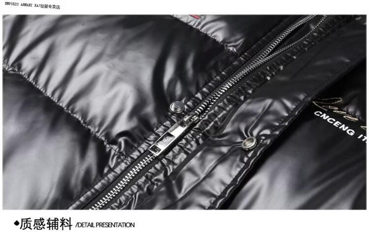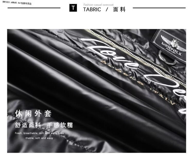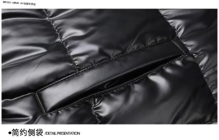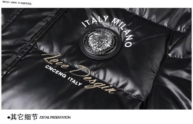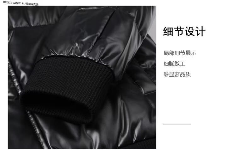 Emporio Armani EA7阿玛尼高端亮面免洗羽绒服男士夹克新款立领时尚绣花外套潮 黑色高端羽绒服 L