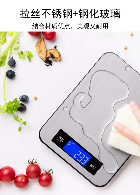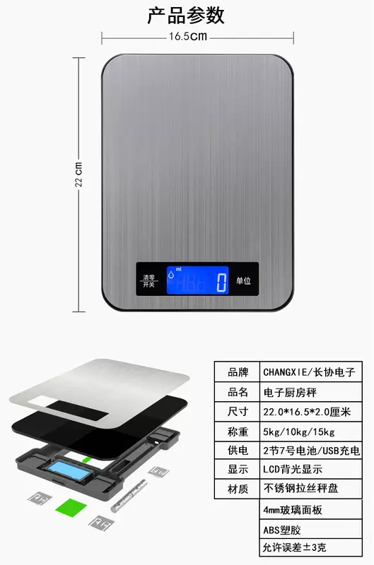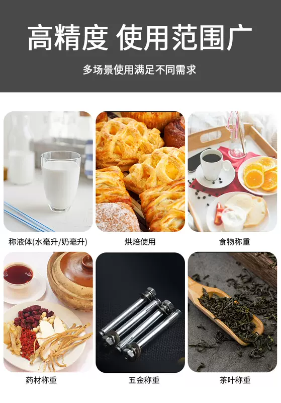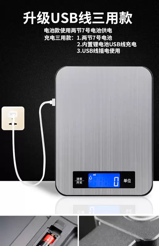 Yusenyi high-precision waterproof home kitchen electronic scale CHANGXIE small baking weighing scale for long consultation, accurate, rechargeable three-use model 10kg1g free 1600ml tray-30m measuring cup