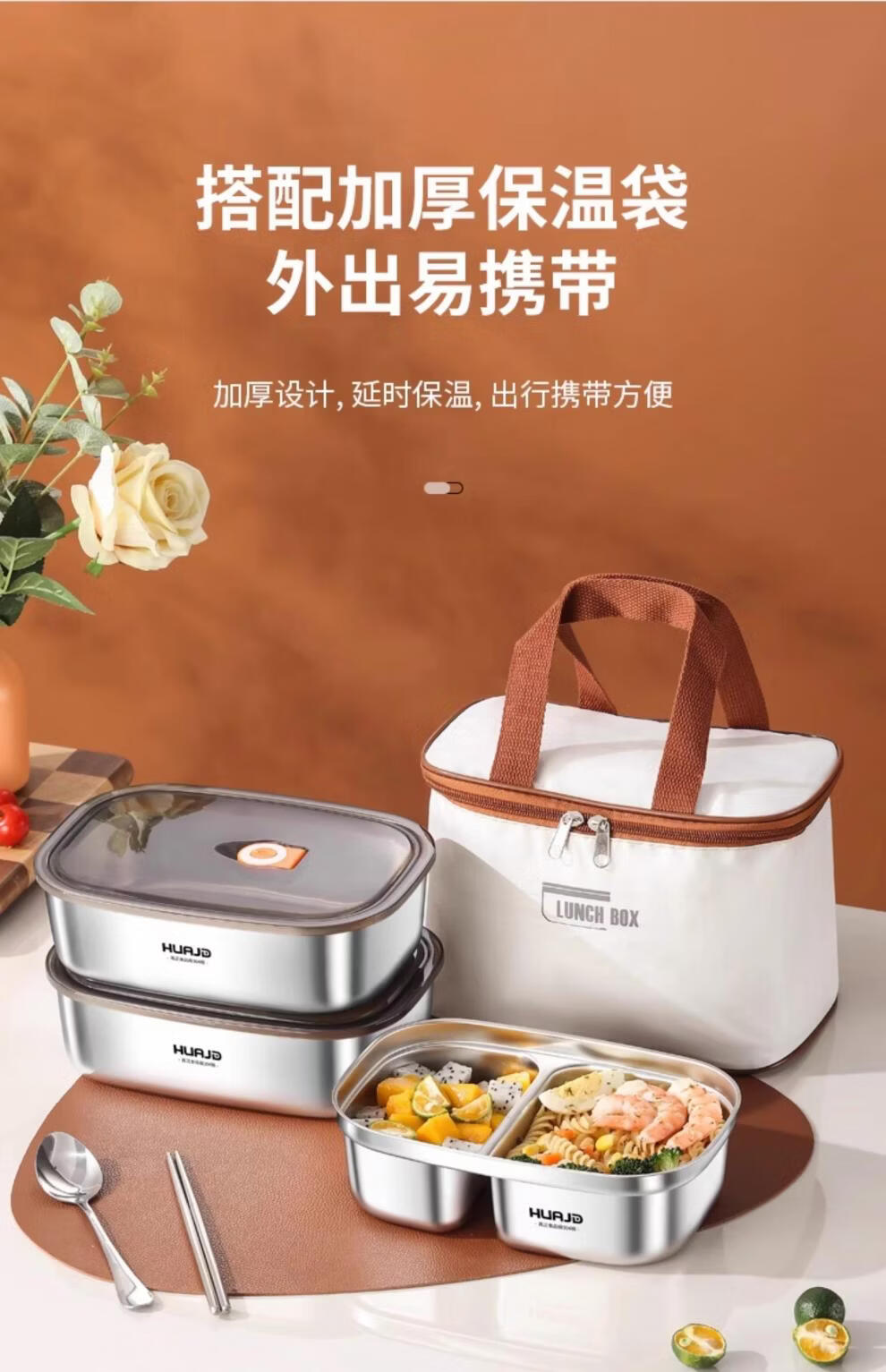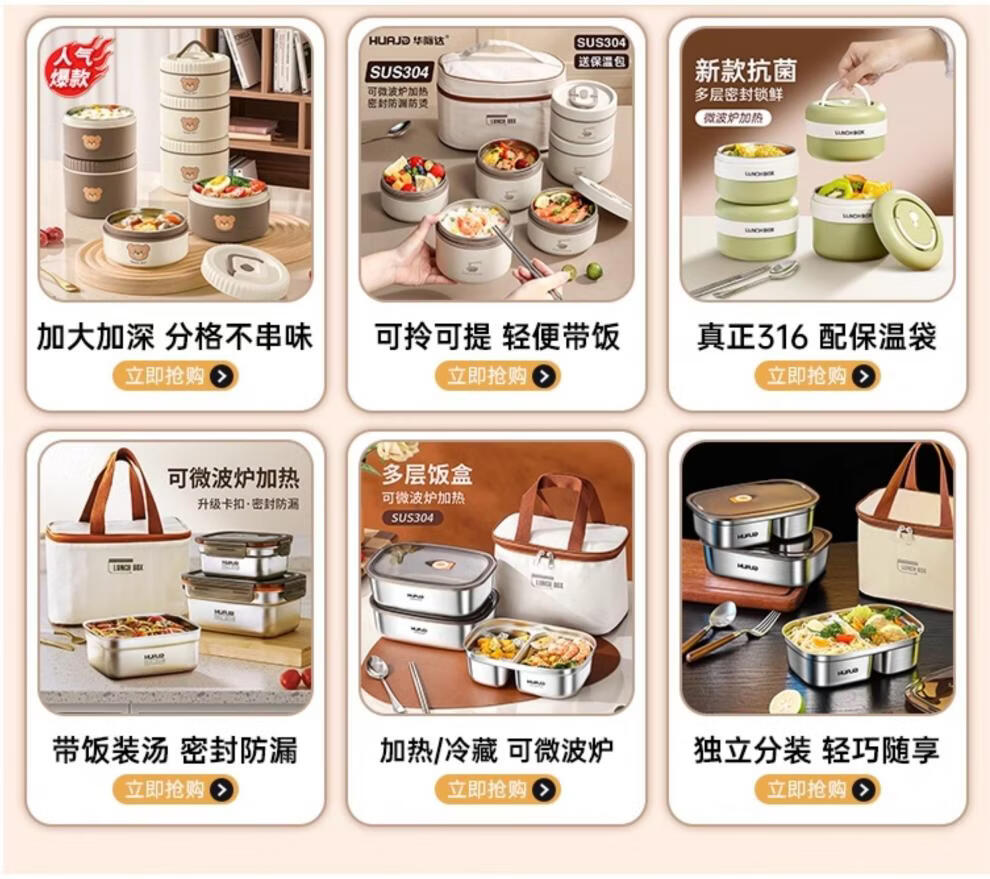 Craftsman core beads 304 stainless steel divided lunch box for junior high school students microwave heating 2025 new model The following extra thick upgrades
