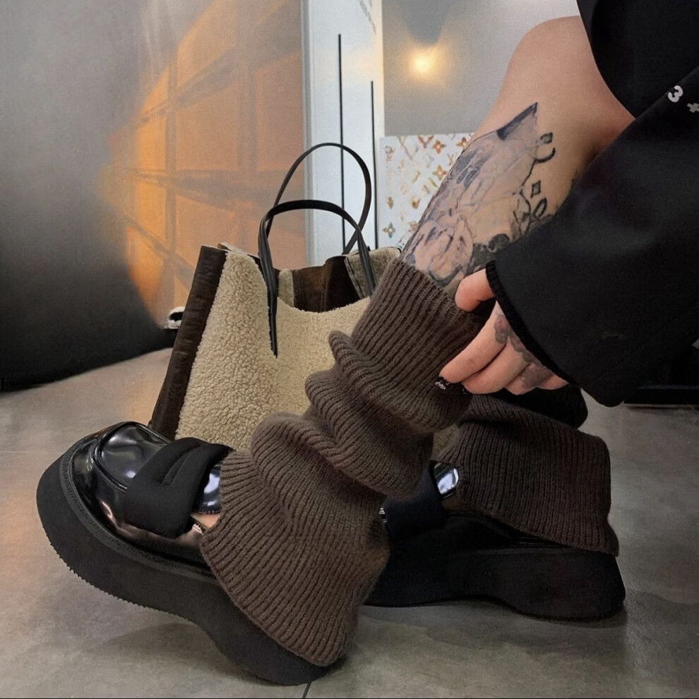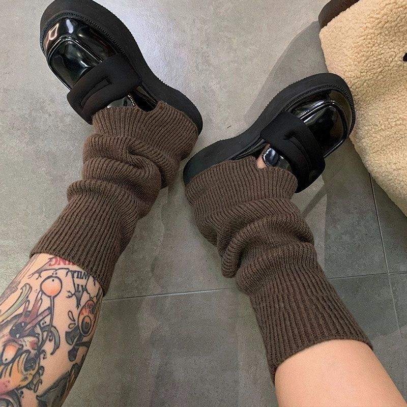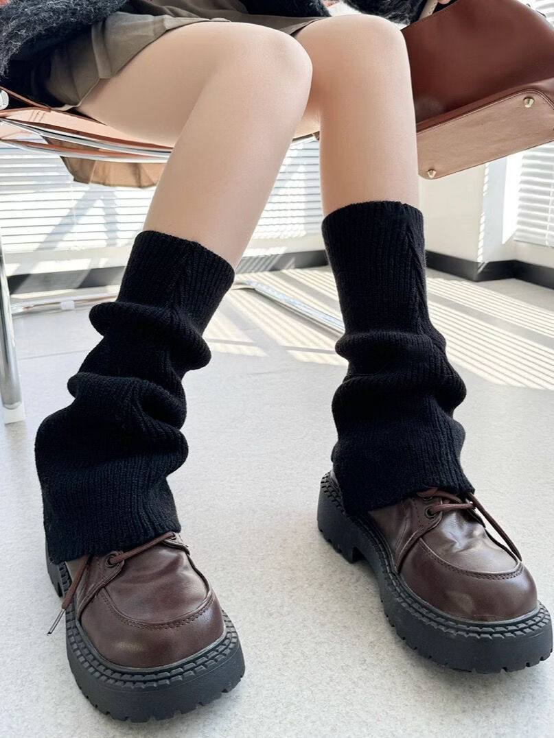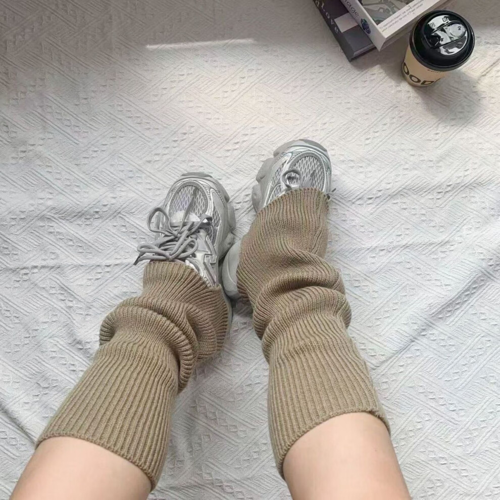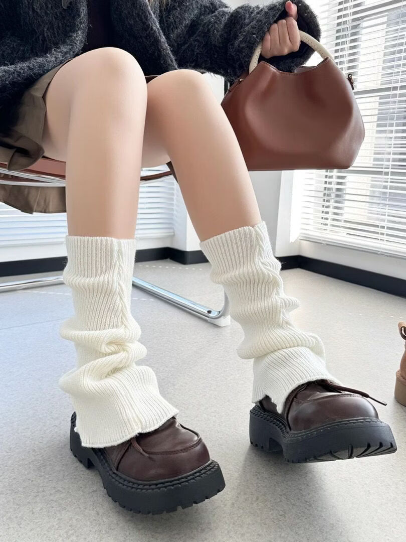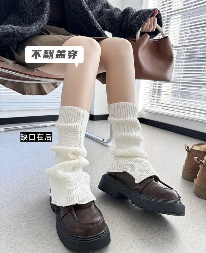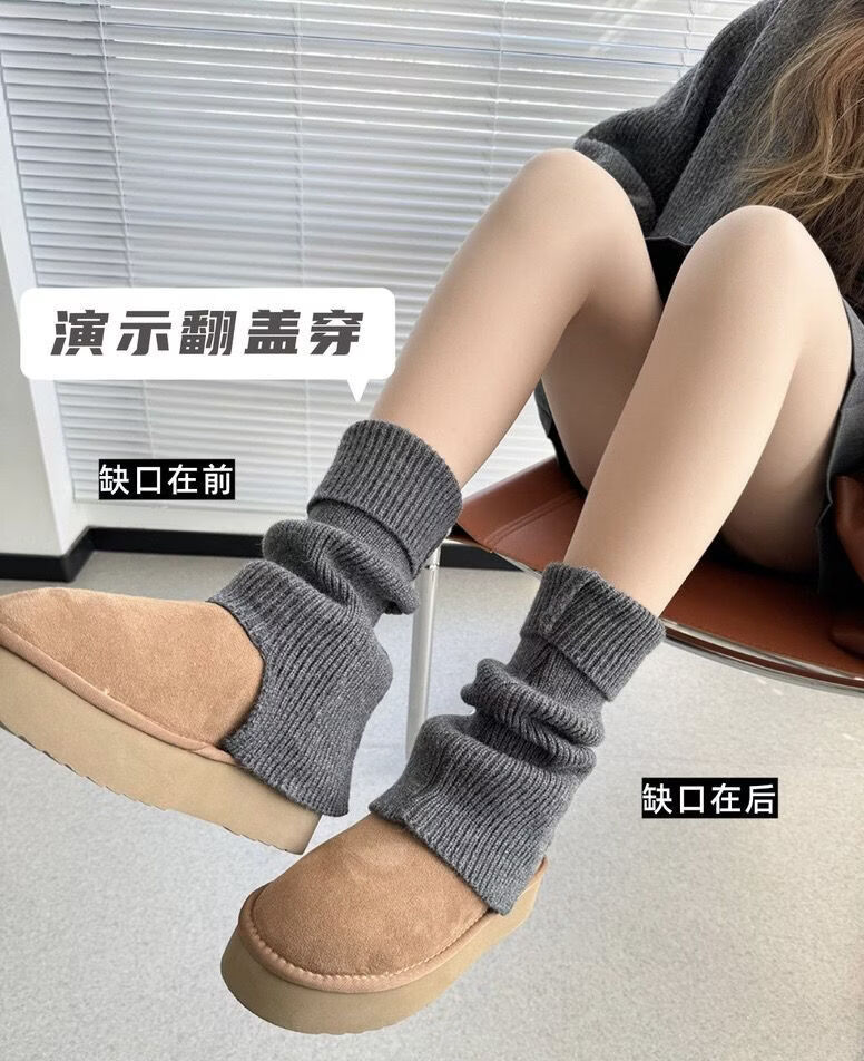 Meili slim-colored bell-mouthed socks for autumn and winter jk versatile thickened warm knitted woolen leg covers piled socks for women y2k stackable and straight *grey*high quality model one size fits all 1 pair