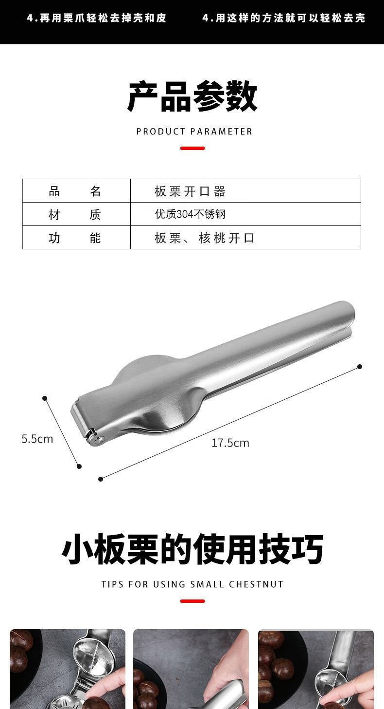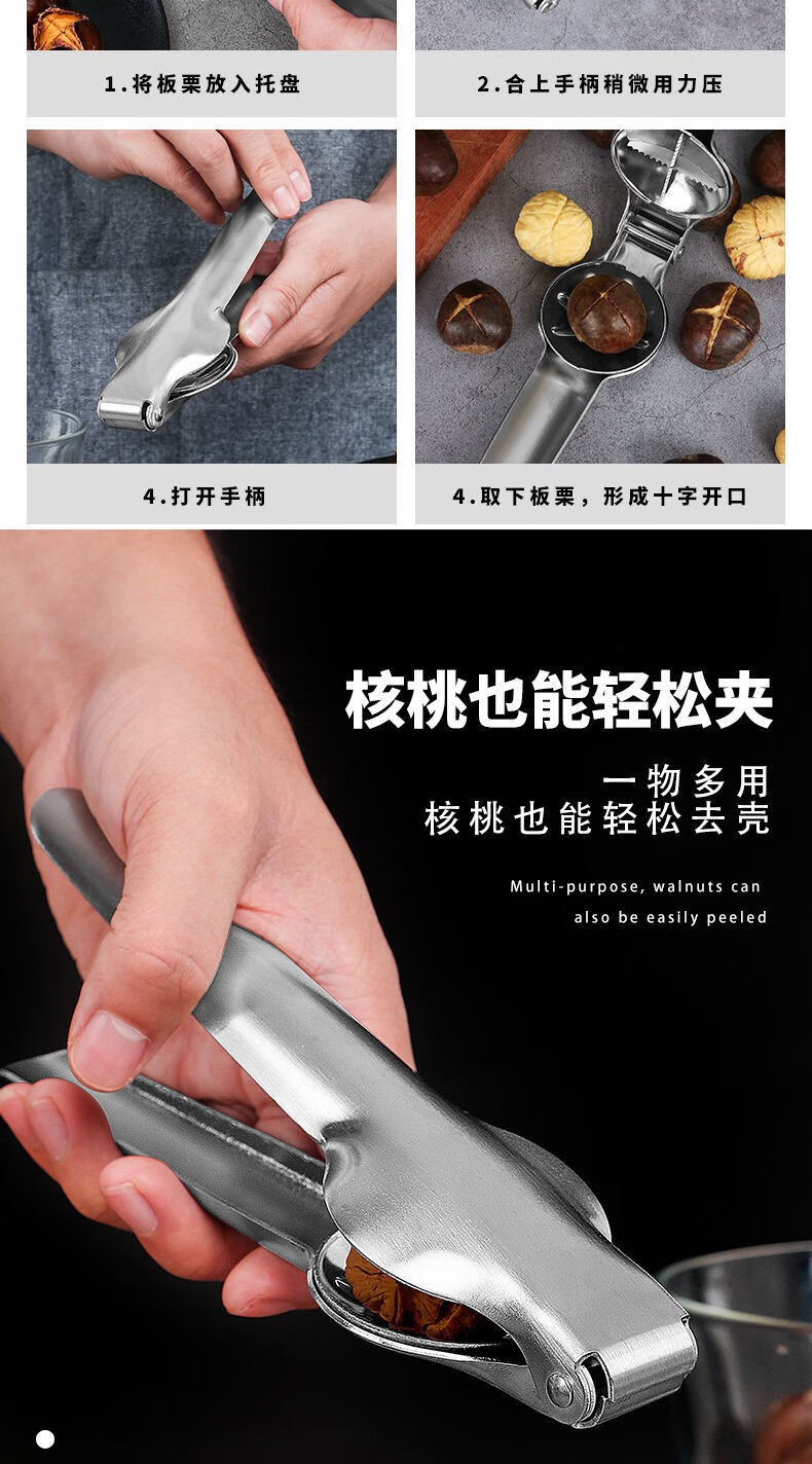 He Jiagong thickened 304 stainless steel chestnut opener to open chestnut shelling tool walnut shelling machine store manager 304-chestnut clip extra thick quality upgrade