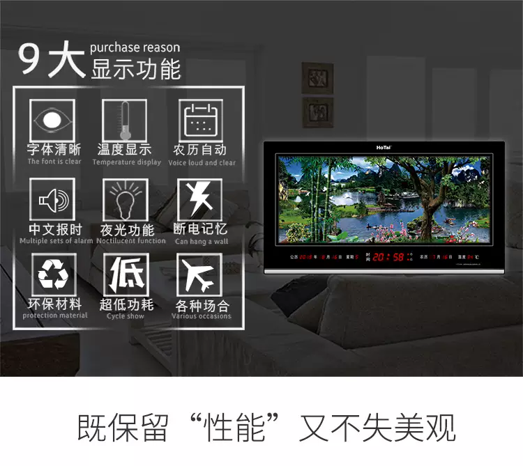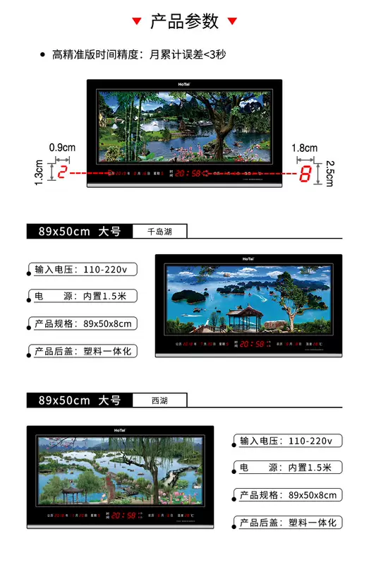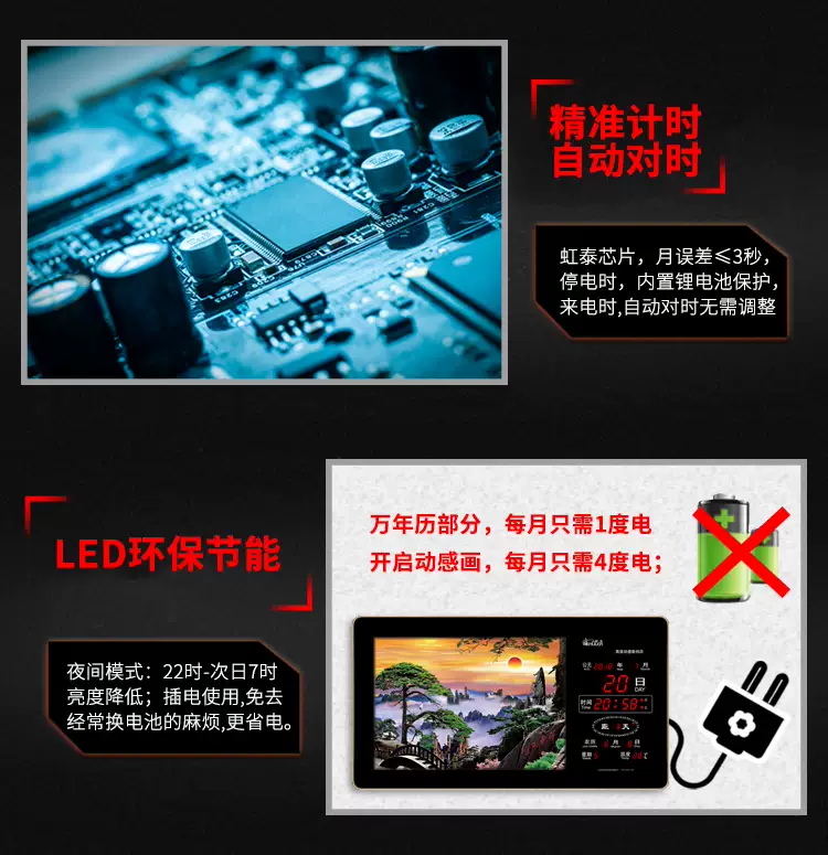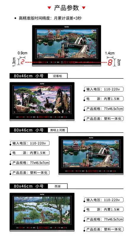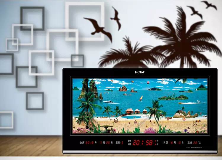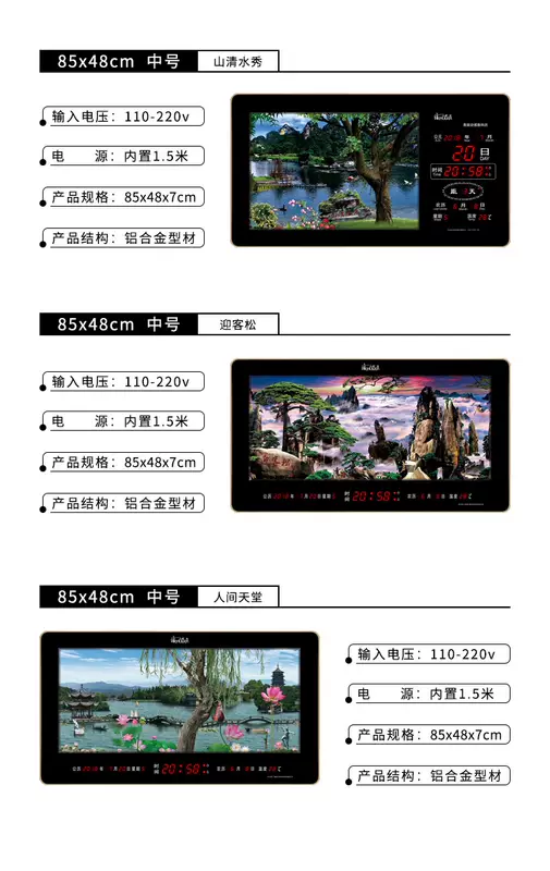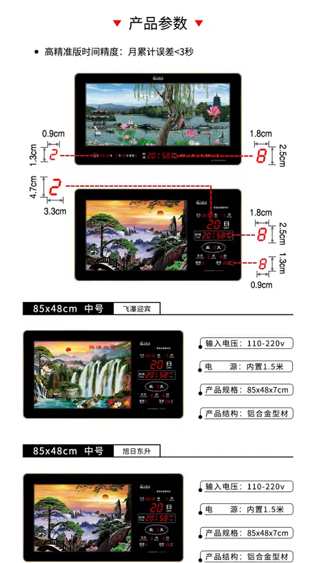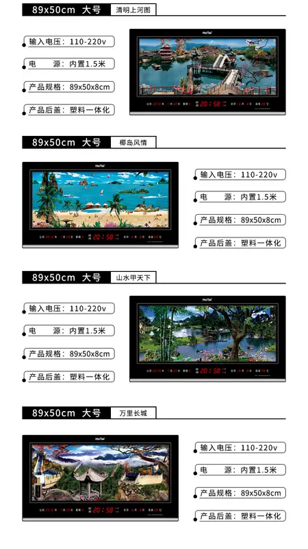 Yusen Yi Hongtai digital dynamic landscape painting electronic clock perpetual calendar LED dynamic landscape painting living room luminous clock wall clock 5089 landscape world-class dynamic three-dimensional landscape painting 50X89cm double layer rotation
