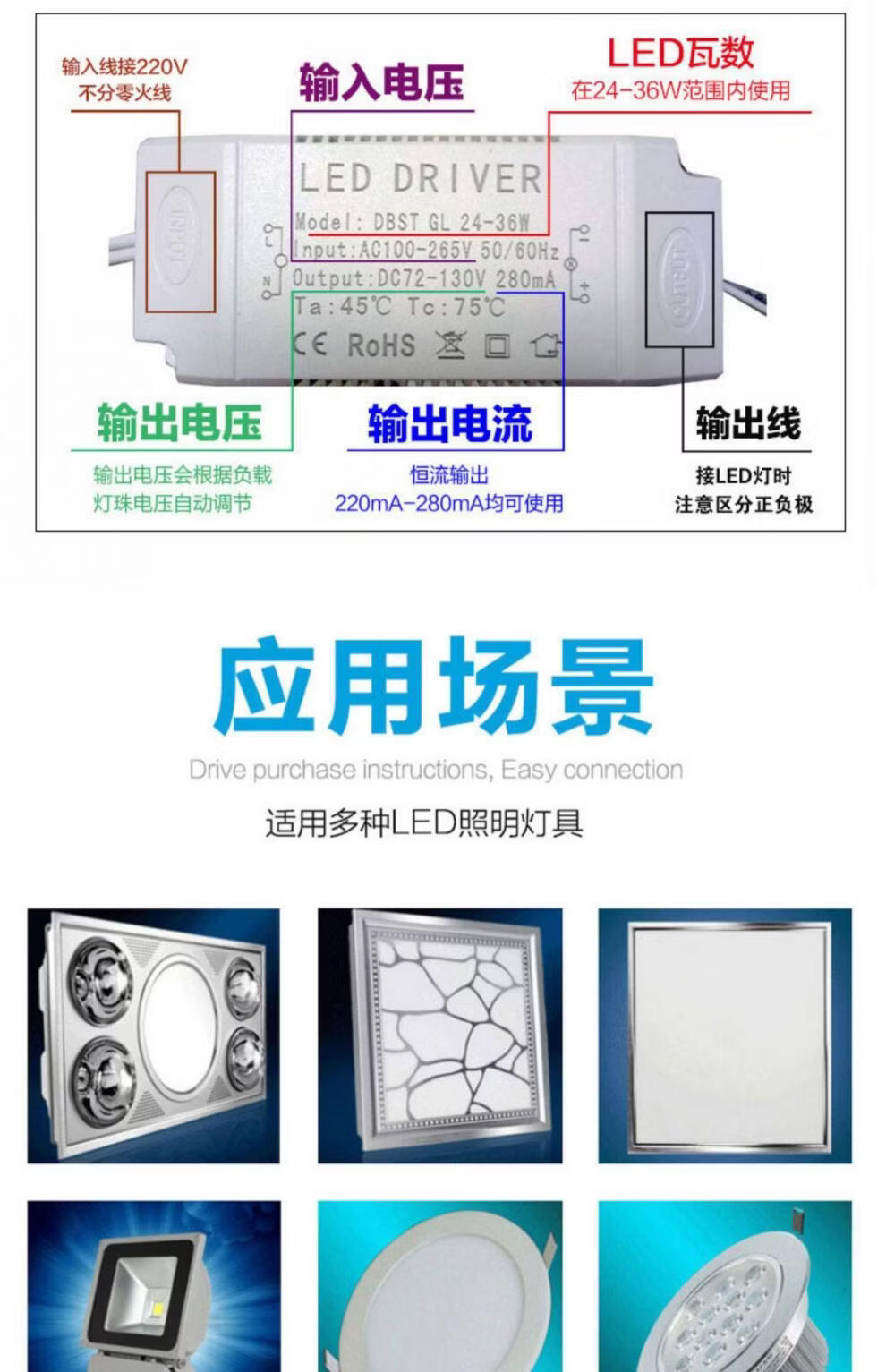 LED ballast driver constant current drive flat ceiling downlight spotlight starting transformer power isolation model 4-7W male plug