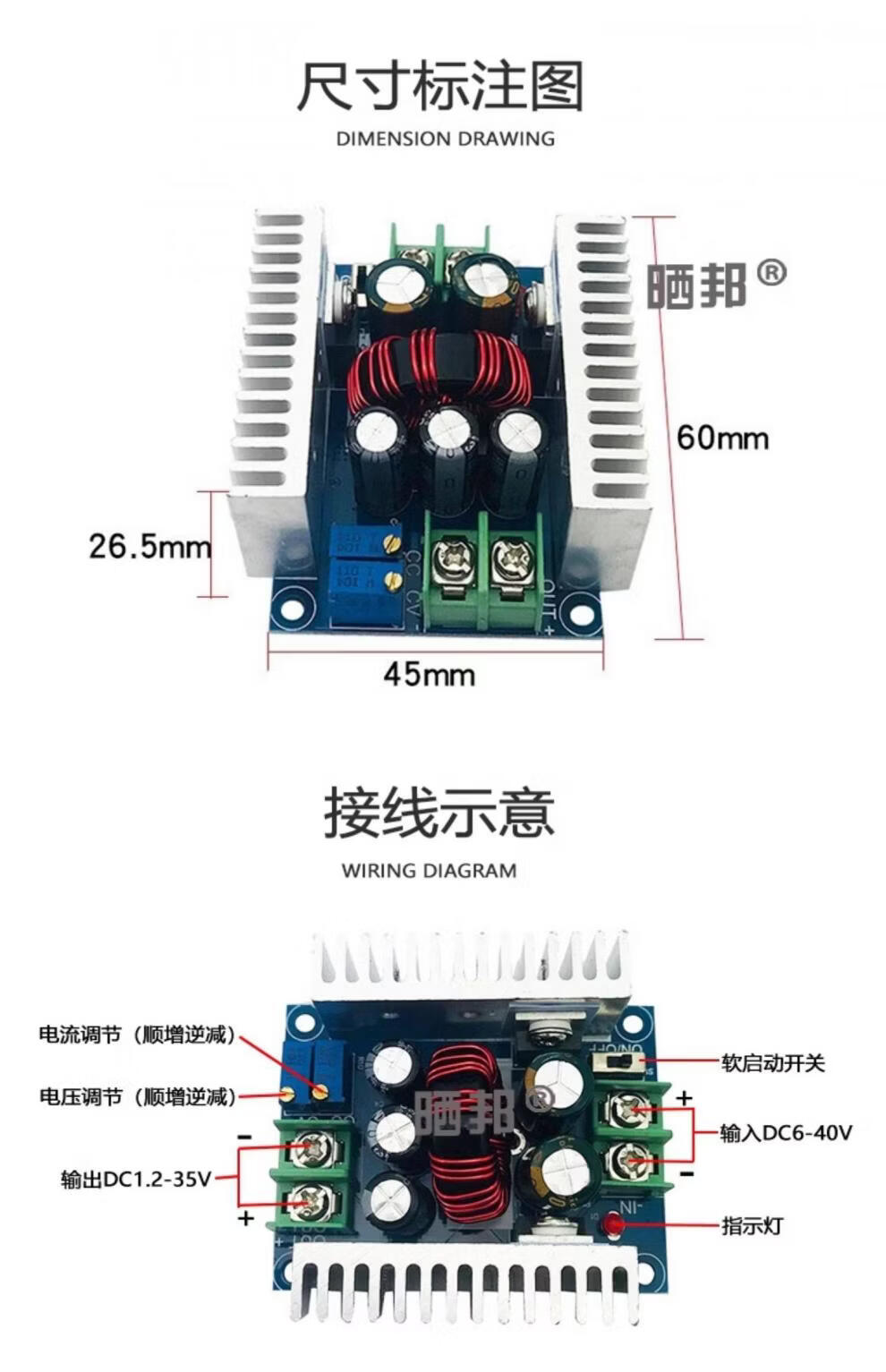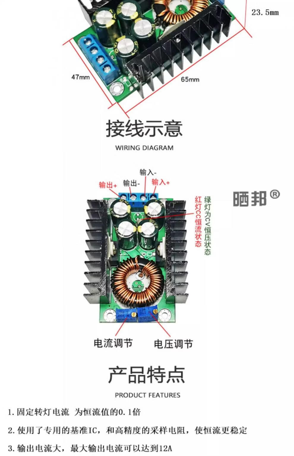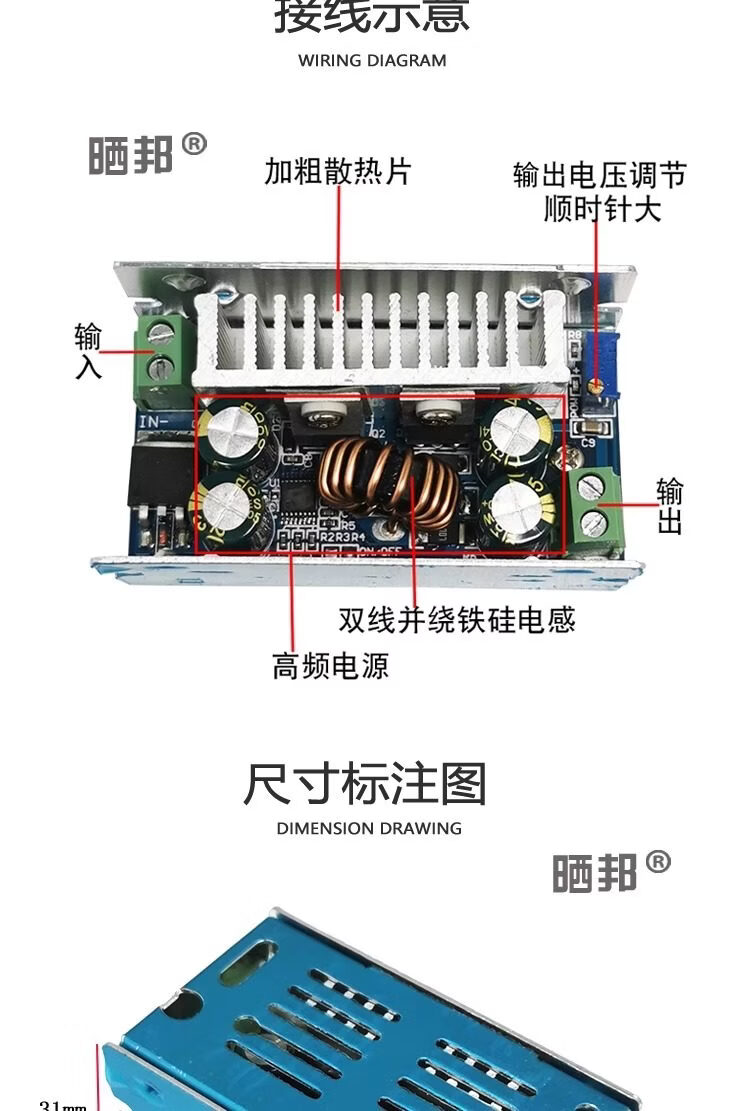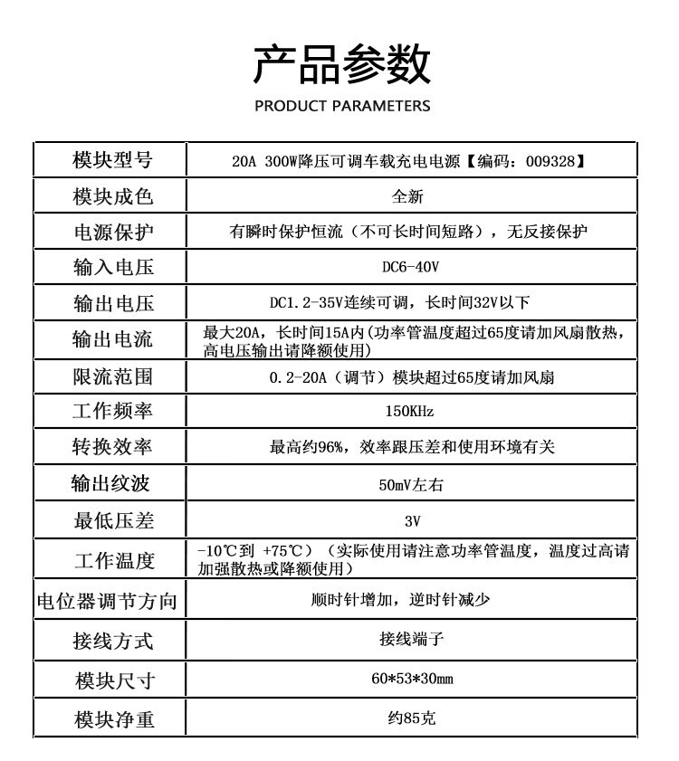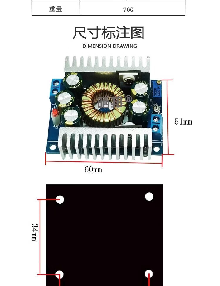 DC-DC step-down module 20A300W high power constant voltage constant current adjustable power supply charging module LED driver board 4-35V to 1.25-30V_3A_10W