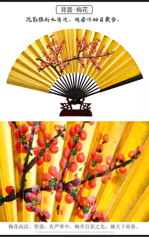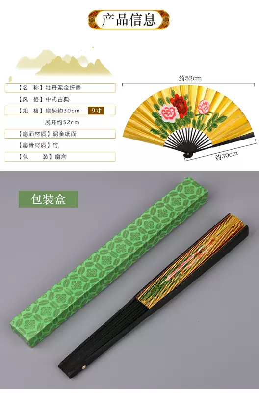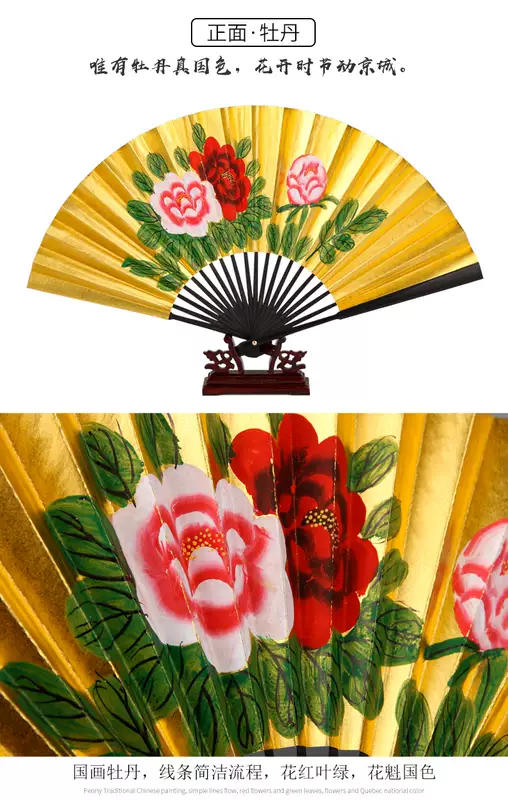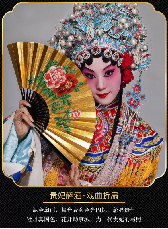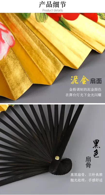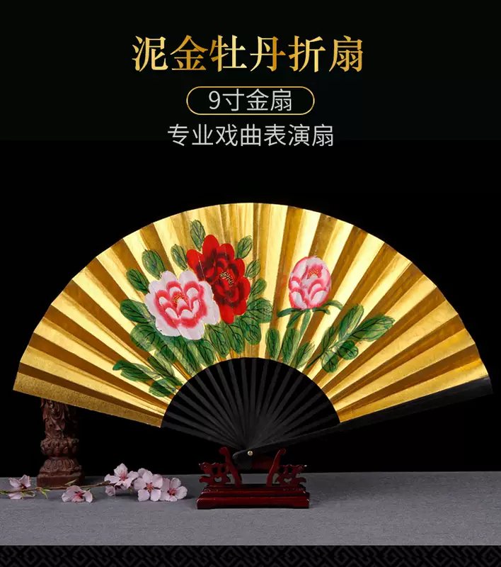 Yusenyi Fan Women's Retro Style Classical Peking Opera Opera Drunk Peony Gold Fan 9-inch Performance Dancing Fan 9-inch 30 Square Rice Paper Golden Peony Dancing Fan