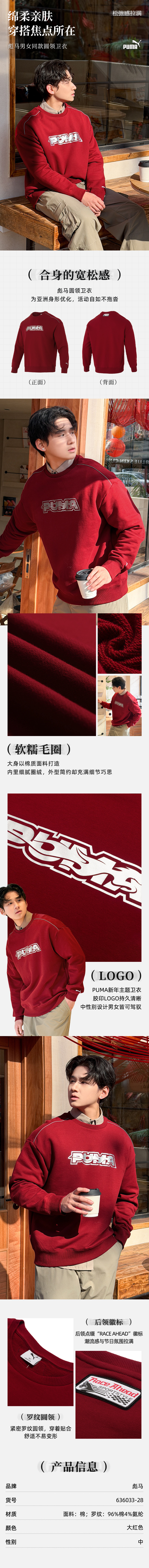 PUMA Men's and Women's 2026 Year of the Horse New Year Loose Round Neck Knitted Sweatshirt Fitness Running Fashion Pullover 636033-01 XS