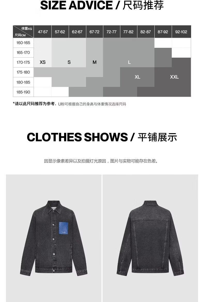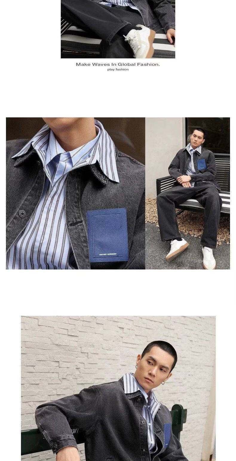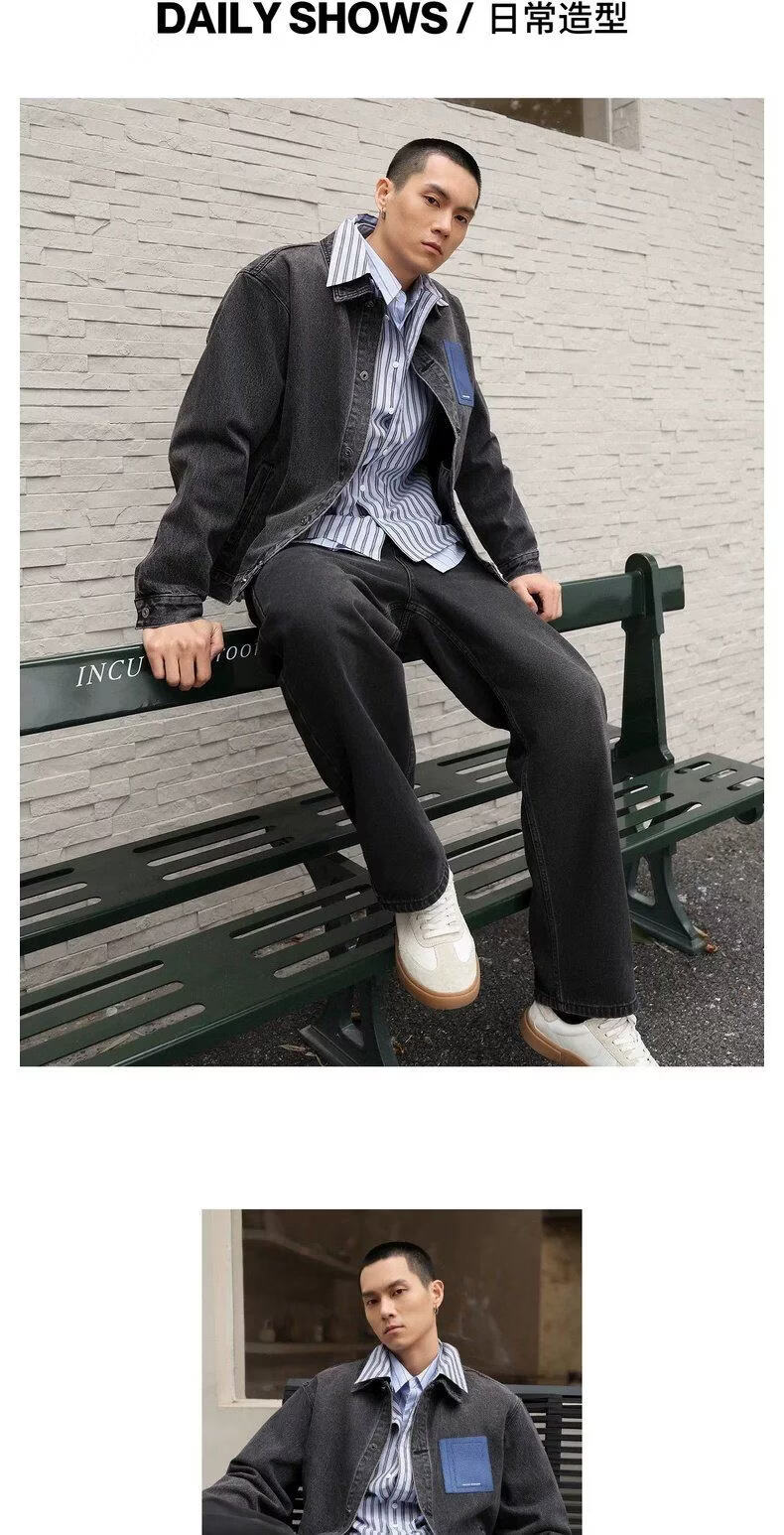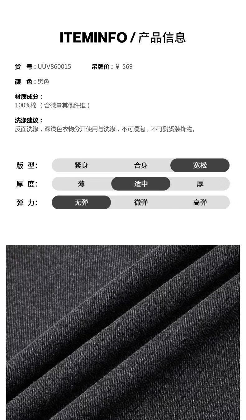 UR2026 Spring New Men's Trendy Contrast Color Splicing Patch Pocket Cotton Denim Jacket UUV860015 Black XS