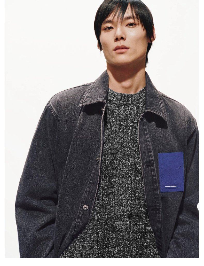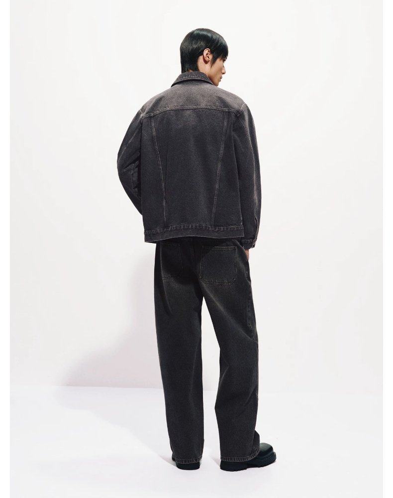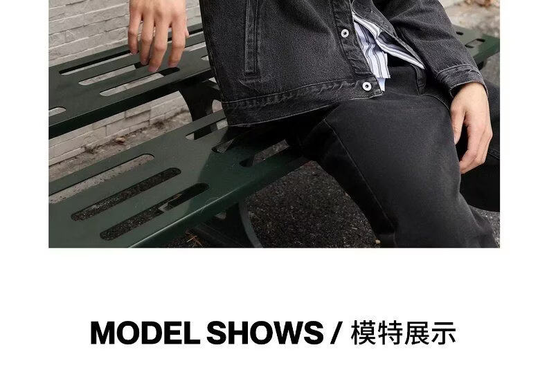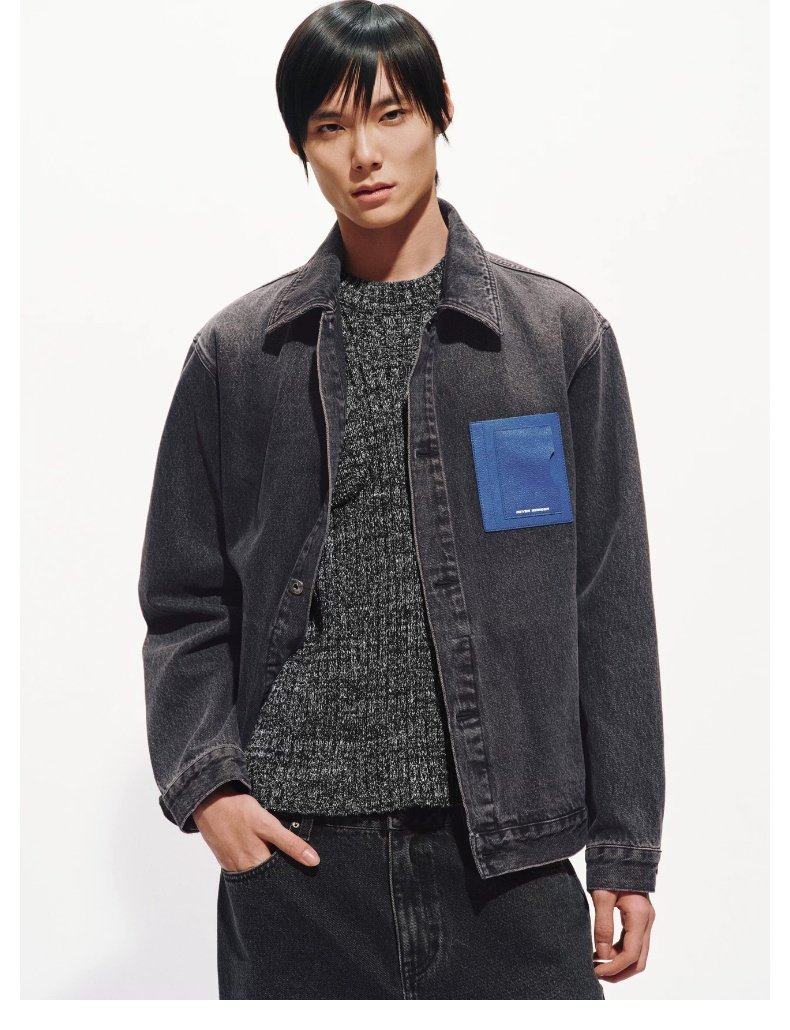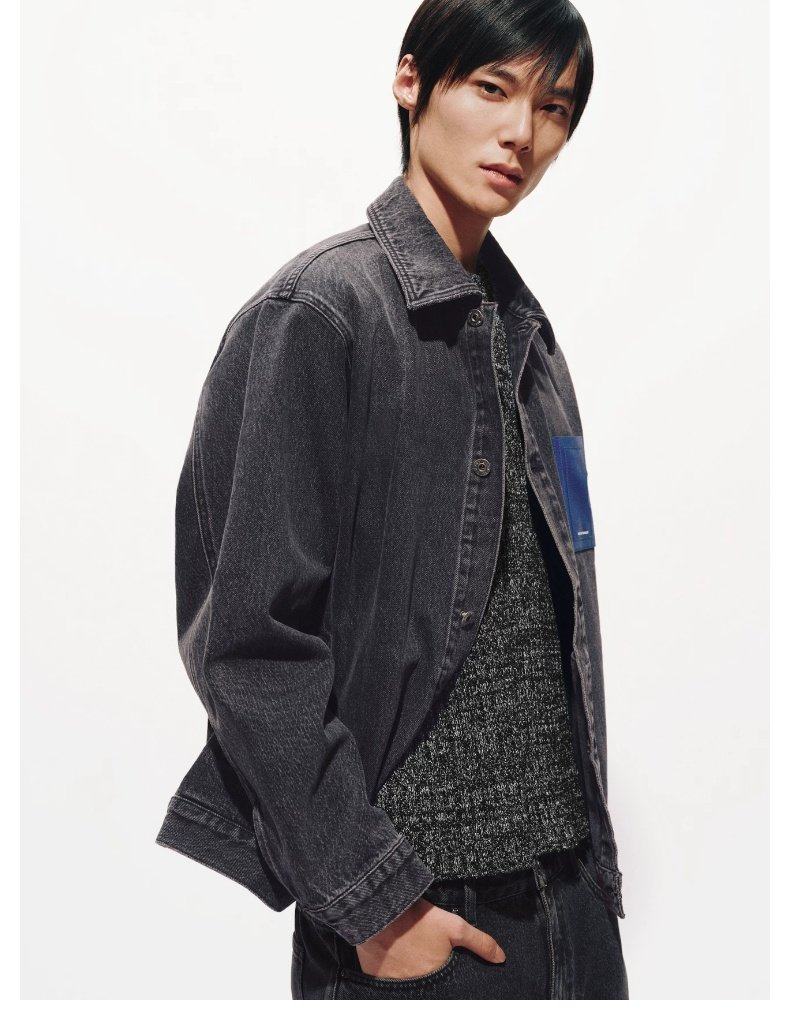 UR2026 Spring New Men's Trendy Contrast Color Splicing Patch Pocket Cotton Denim Jacket UUV860015 Black XS
