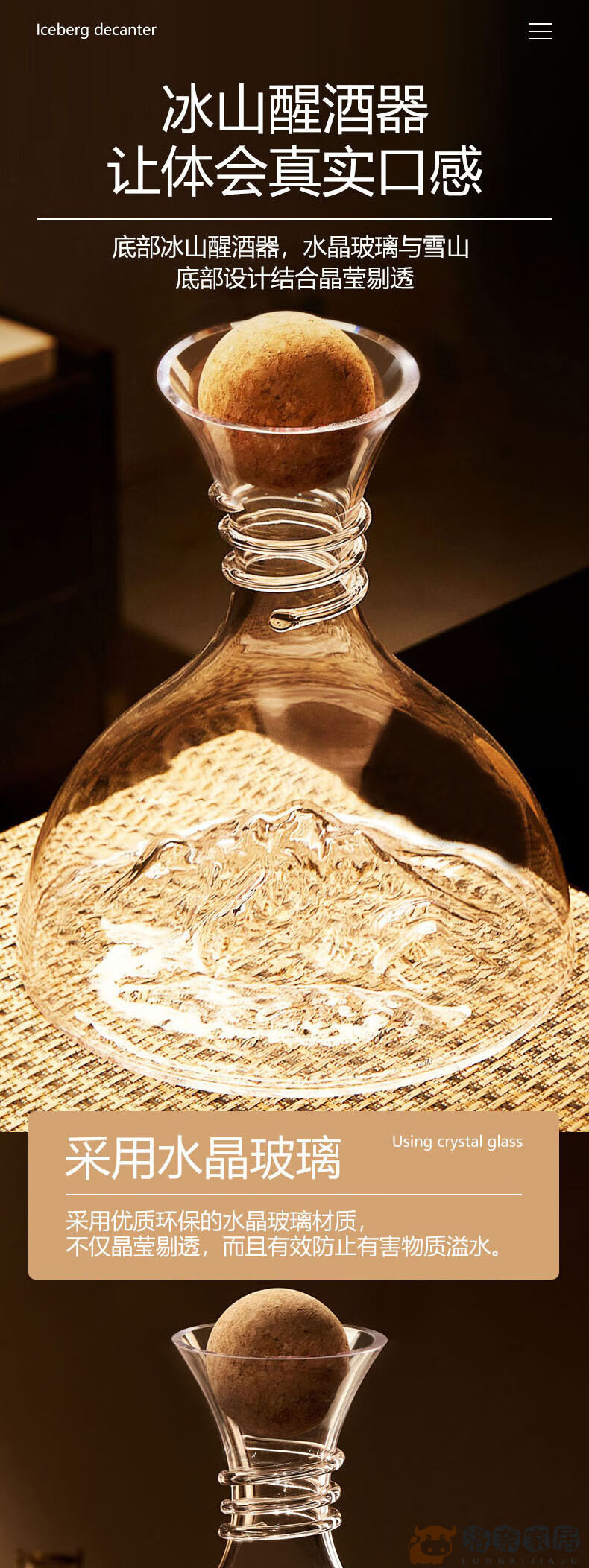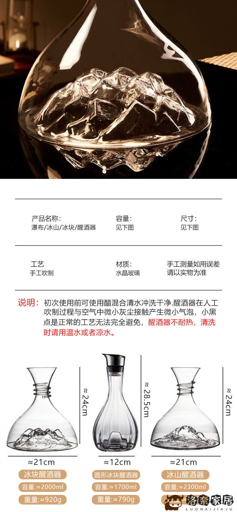 OIMG high-end light luxury red wine decanter high-end Lapunes crystal glass fast red wine decanter set iceberg decanter