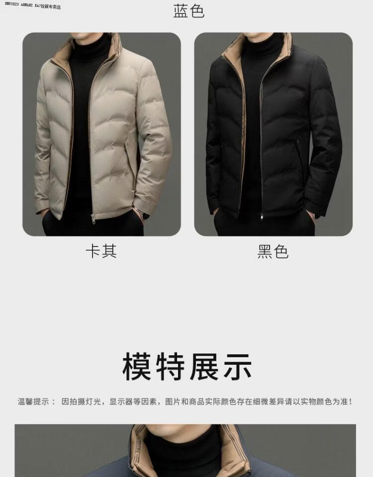 Emporio Armani EA7阿玛尼冬季休闲轻薄款羽绒服男立领加厚保暖外套潮流韩版男装鸭绒 黑色 M 170 适合95-115斤