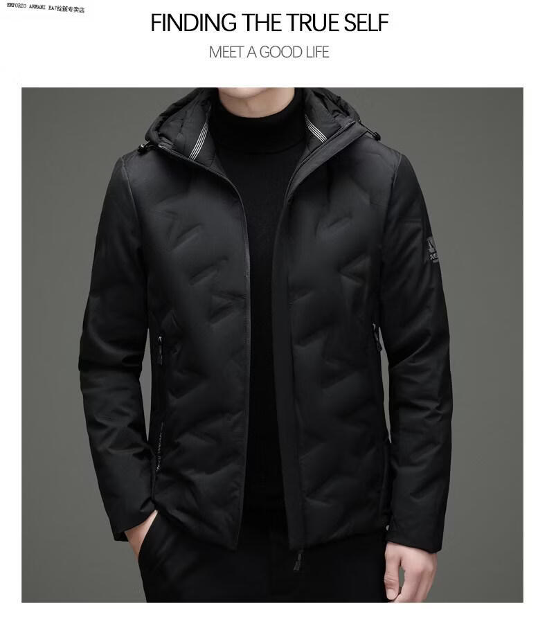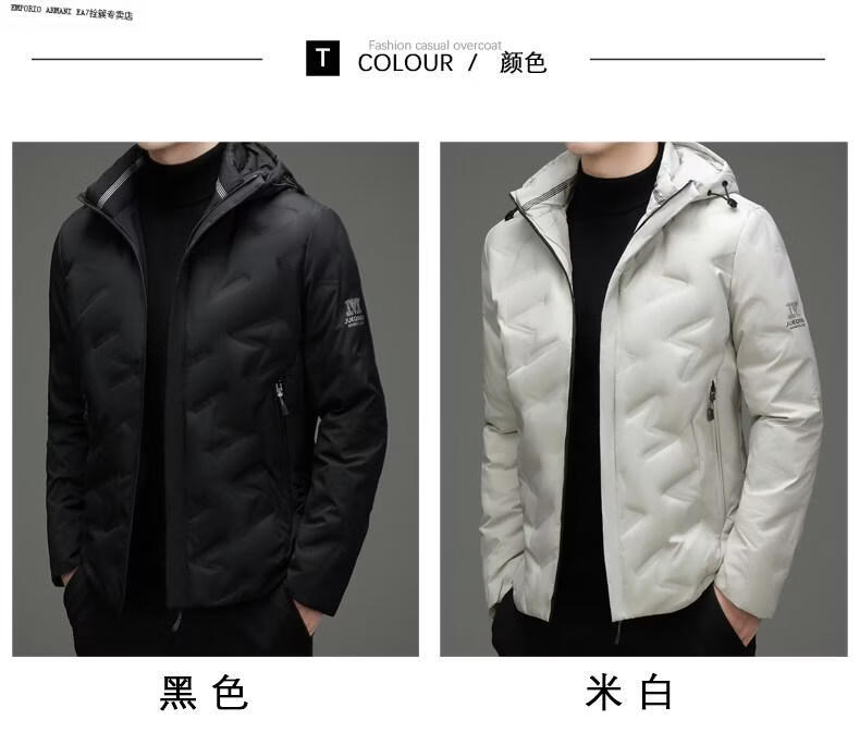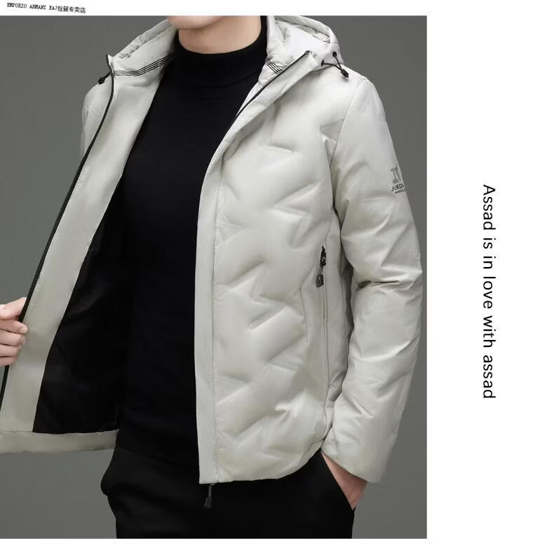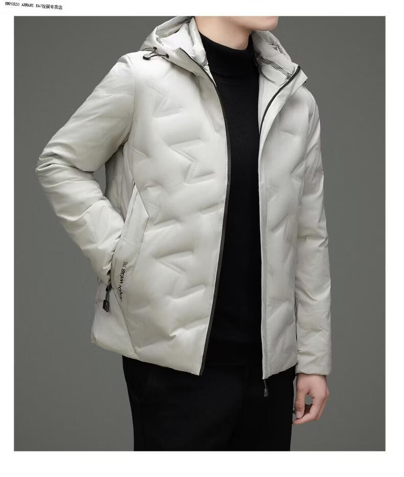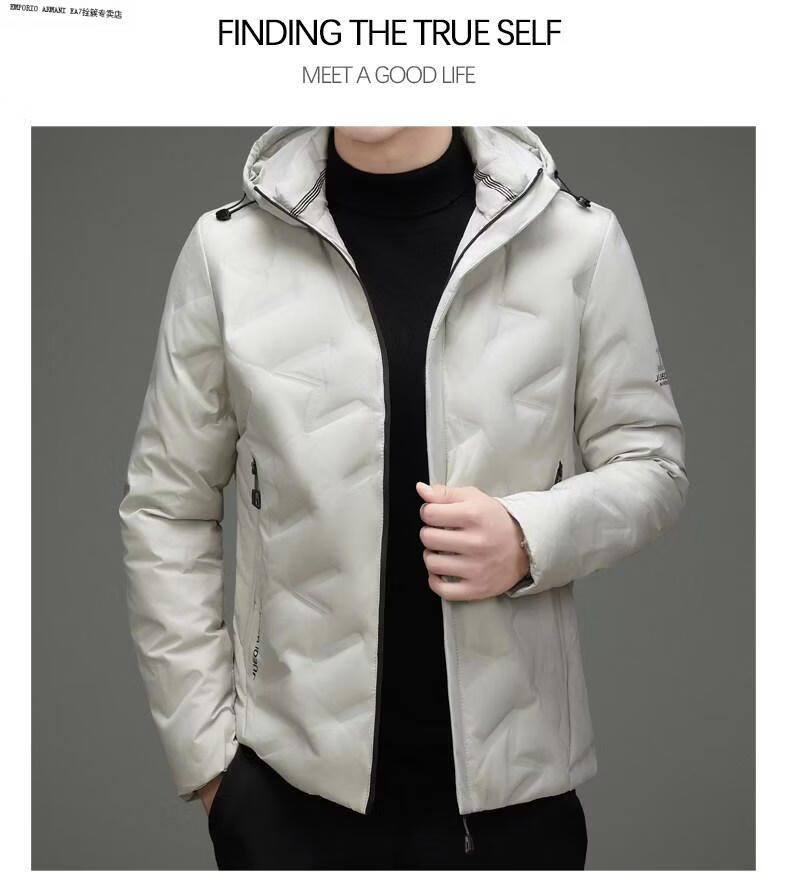 Emporio Armani EA7 Armani Winter Casual Hooded White Duck Down Herren leichte warme Daunenjacke Trendy Korean Herren Loose Beige M Geeignet für 100-120Jin Jin entspricht 0,5 kg