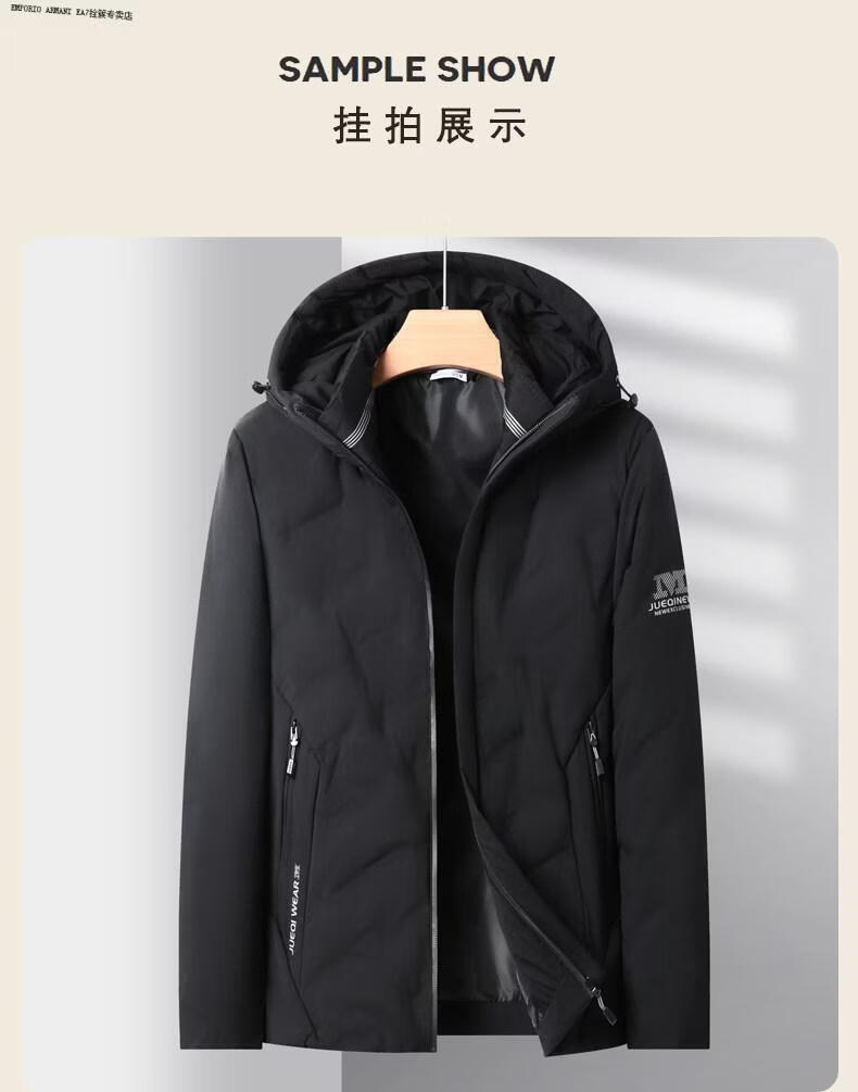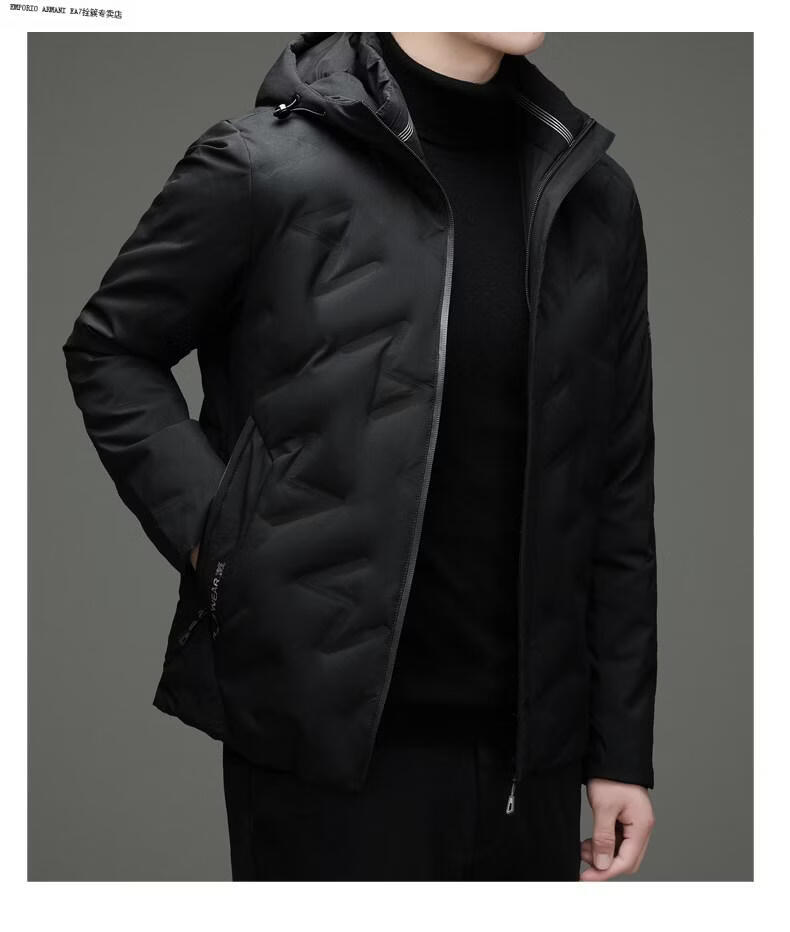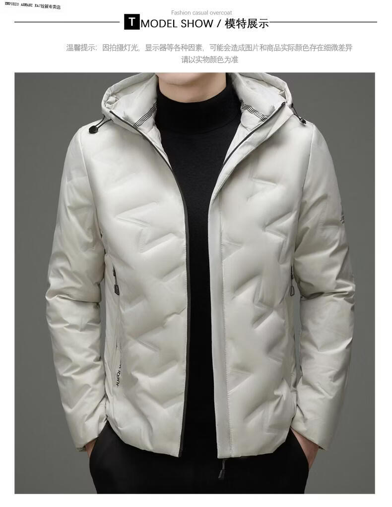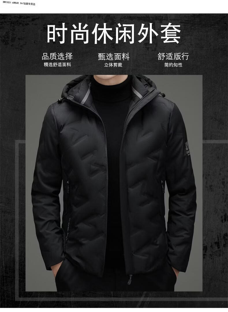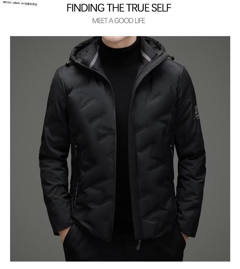 Emporio Armani EA7 Armani Winter Casual Hooded White Duck Down Herren leichte warme Daunenjacke Trendy Korean Herren Loose Beige M Geeignet für 100-120Jin Jin entspricht 0,5 kg