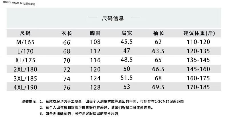 China (cm) 165 / 88-90 170 / 96-98 175 / 108-110 180 / 118-122 185 / 126-130