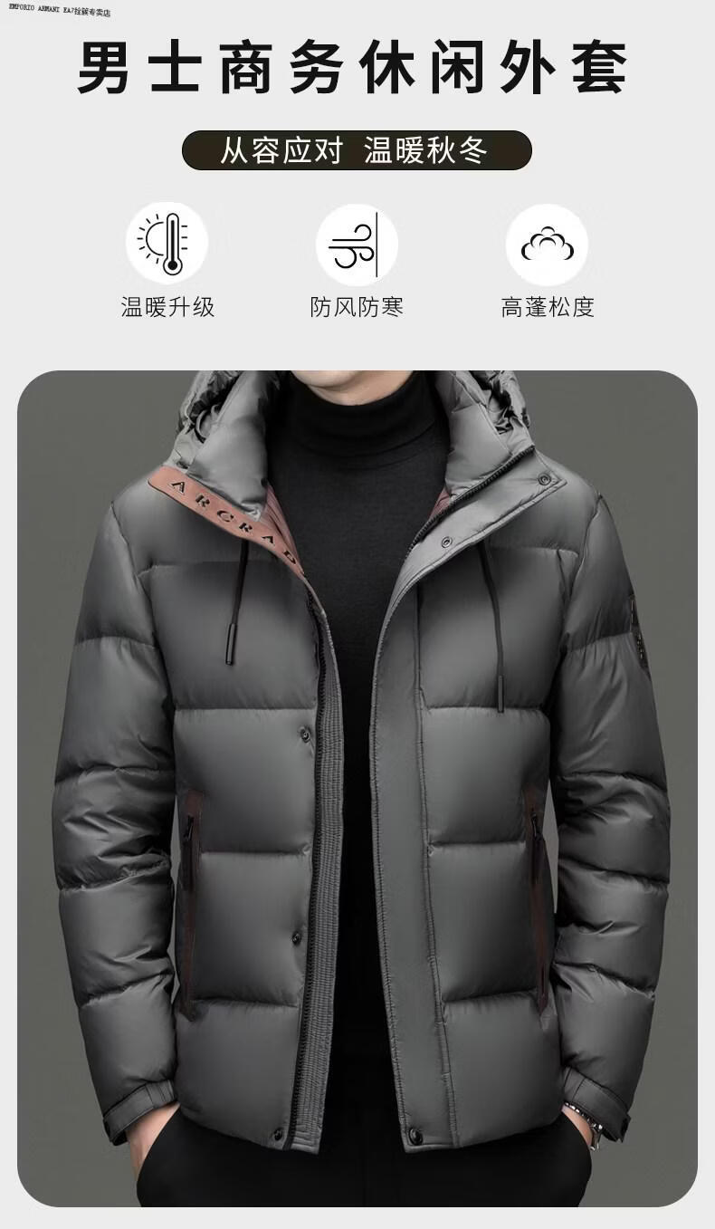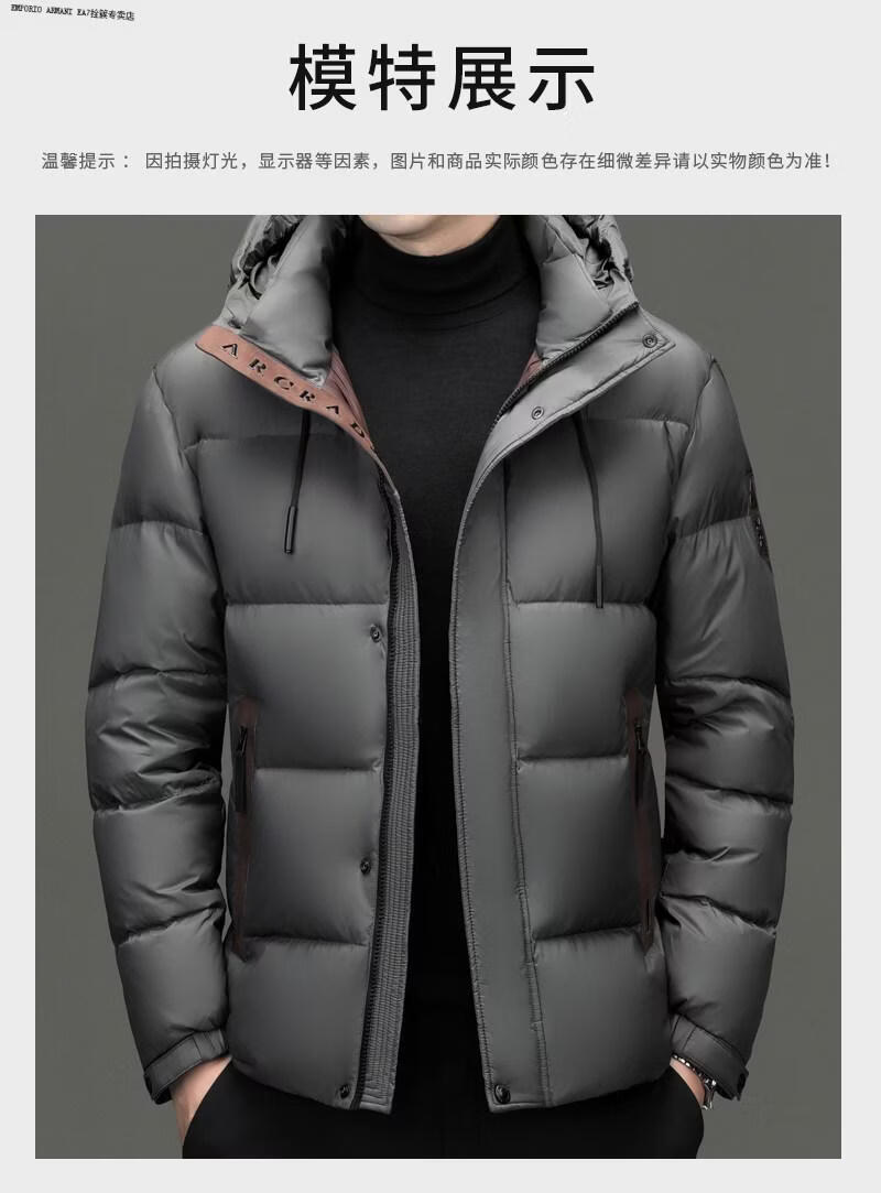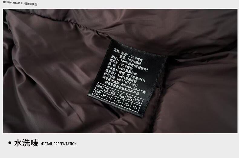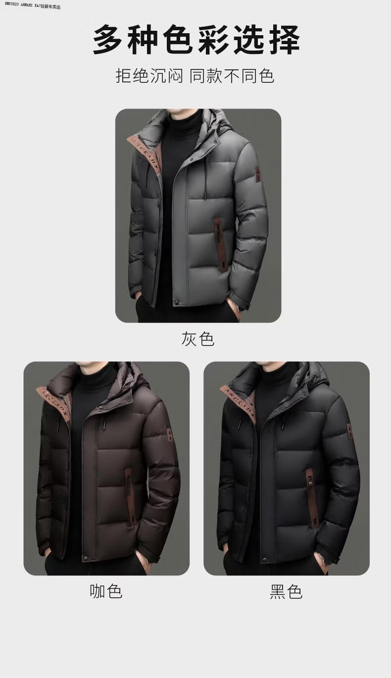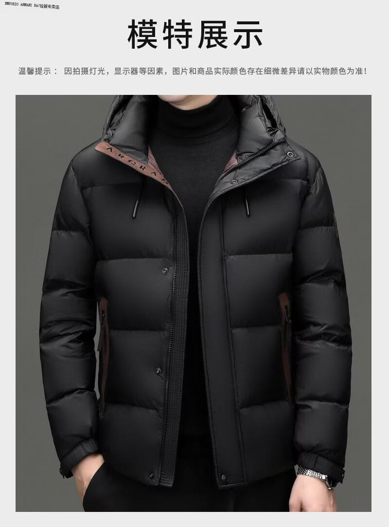 Emporio Armani EA7 Armani winter business casual down jacket men's thickened bread coat warm jacket young and middle-aged men's short duck black M suitable for 100-125Jin Jin equals 0.5 kg