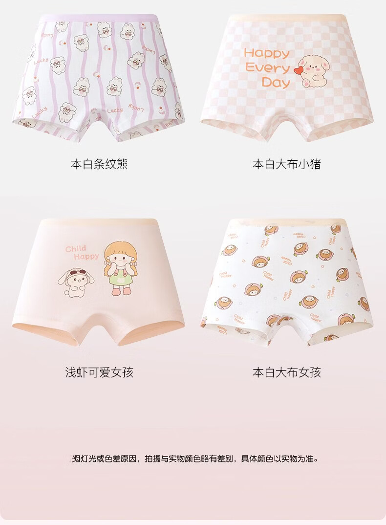 MiiOW girls 10A underwear cotton development period children's boxer briefs for big children and little girls shorts without clip pp light purple girl + striped bear + big cloth girl + big cloth piggy 4 pieces 110 Recommended weight 20Jin Jin is equal to 0.5kg -30Jin Jin is equal to 0.5kg