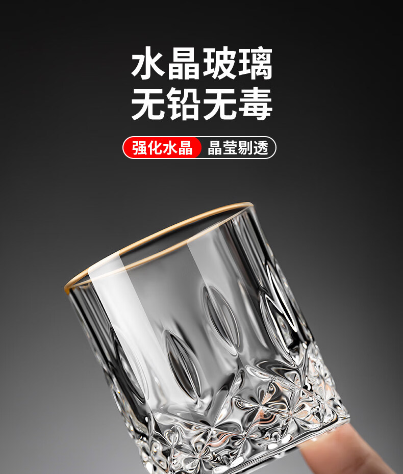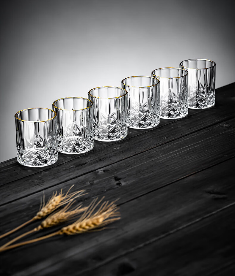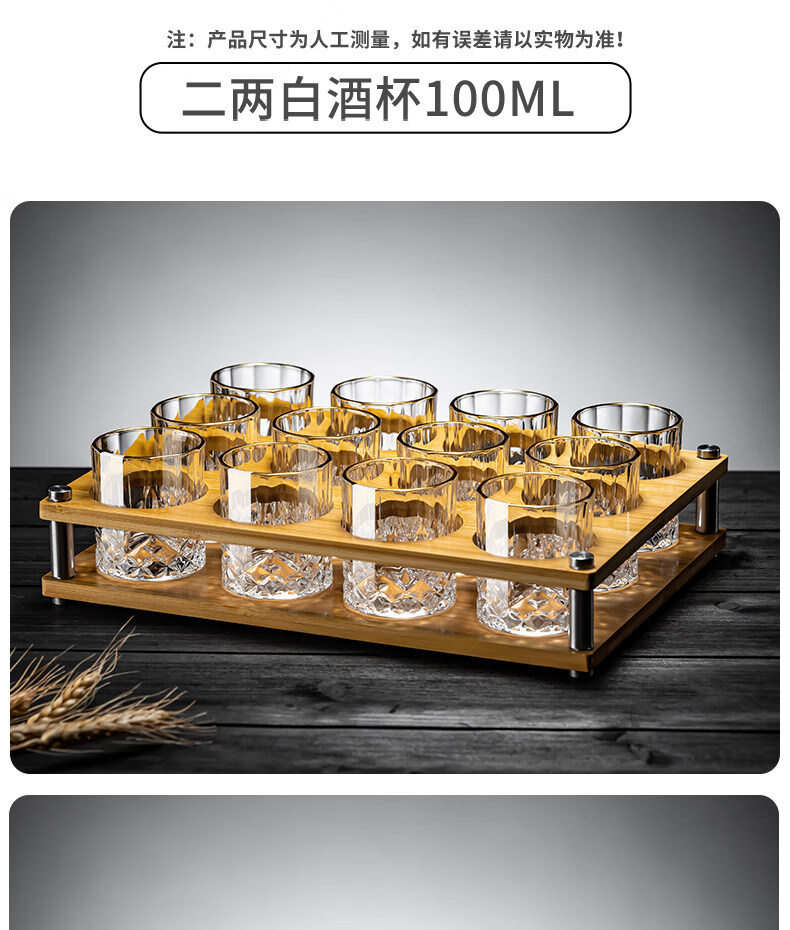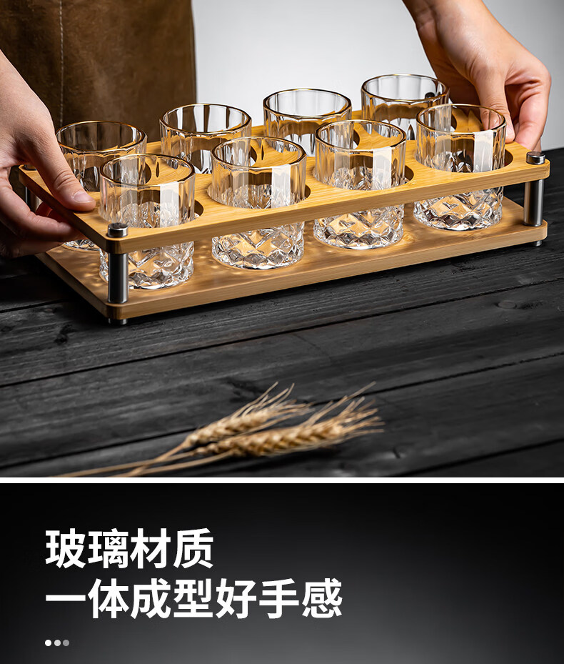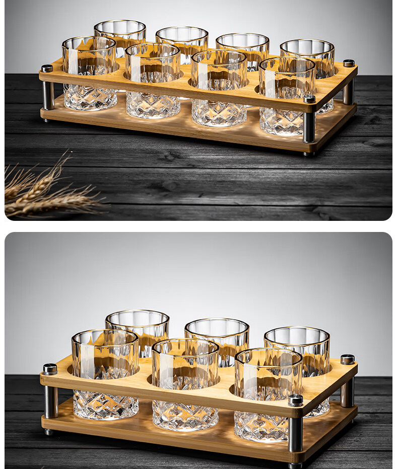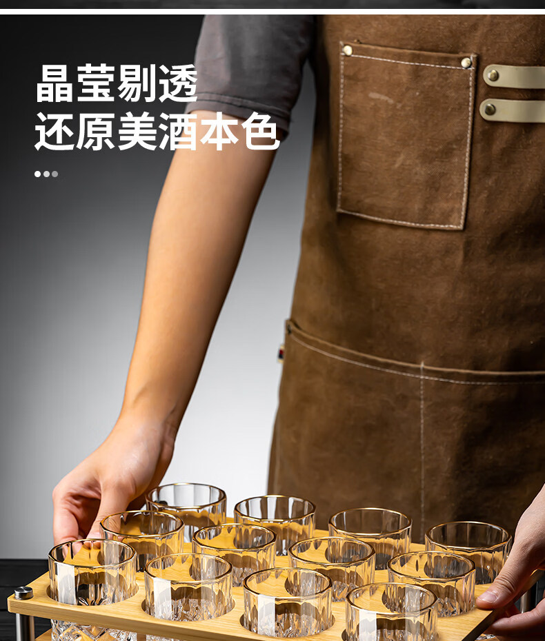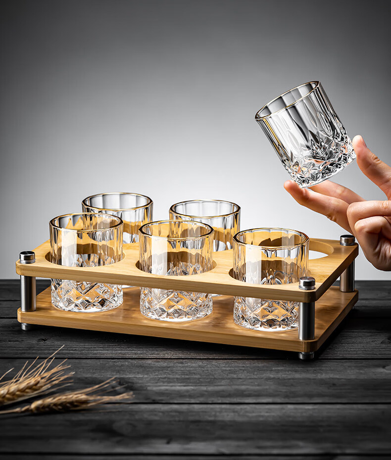 German imported quality mini exquisite two-liang white wine glass home set with high-end sense of two cups, gold-painted 6 cups, 1 rack and 1 pot, mini rain flower cup + thickened bamboo cup holder