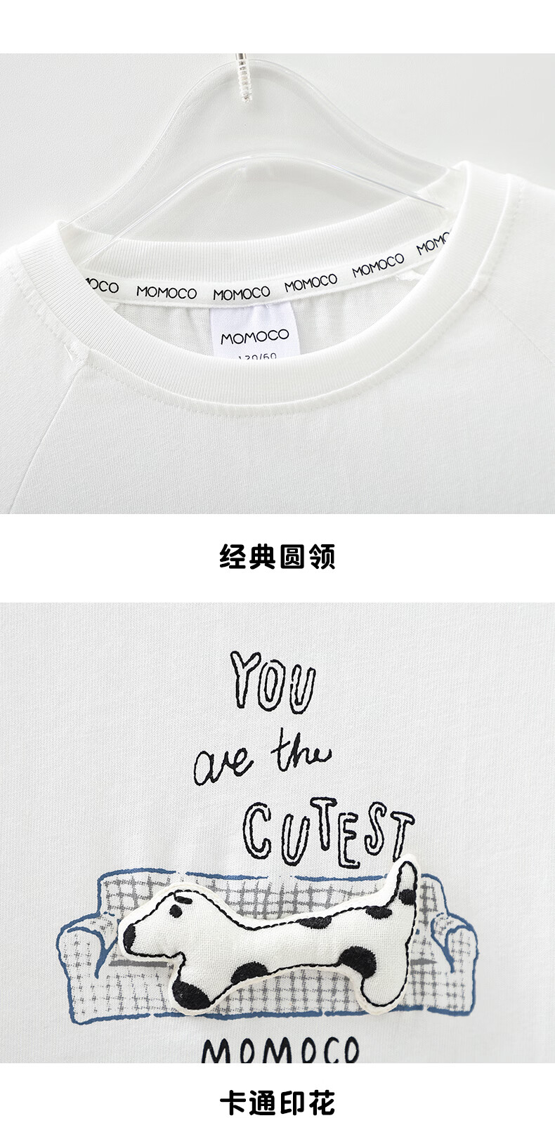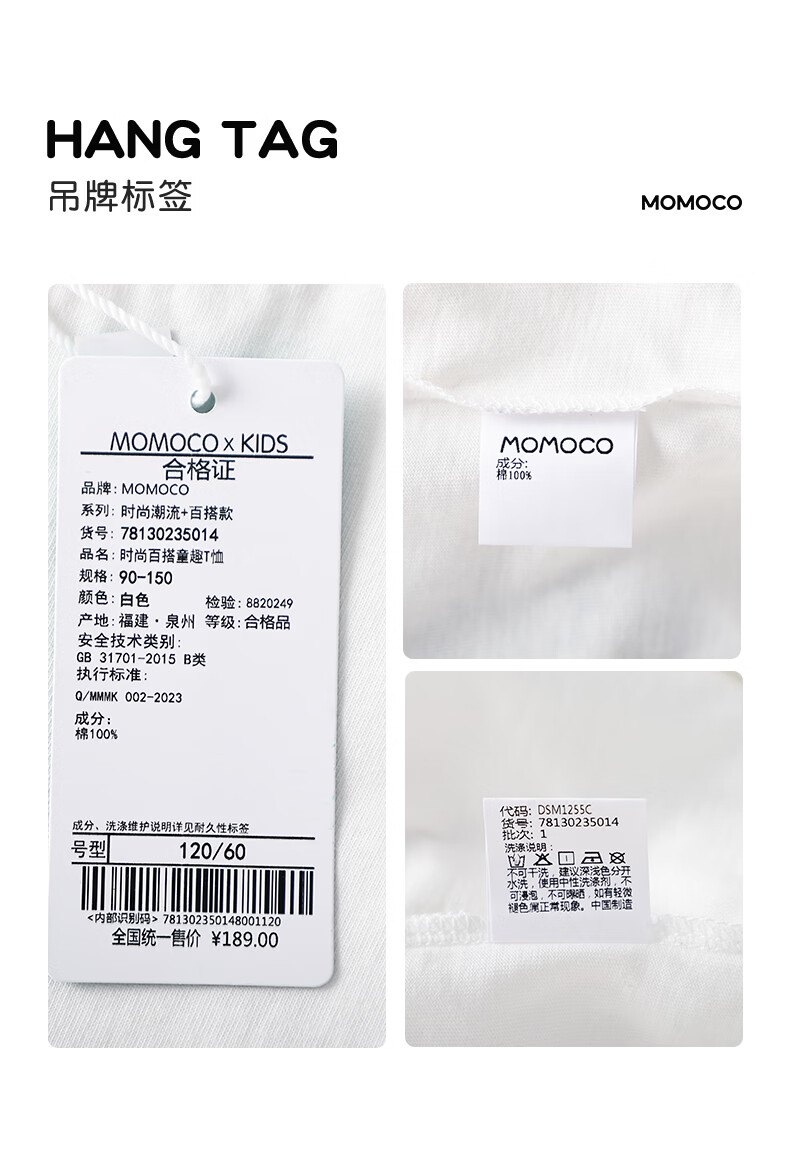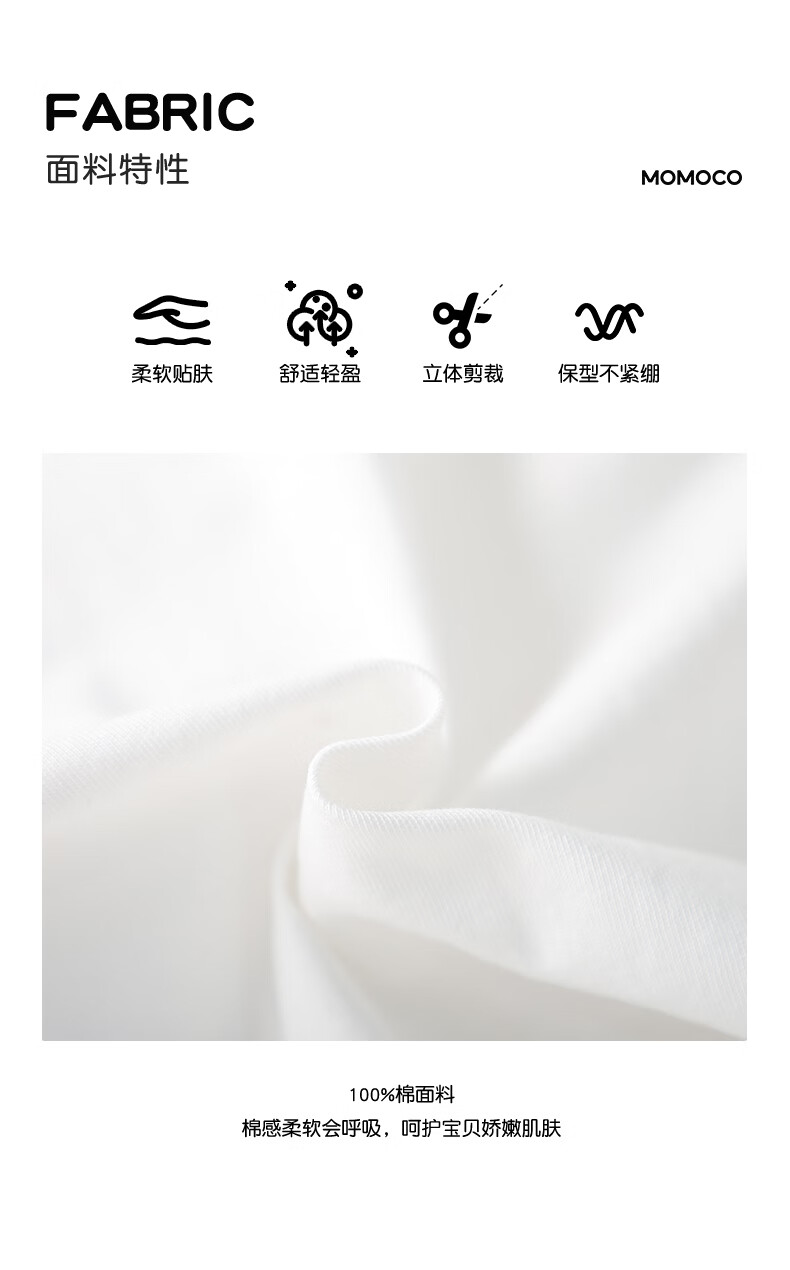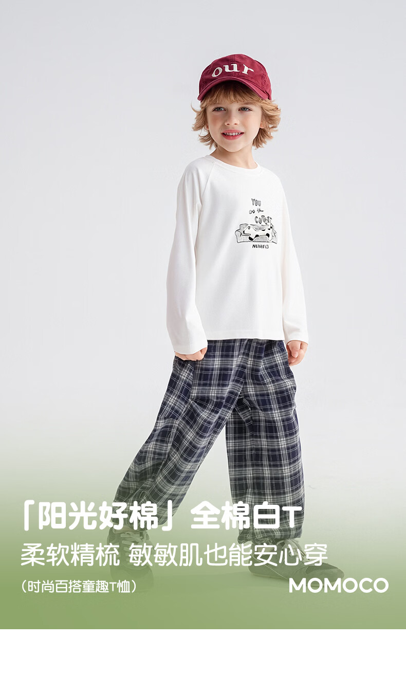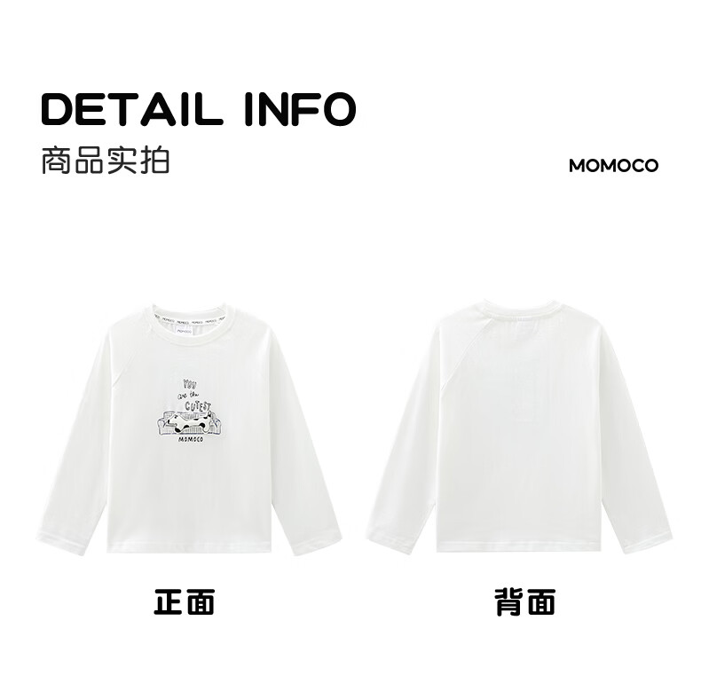 Mami Maka (MOMOCO) children's clothing boys' T-shirt 2026 spring style medium and large children's fashionable and versatile children's fun T-shirt white 90