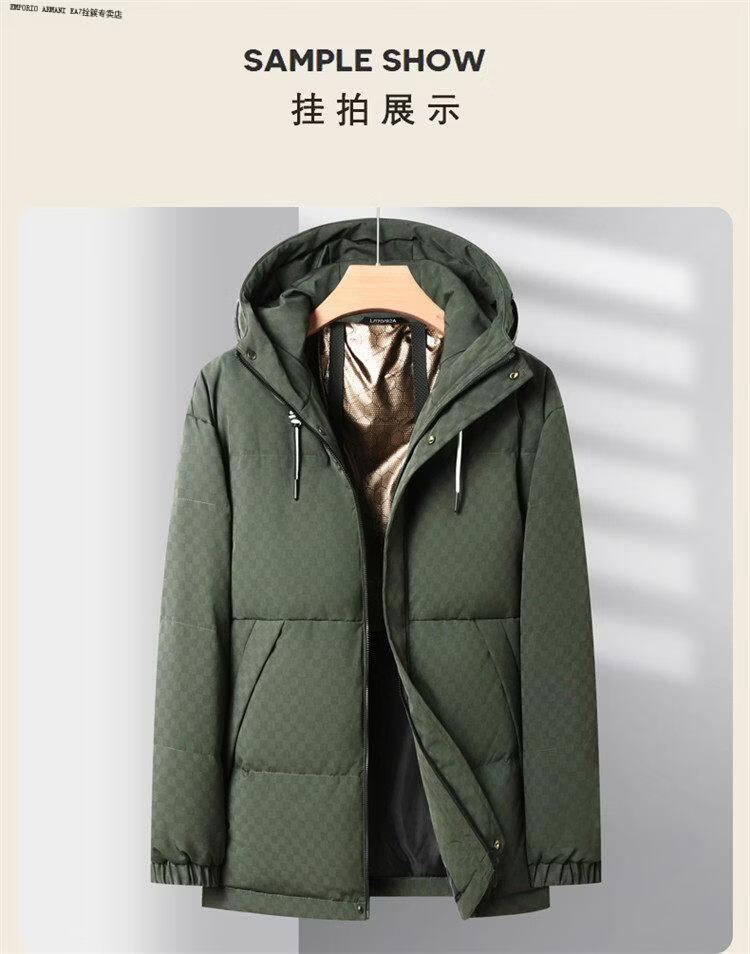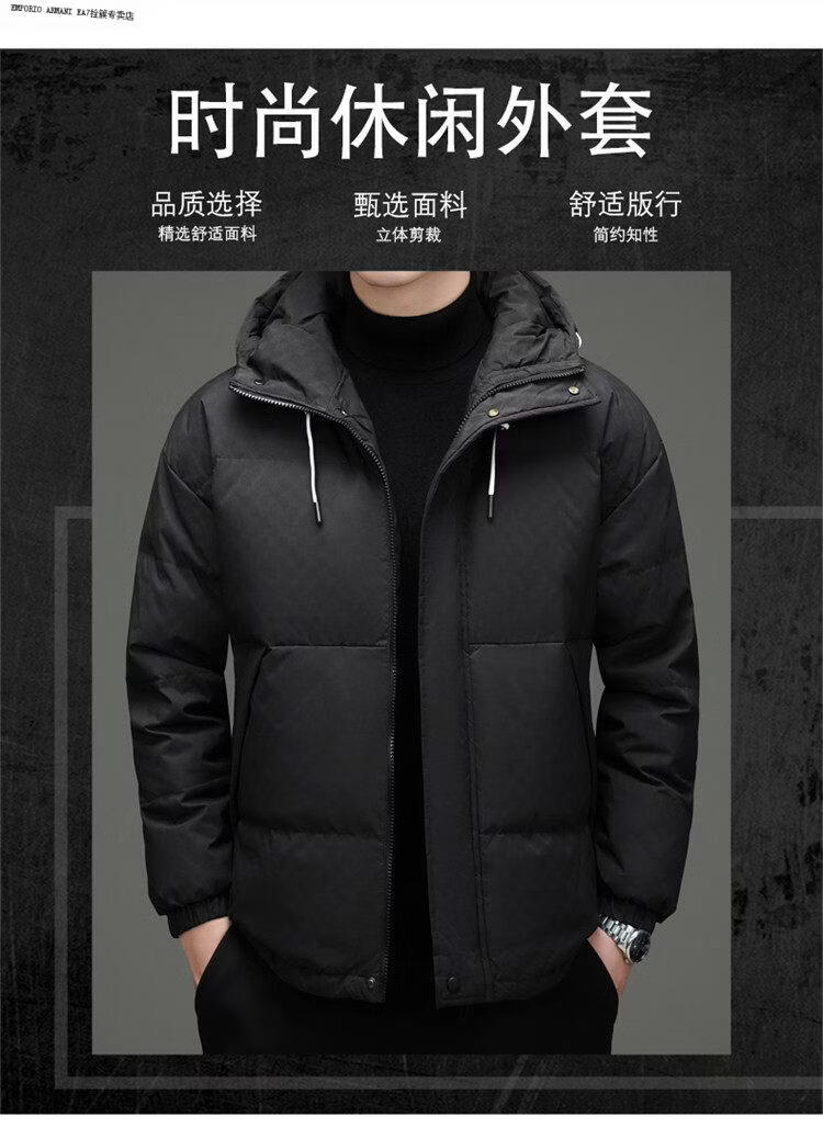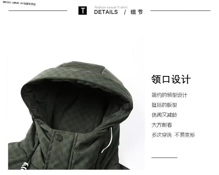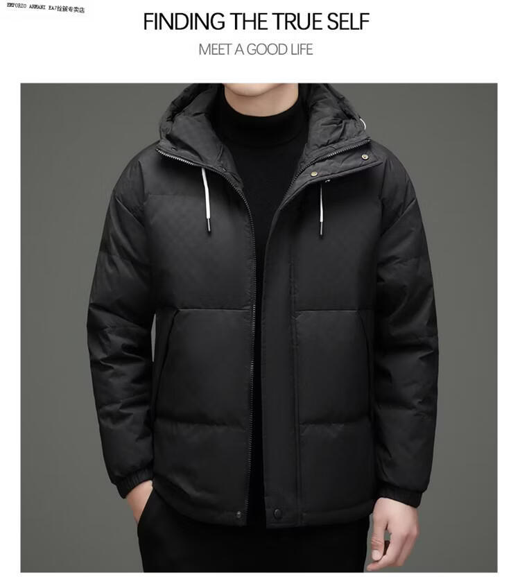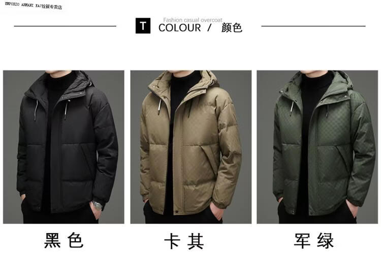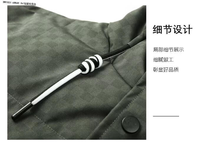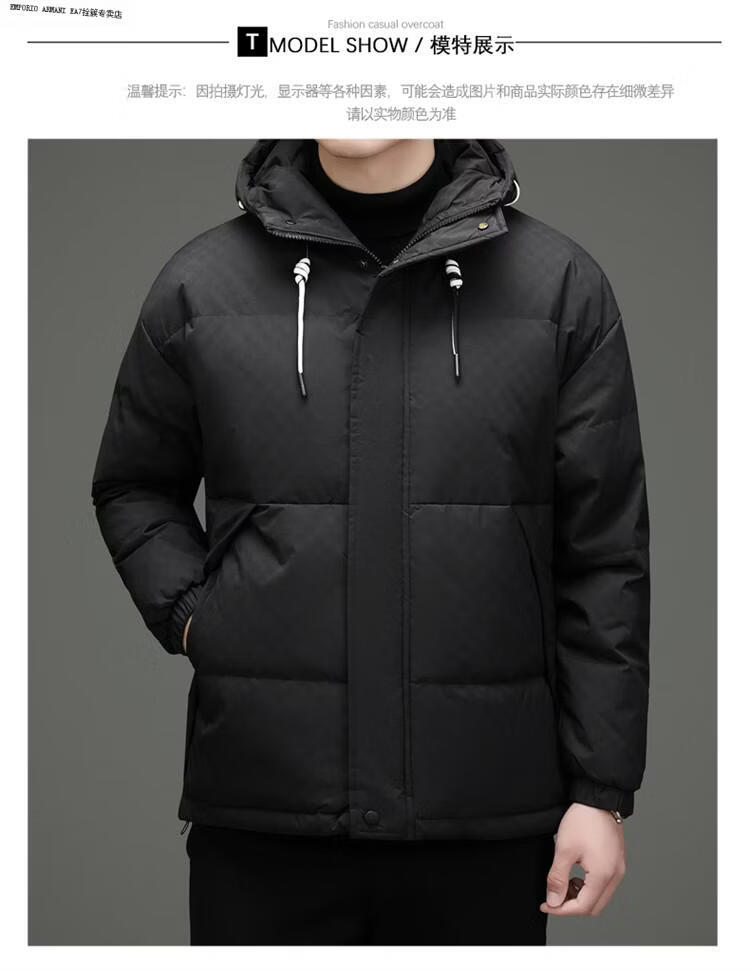 Emporio Armani EA7 Armani 2026 new down jacket men's winter jacket hooded thickened white duck down handsome Korean version trendy brand protection black M