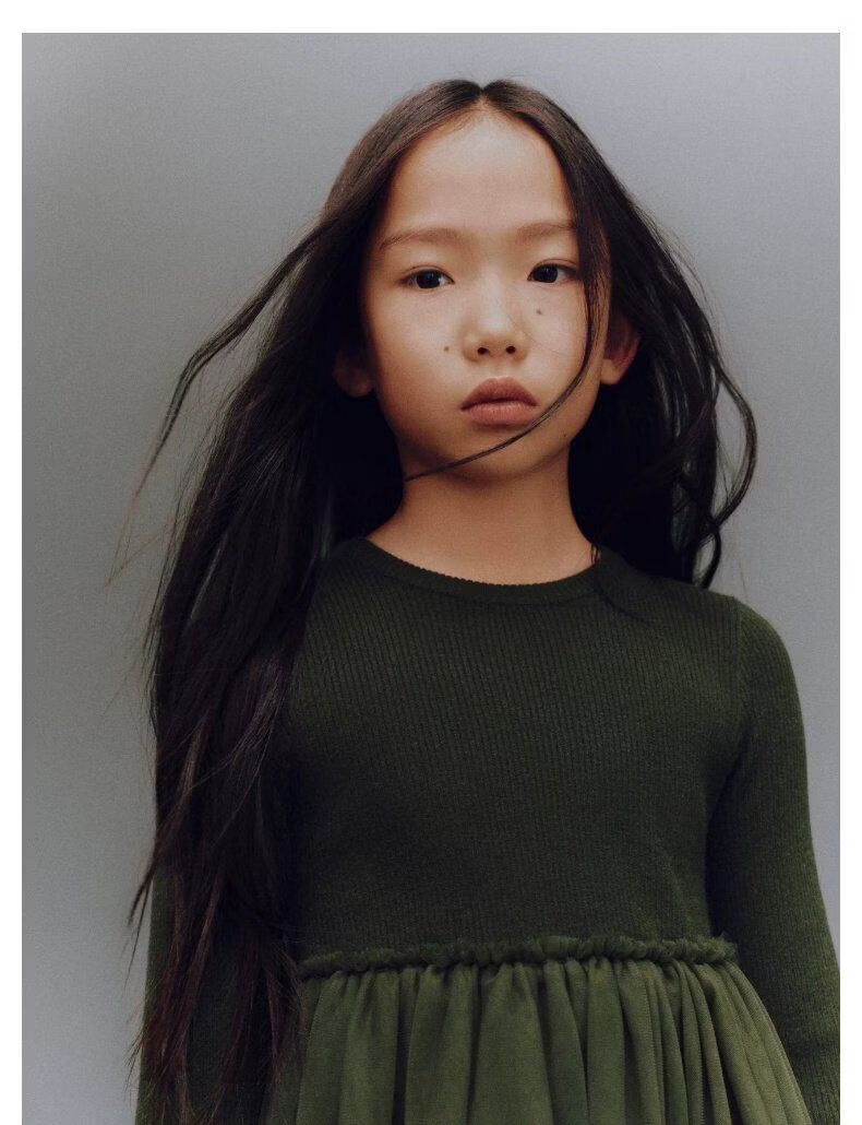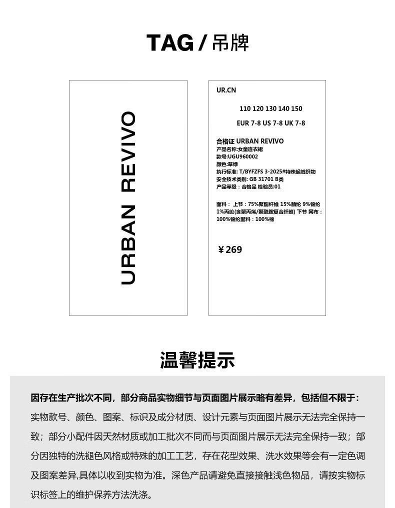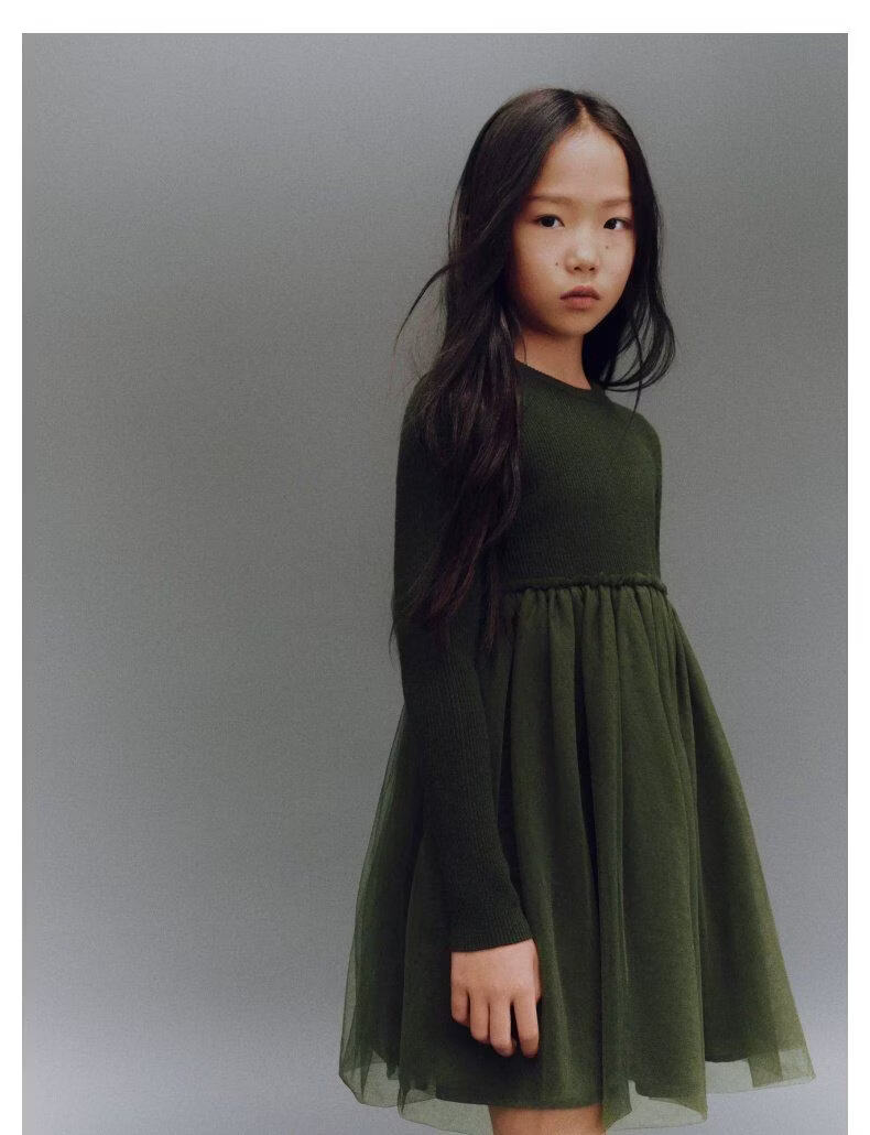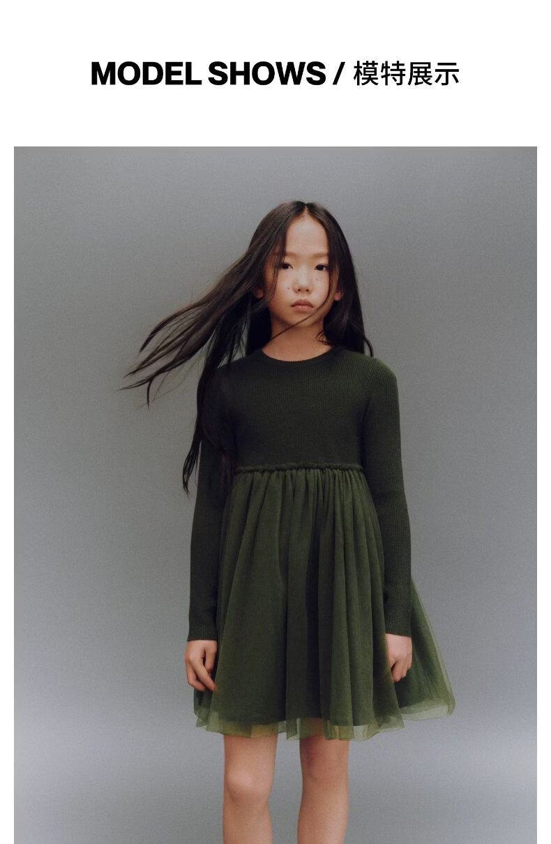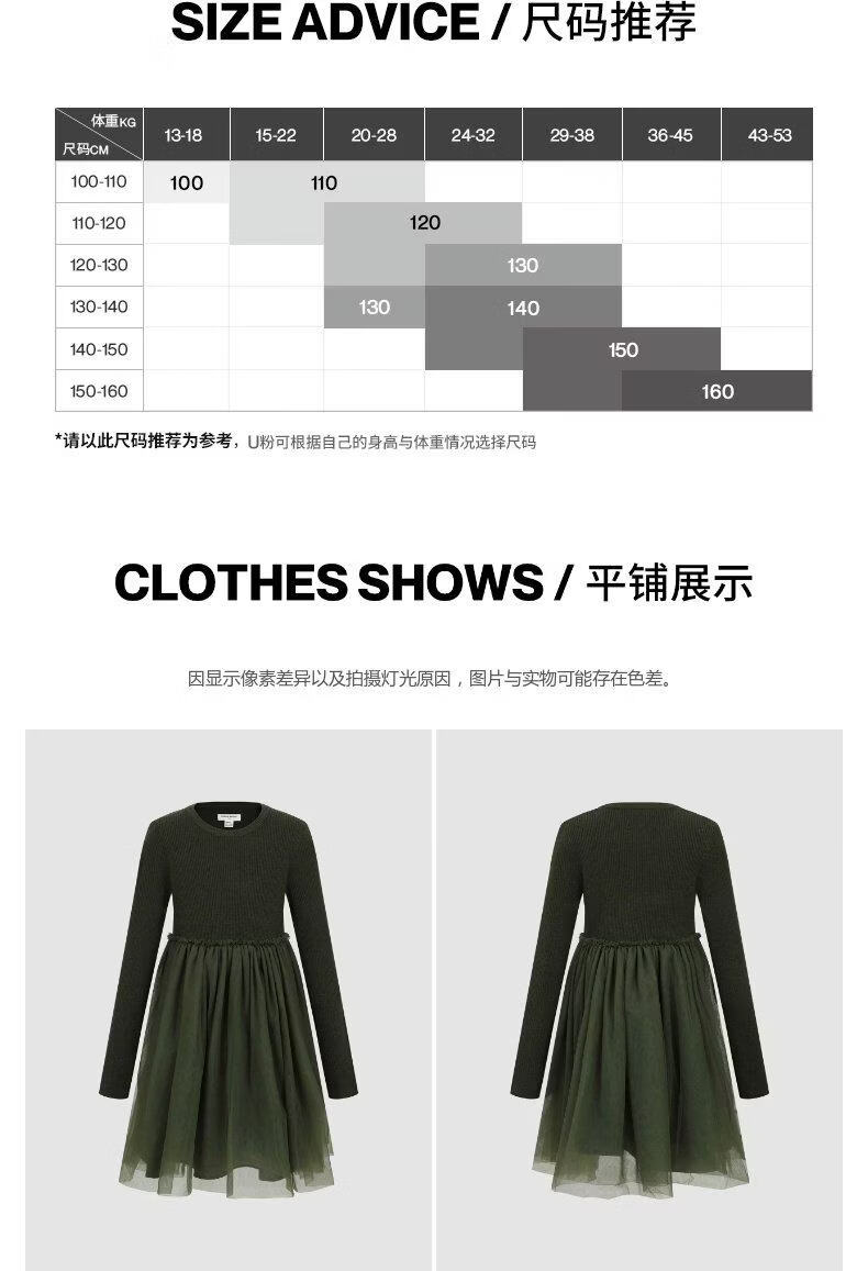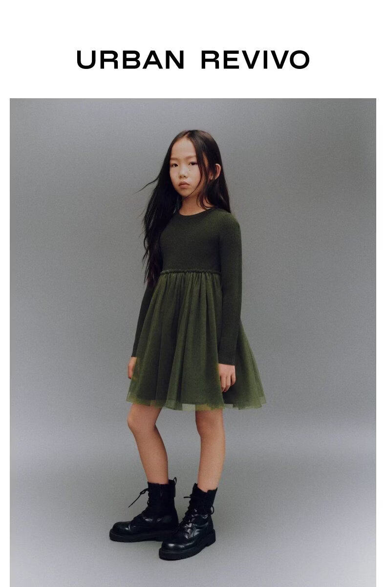 UR2026 Spring New Children's Clothing Girls Urban Fashionable Splicing Knitted Dress UGU960002 Grass Green 110