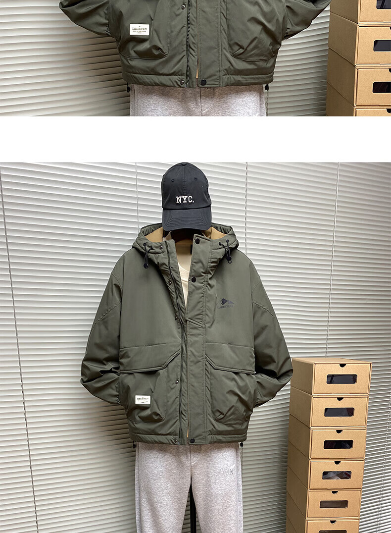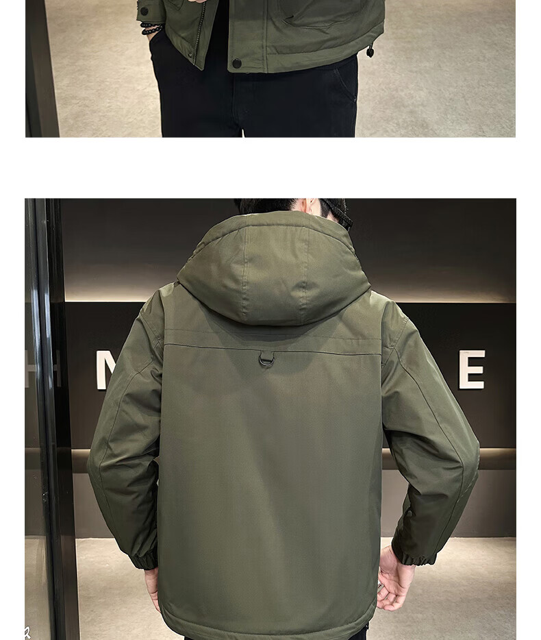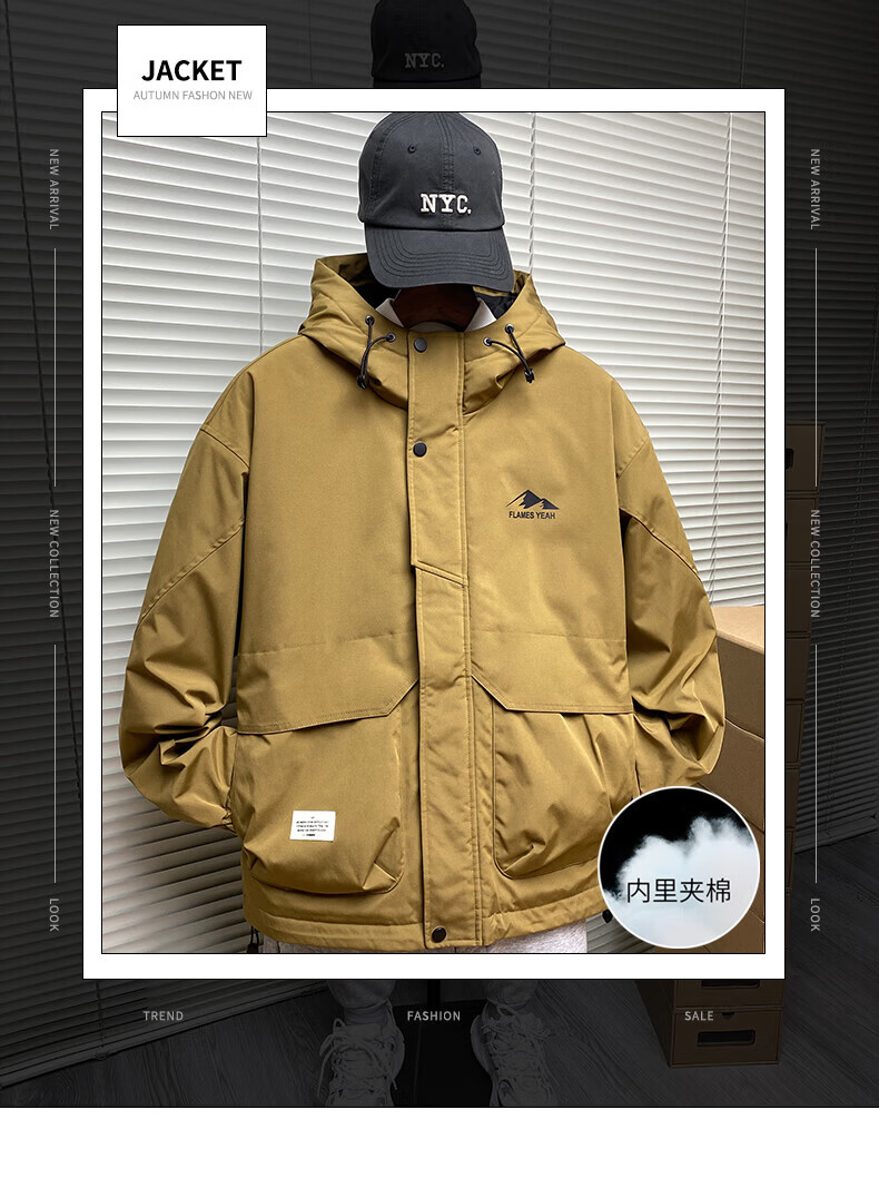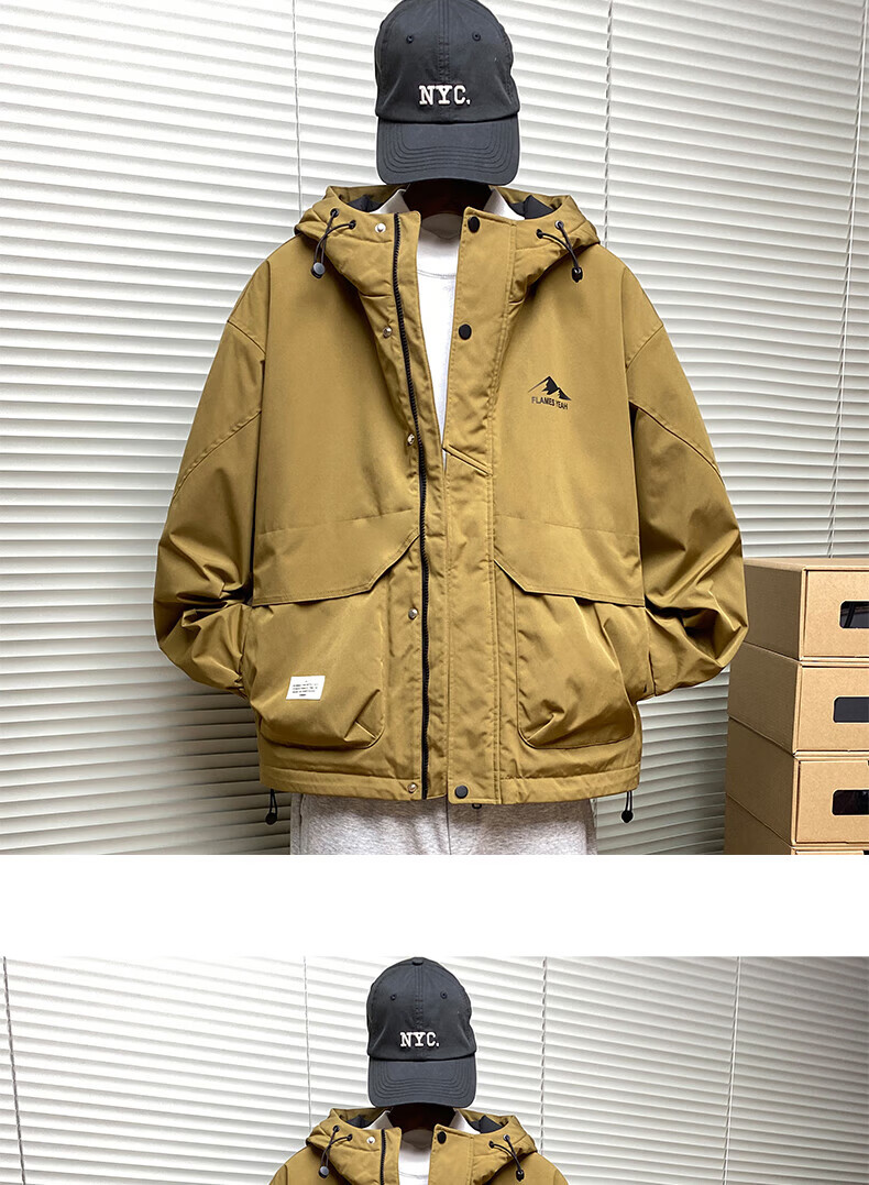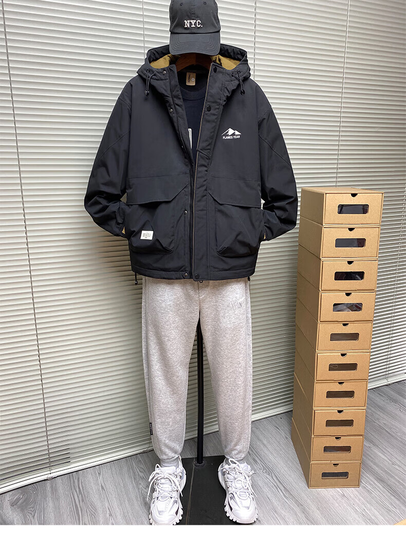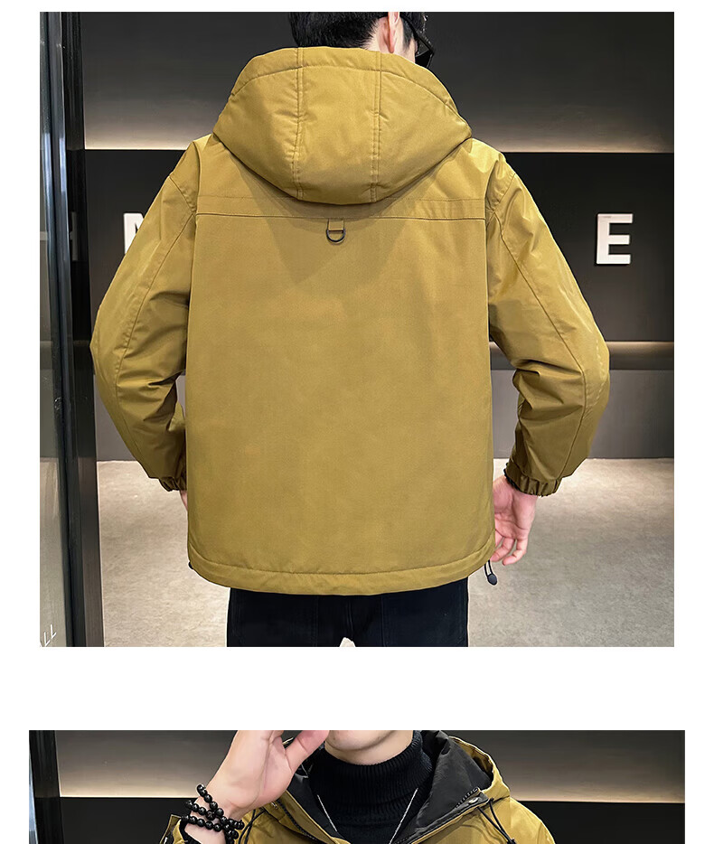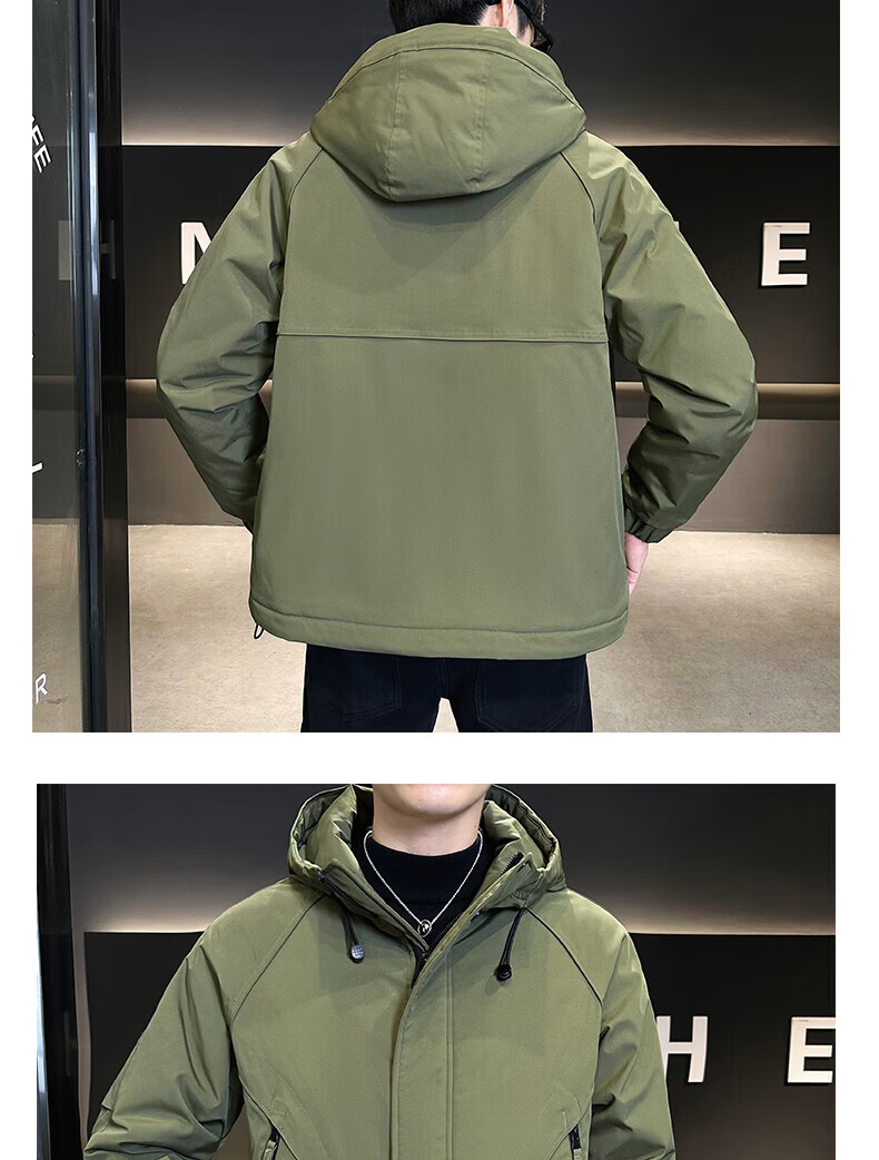 ROMON autumn and winter cotton thickened cotton clothes men's youth casual hooded jacket workwear style windproof jacket men's M1120 cotton khaki L (approximately 110-140Jin Jin equals 0.5 kg)