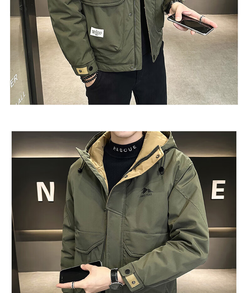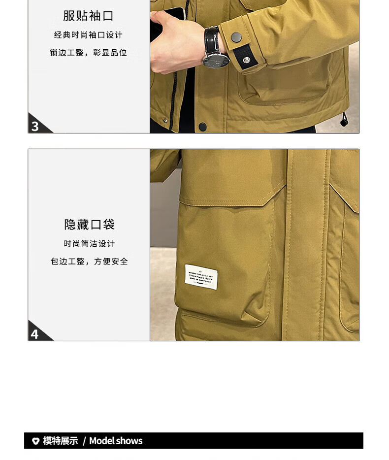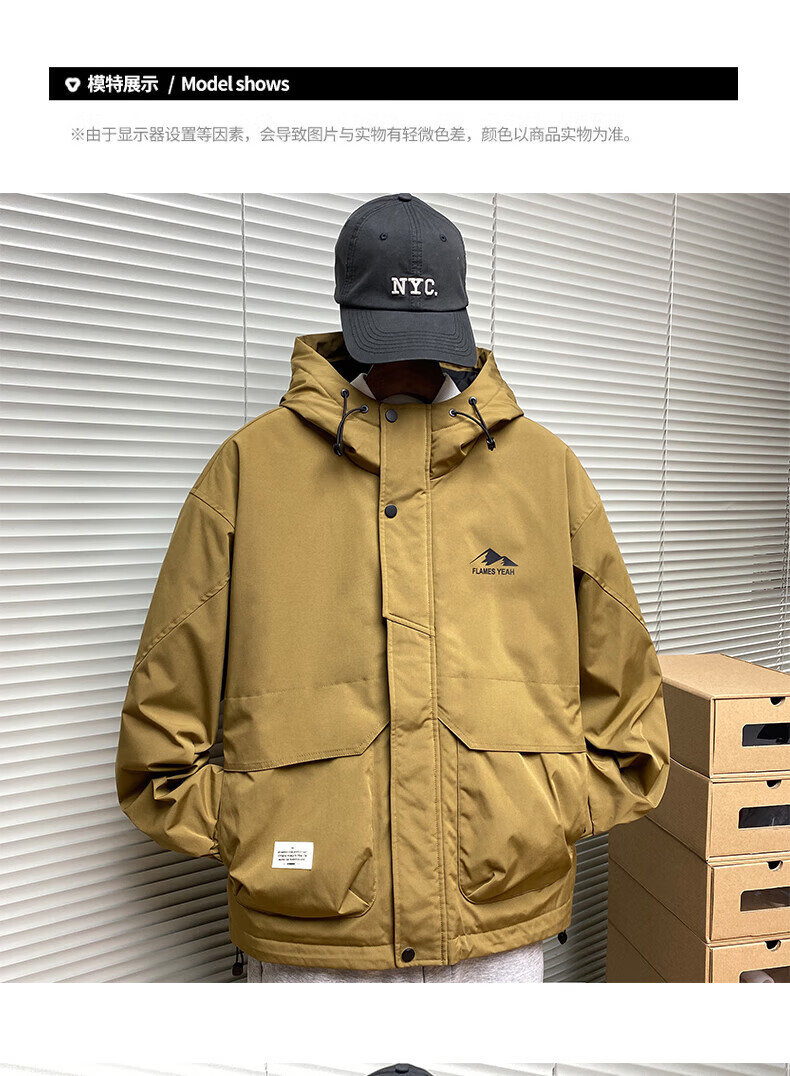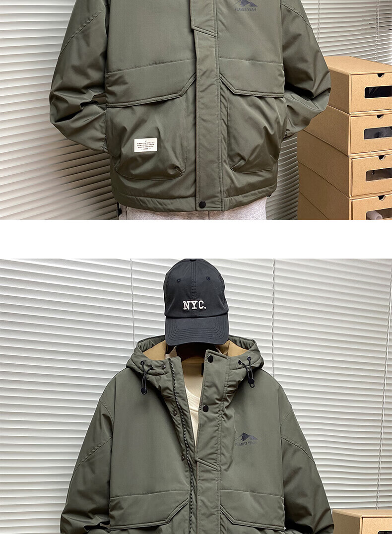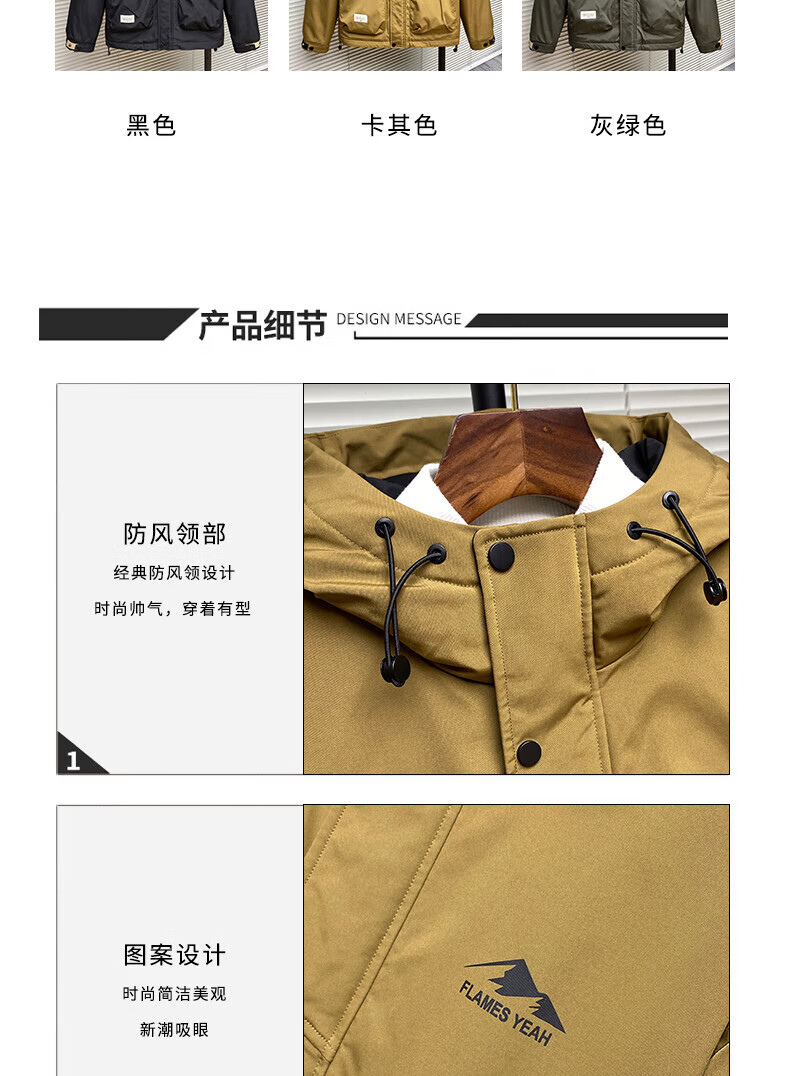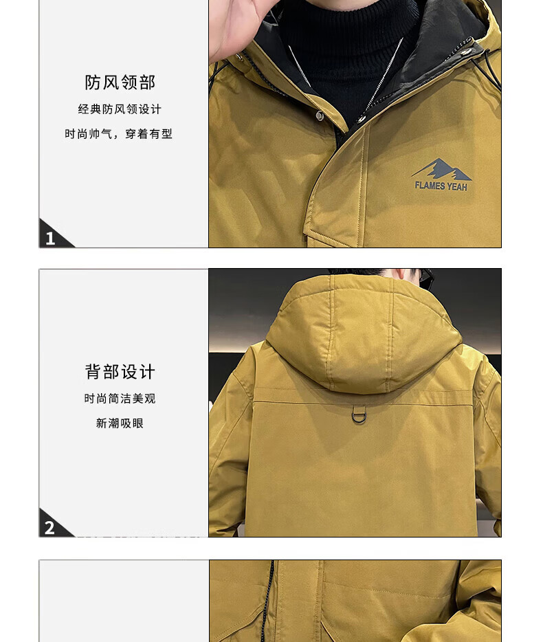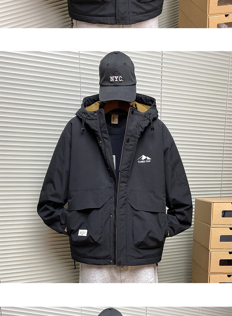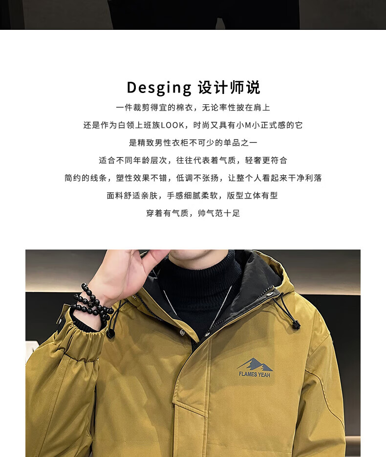 ROMON autumn and winter cotton thickened cotton clothes men's youth casual hooded jacket workwear style windproof jacket men's M1120 cotton khaki L (approximately 110-140Jin Jin equals 0.5 kg)