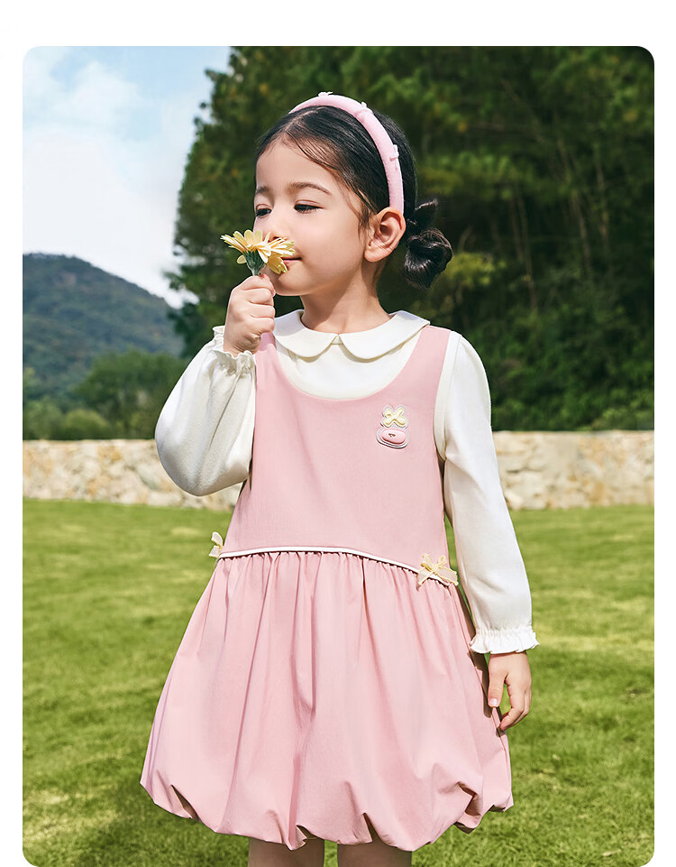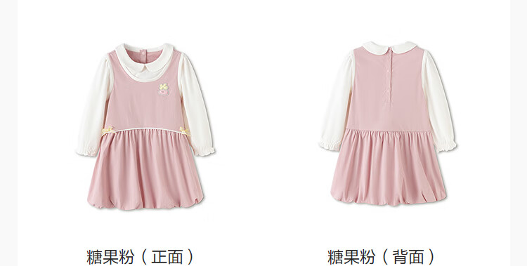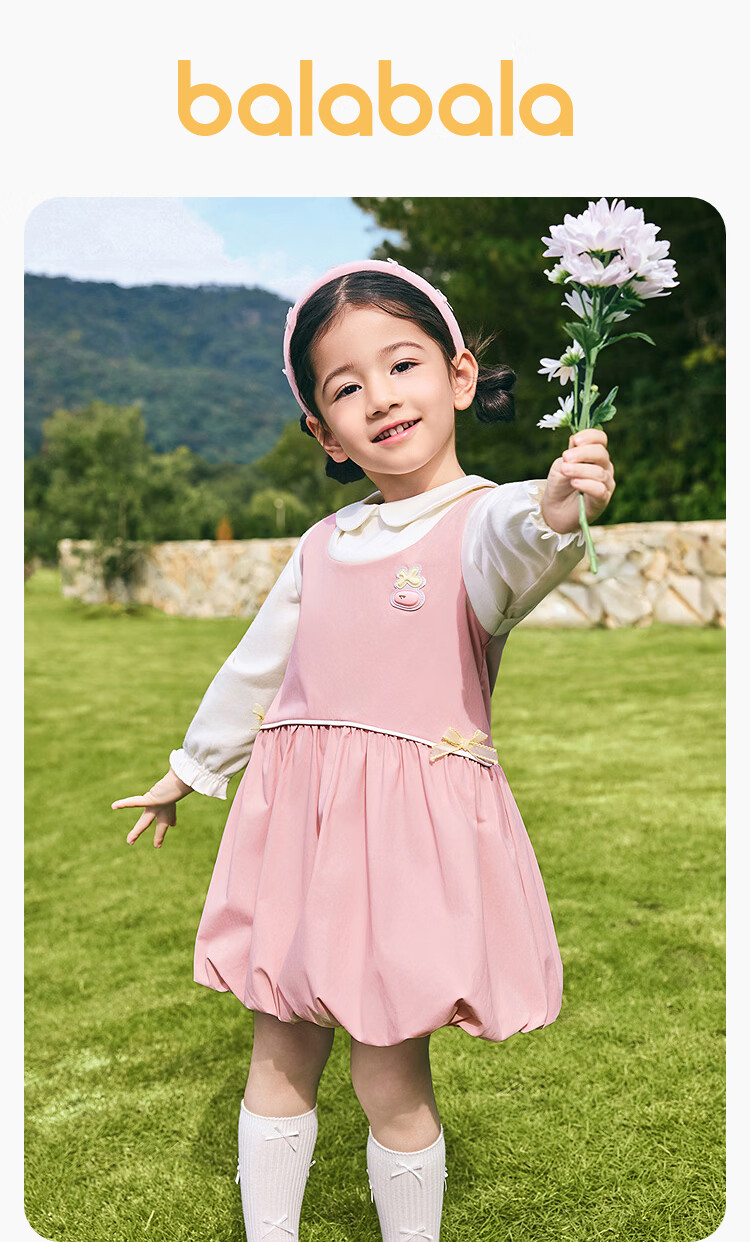 BALABALA balaOne BALABALA children's clothing children's dress girls 2026 new spring dress fake two-piece splicing skirt candy pink 60335 80