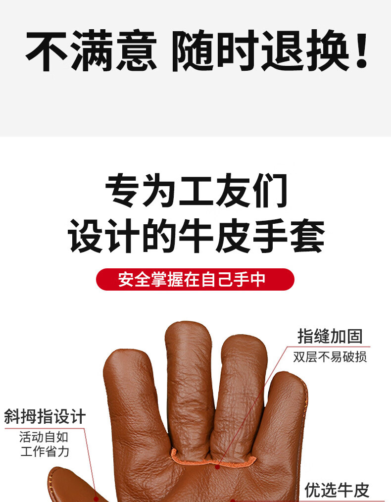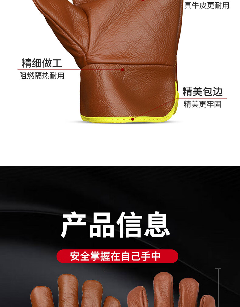 Woxuan welding gloves for welders special labor protection wear-resistant work cowhide soft anti-scalding heat insulation work protection men Yiquan double-layer long welding A-1001 12 pairs one size