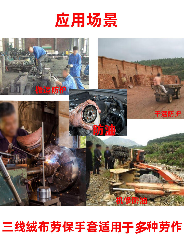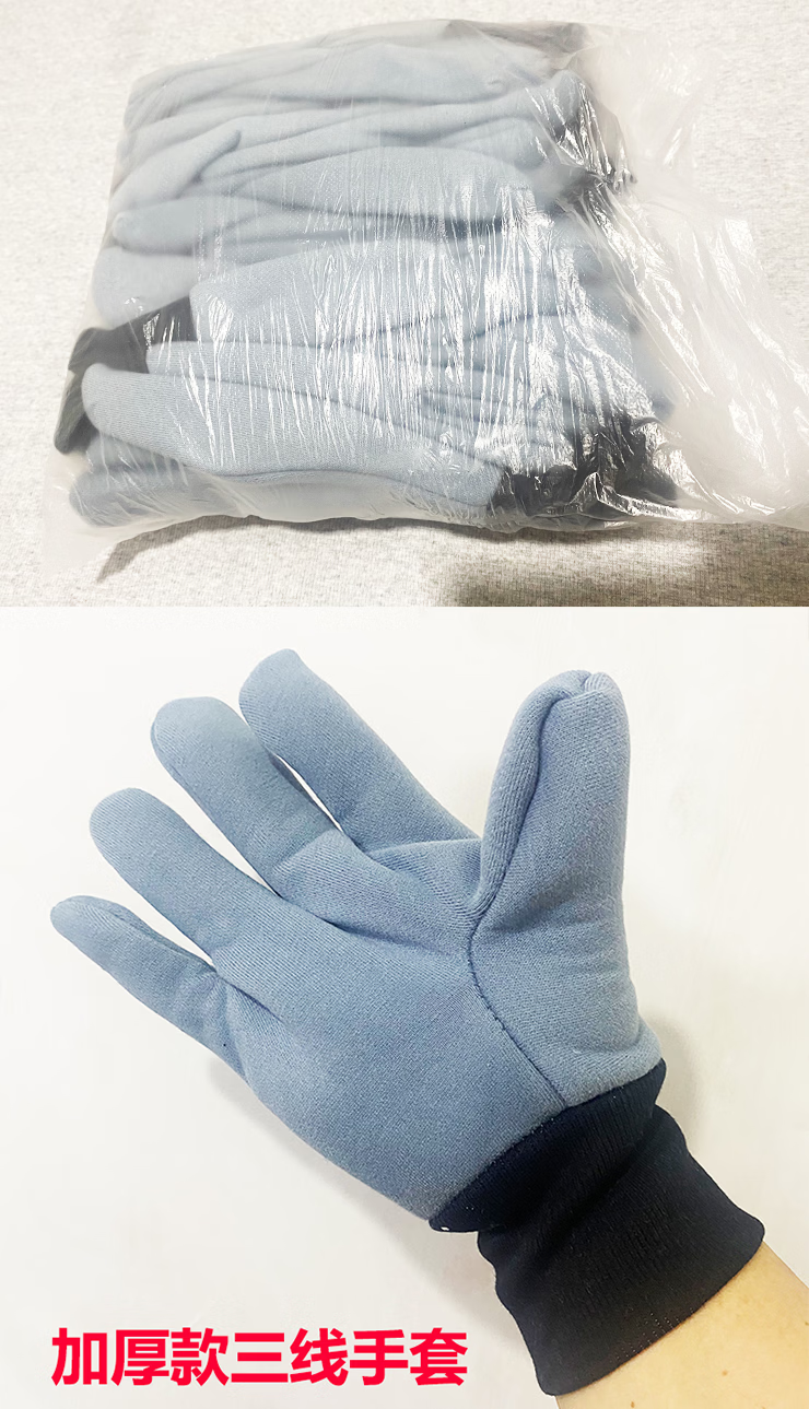 Woxuan thickened three-thread velvet labor protection gloves, one color spliced cotton valve mechanical casting, heat insulation and wear-resistant, 100 pairs, one color thickened three-thread gloves