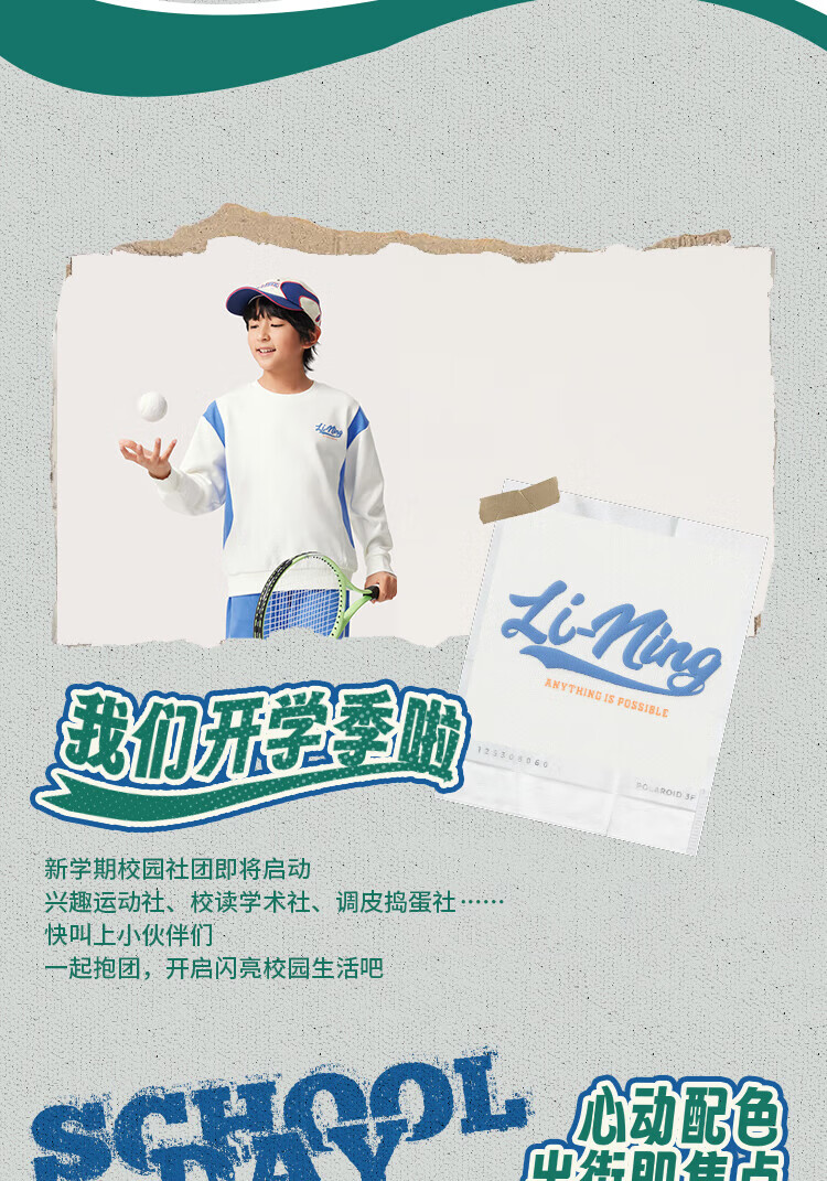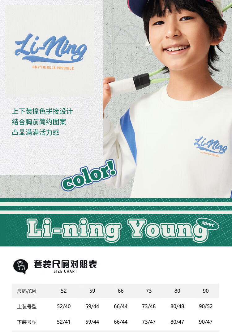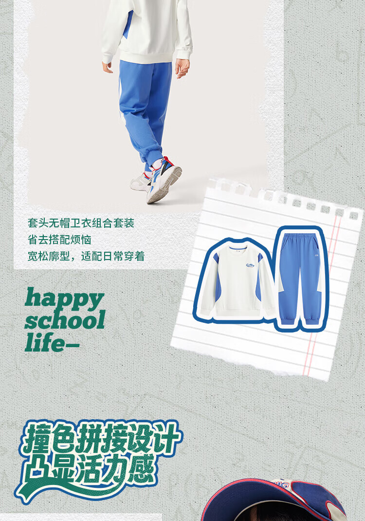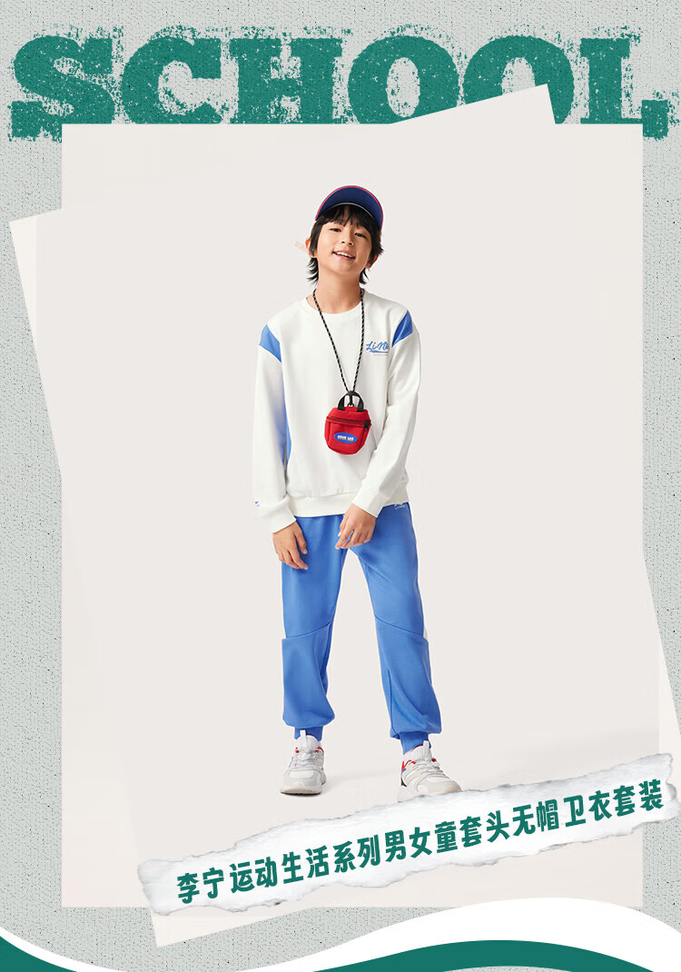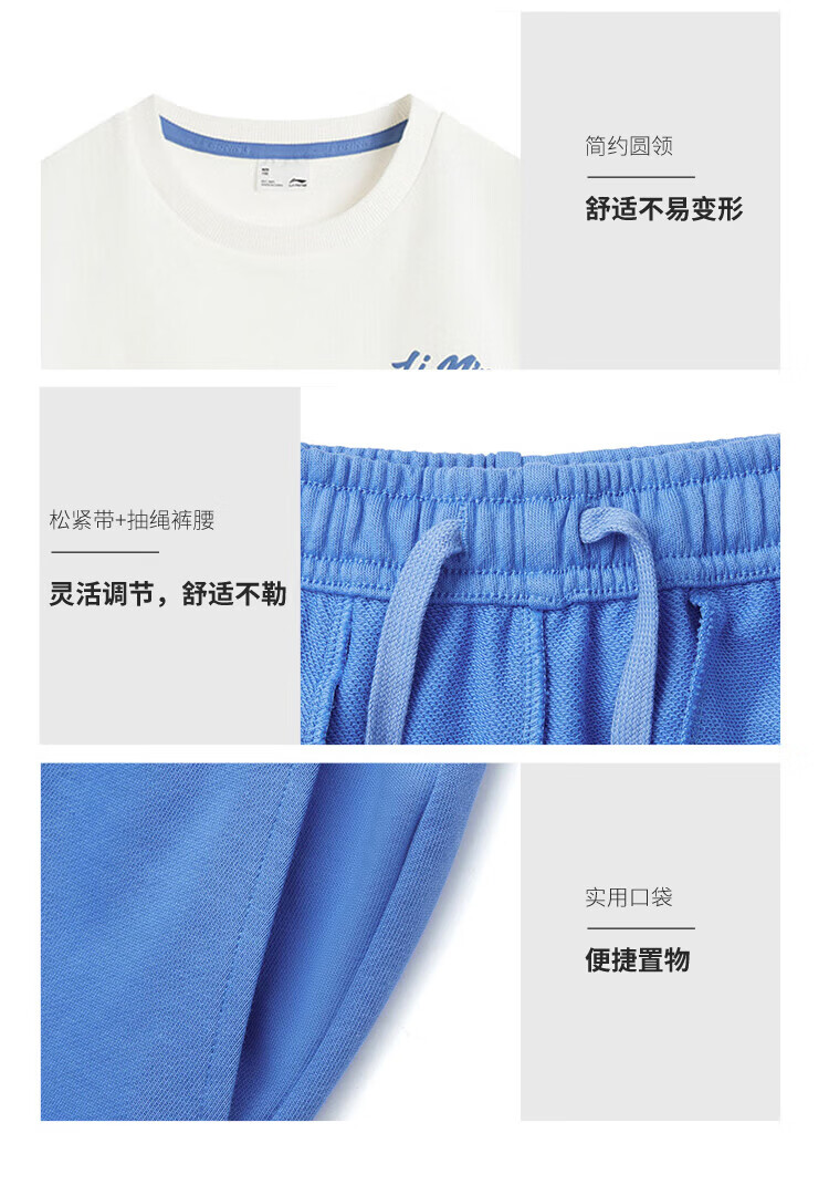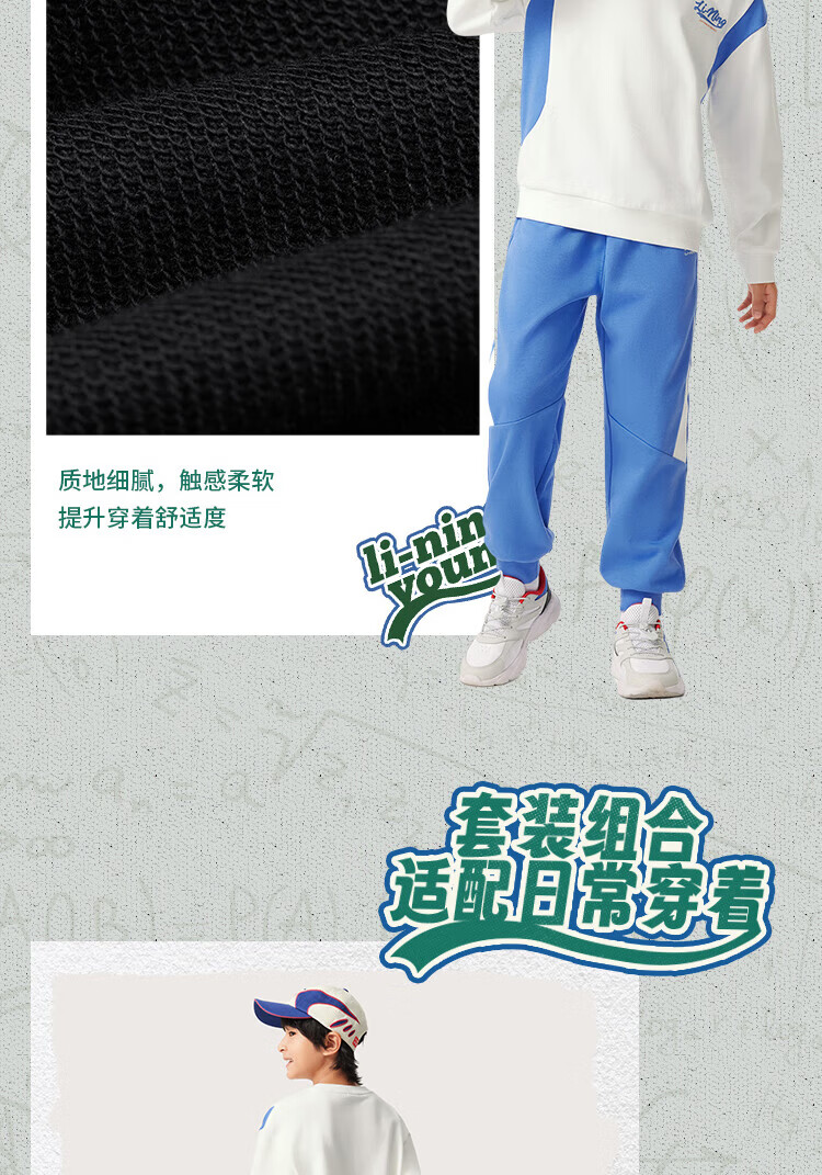 Li Ning children's clothing children's suits for men and women, small and big children's sports life series loose leggings sweatshirt suit YWEV015 milky white/rowing blue-2 170